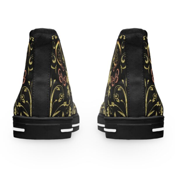 The Boho Hightop Sneakers VII merge artistic expression with grounded confidence. Crafted for women who move with purpose and style, these sneakers pair a rich black canvas upper with the romantic Butterfly Heart print—a symbol of personal growth and inner strength. The high-contrast design balances softness with boldness, making this pair ideal for those who love to walk the line between edge and elegance.
