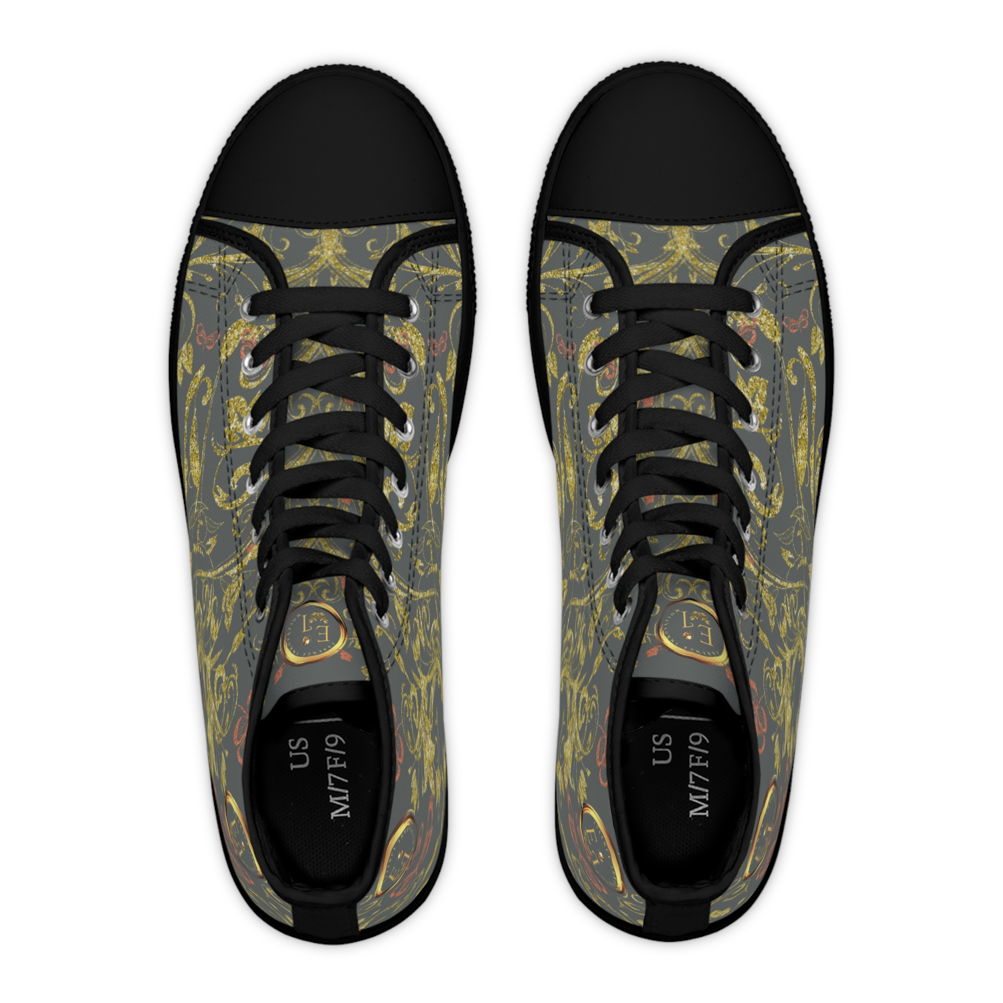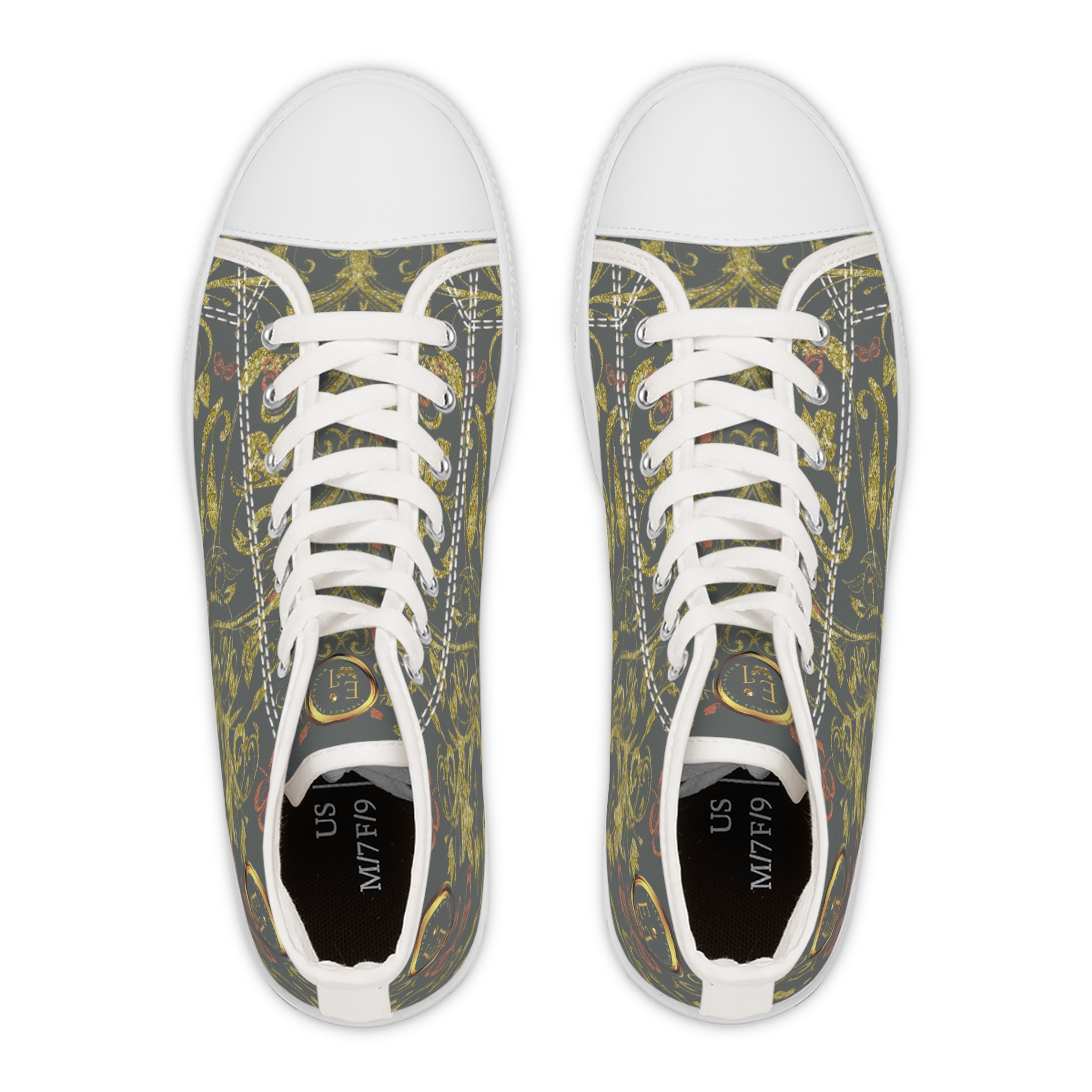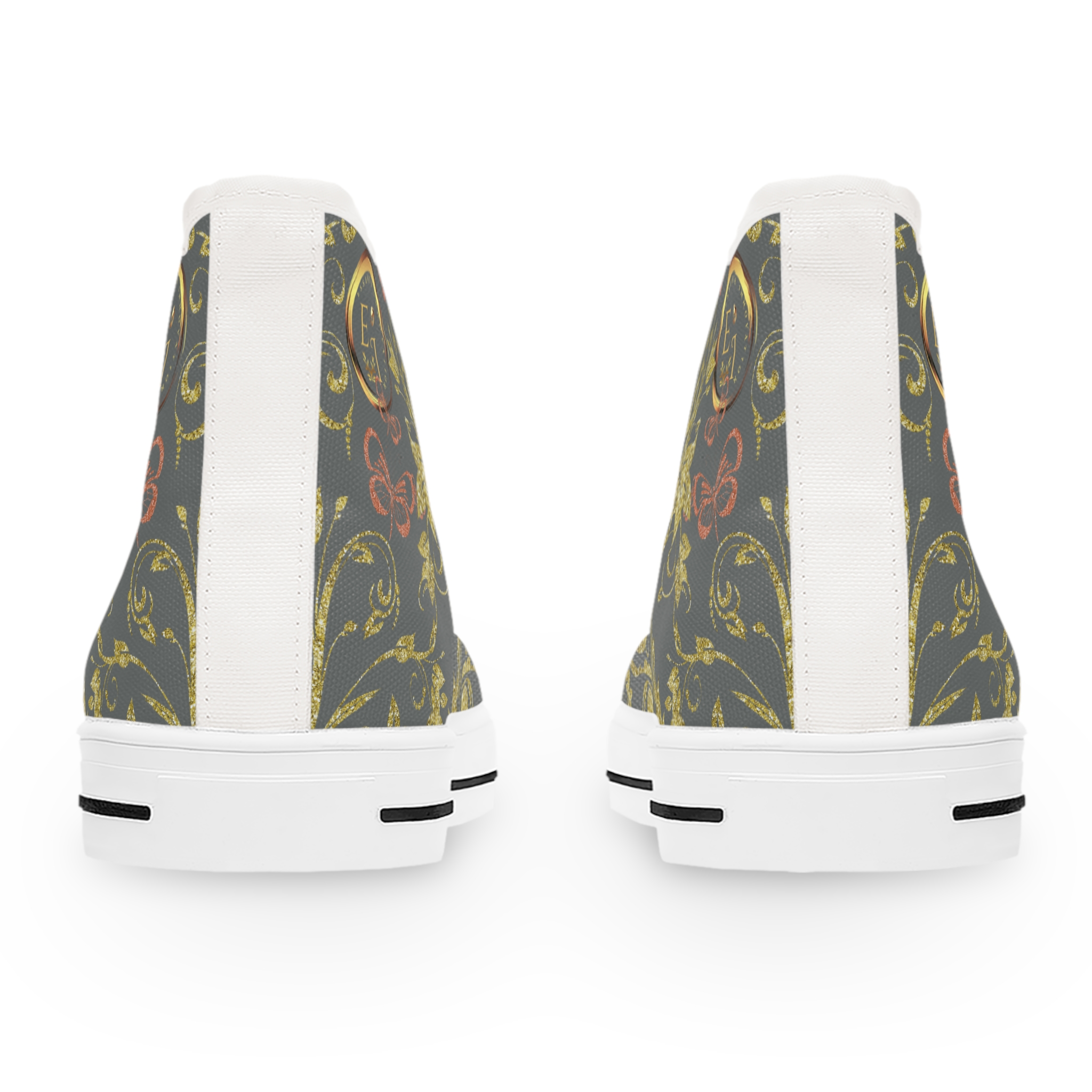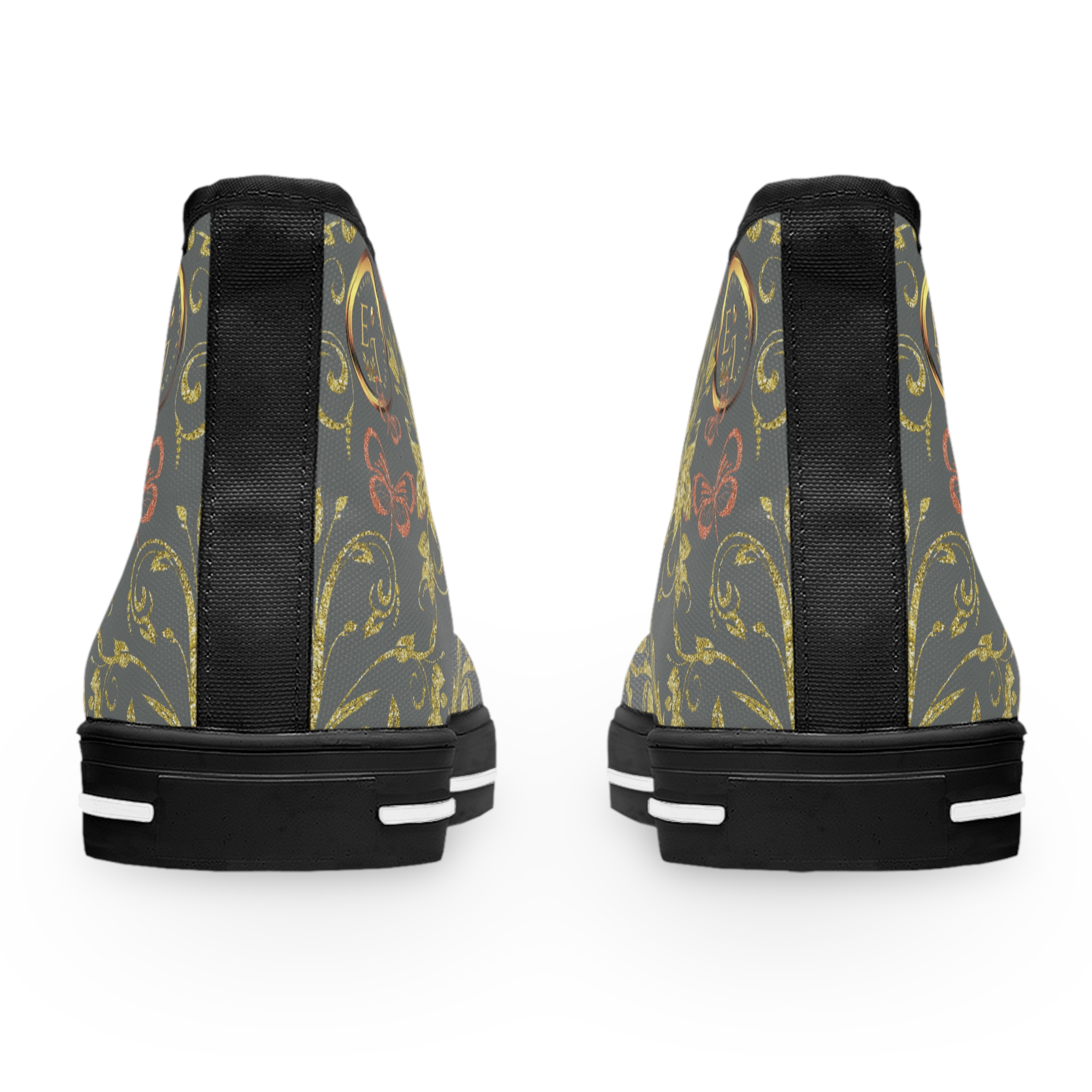 Boho Hightop Sneakers VIII pair deep grey canvas with the Butterfly Heart print, cushioned insoles, and versatile soles for soft-spoken, expressive daily style.