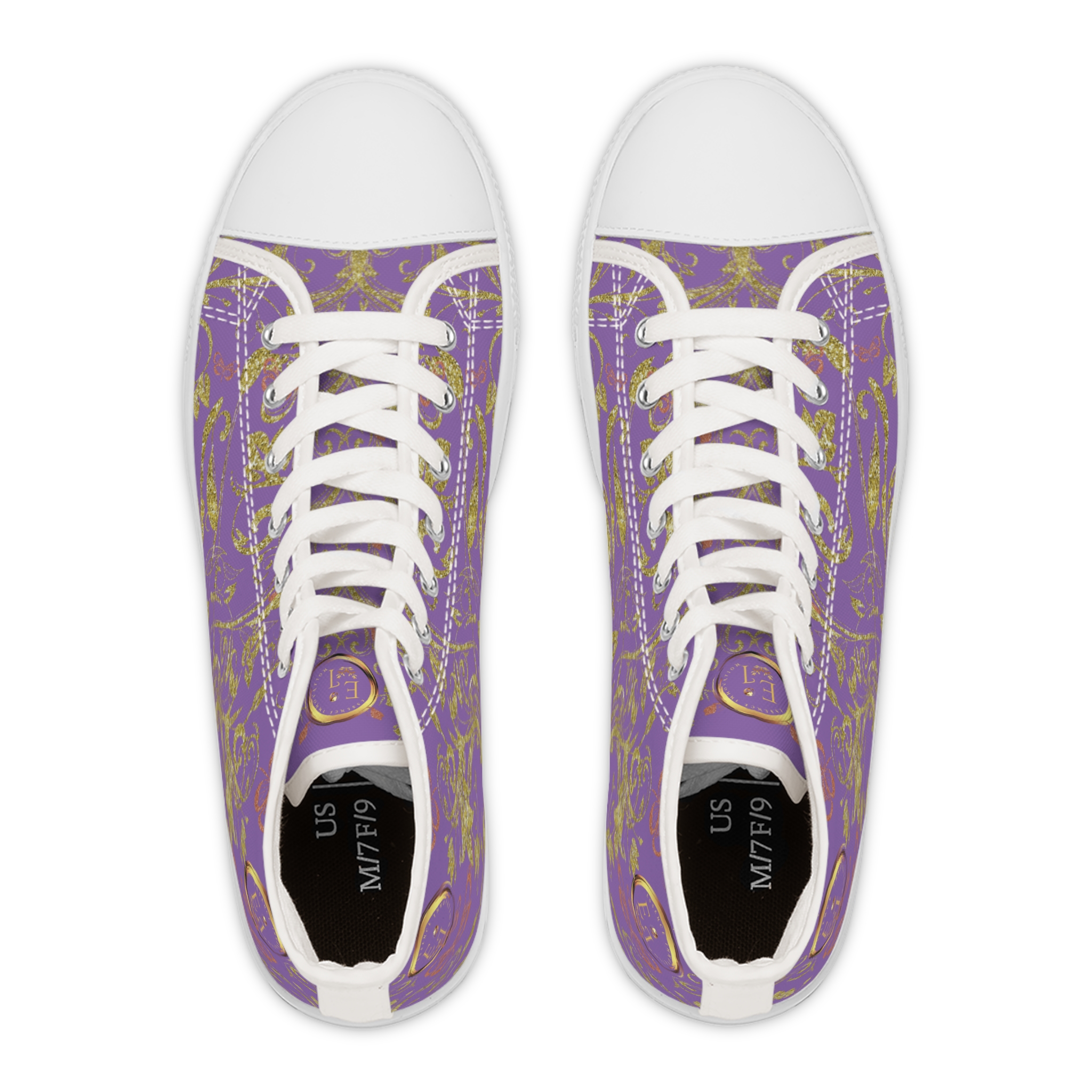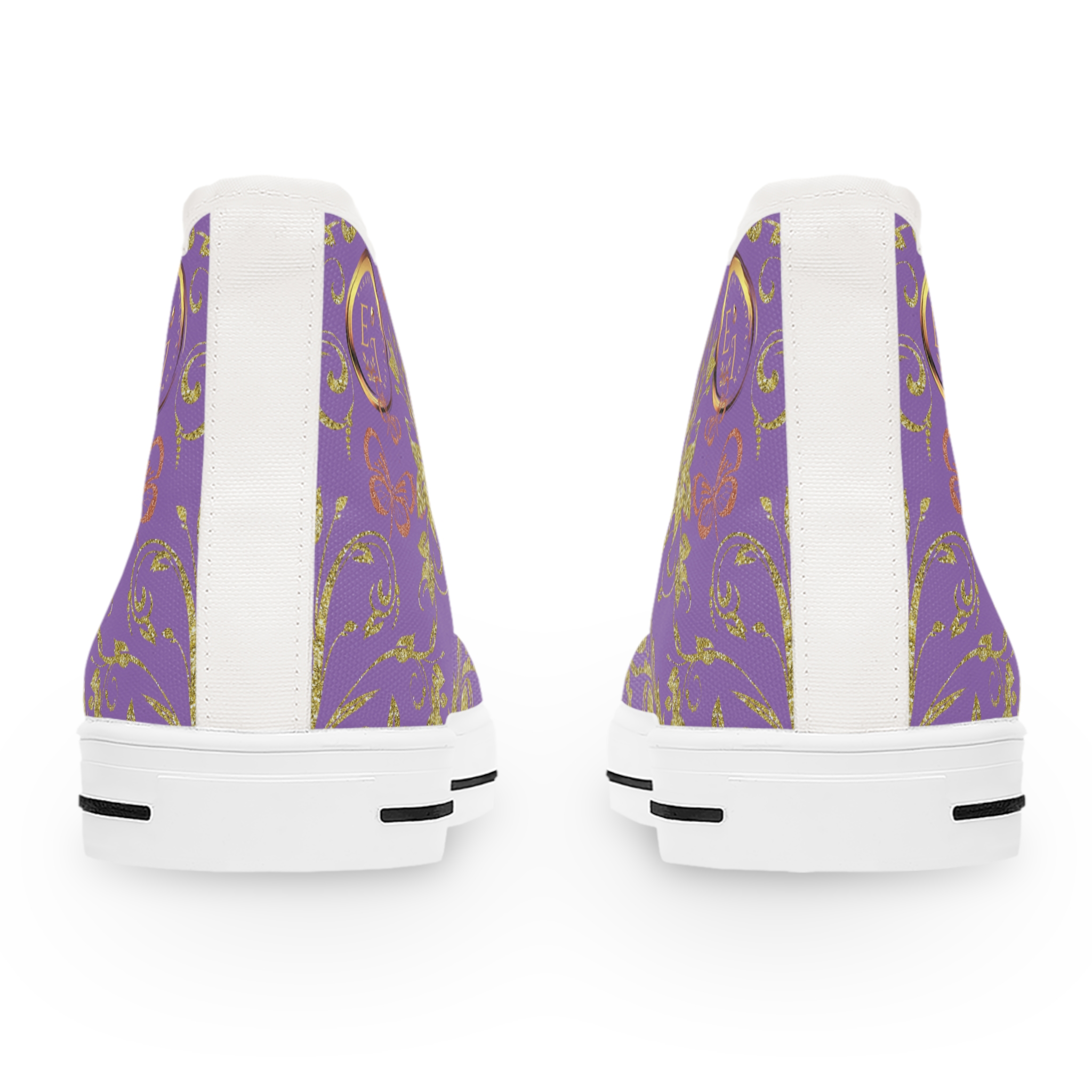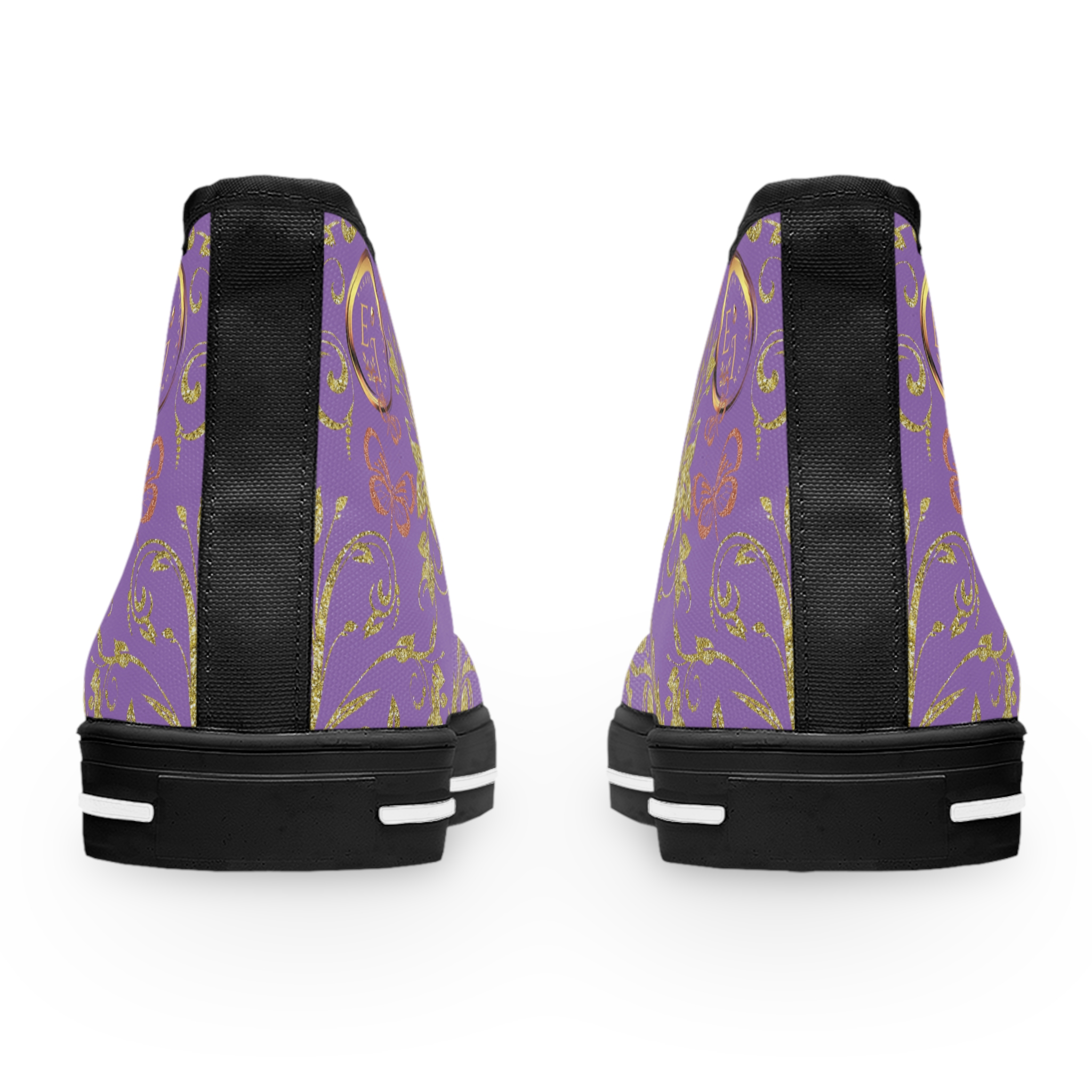 Boho Hightop Sneakers XIX feature soft purple canvas, the Butterfly Heart print, and memory foam comfort—elegant high-tops for effortless feminine expression.
