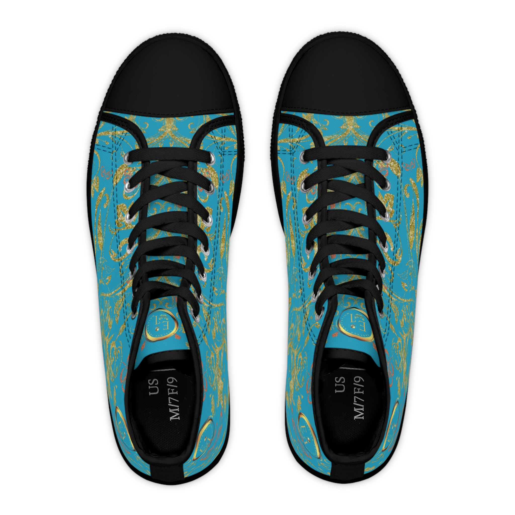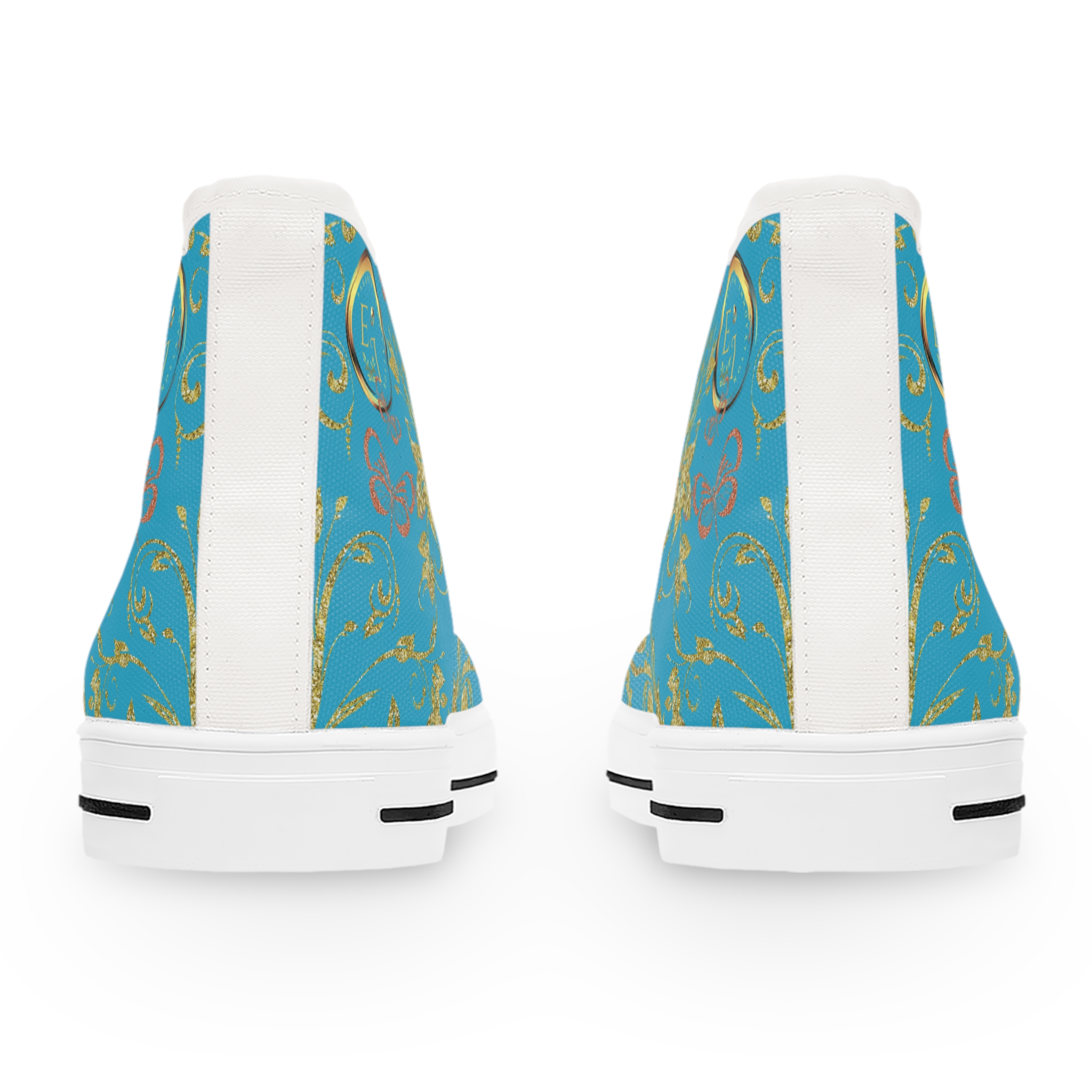 Boho Hightop Sneakers XV feature vibrant turquoise canvas, Butterfly Heart detailing, and cushioned insoles—bohemian high-tops made to energize and express.