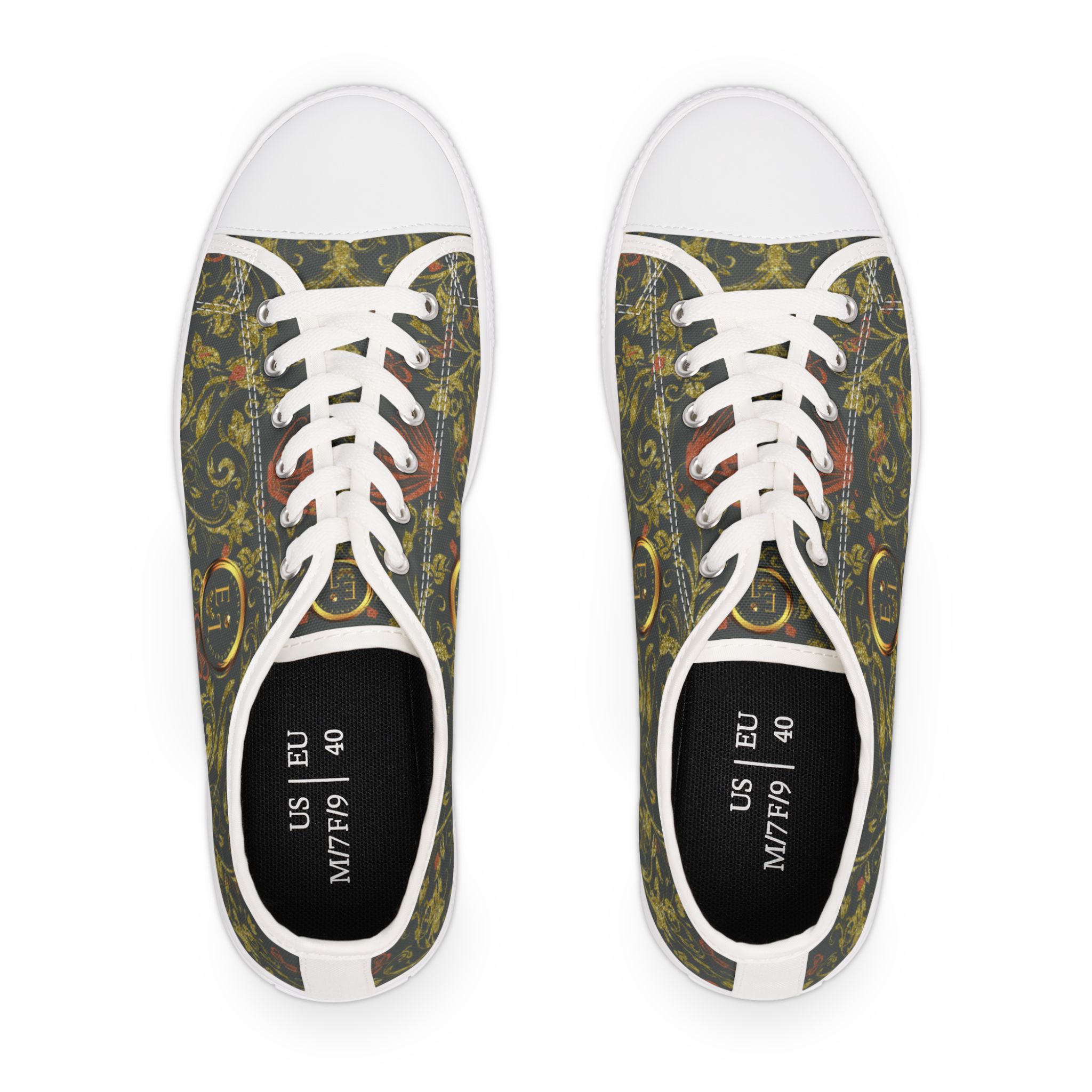 The Boho Lowtop Sneakers VIII | Butterfly Heart | Dark Grey are created for women who move through life with calm purpose and grounded style. Wrapped in a smoky, deep grey canvas, this pair features EssenceInnoCreate’s signature Butterfly Heart motif—woven in soft gold and green tones that speak to growth, transformation, and beauty found in stillness.