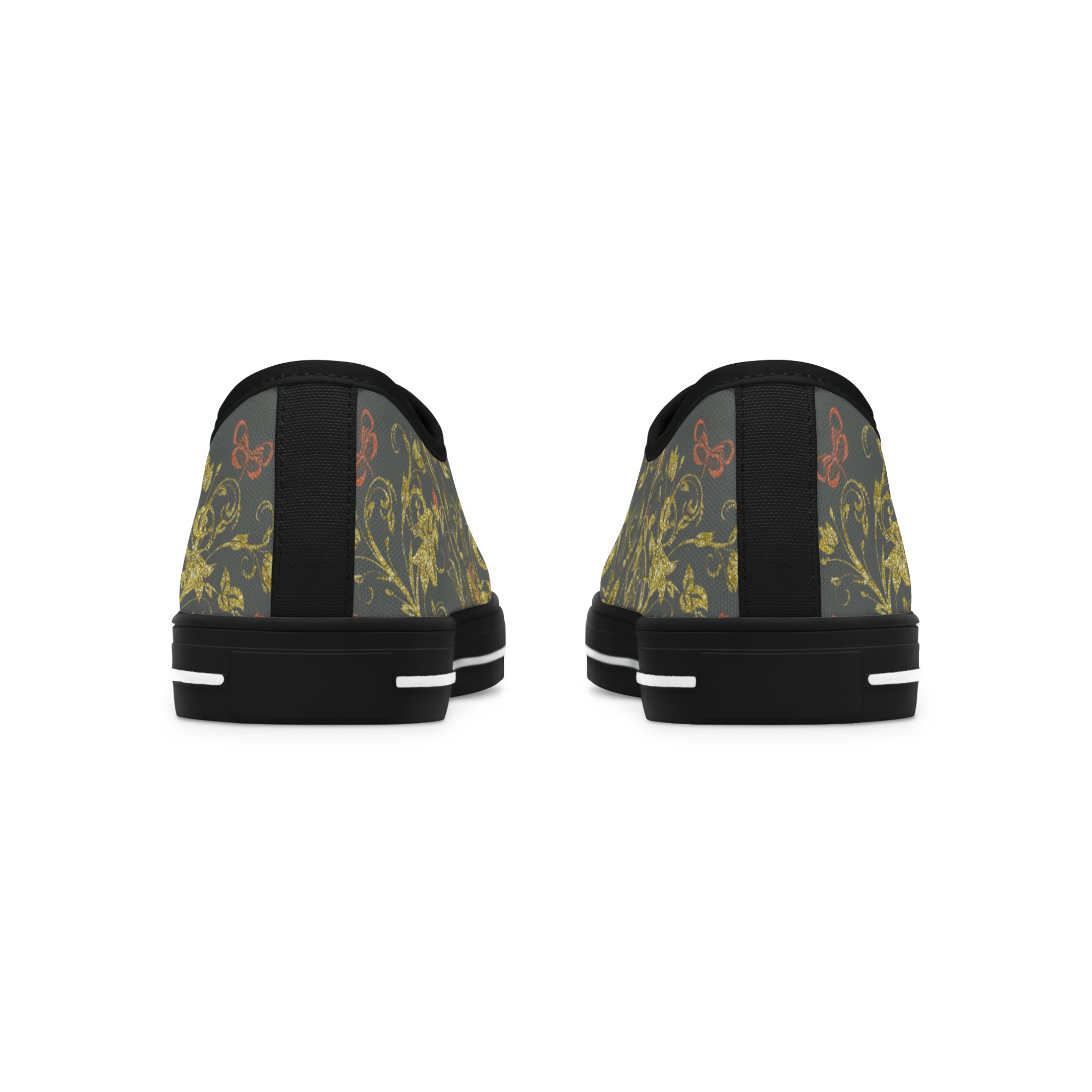 Boho Lowtop Sneakers VIII pair deep grey canvas and a golden Butterfly Heart design with cushioned soles and flexible styling—quietly expressive sneakers made for women in motion.