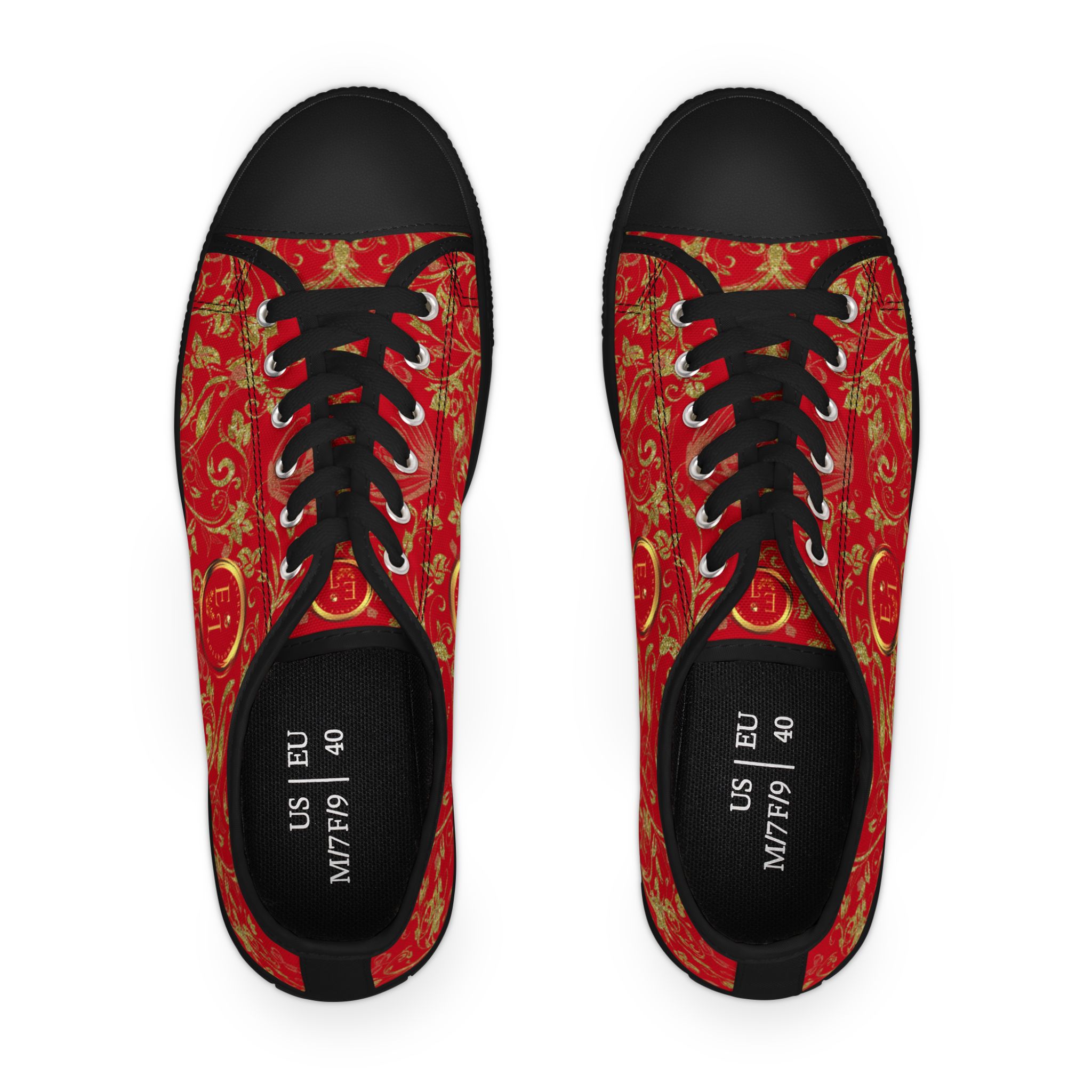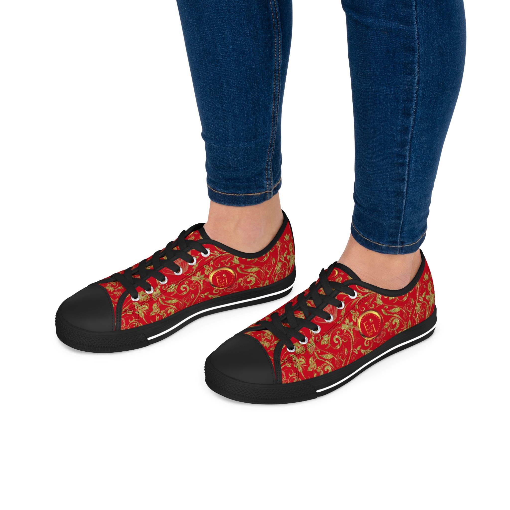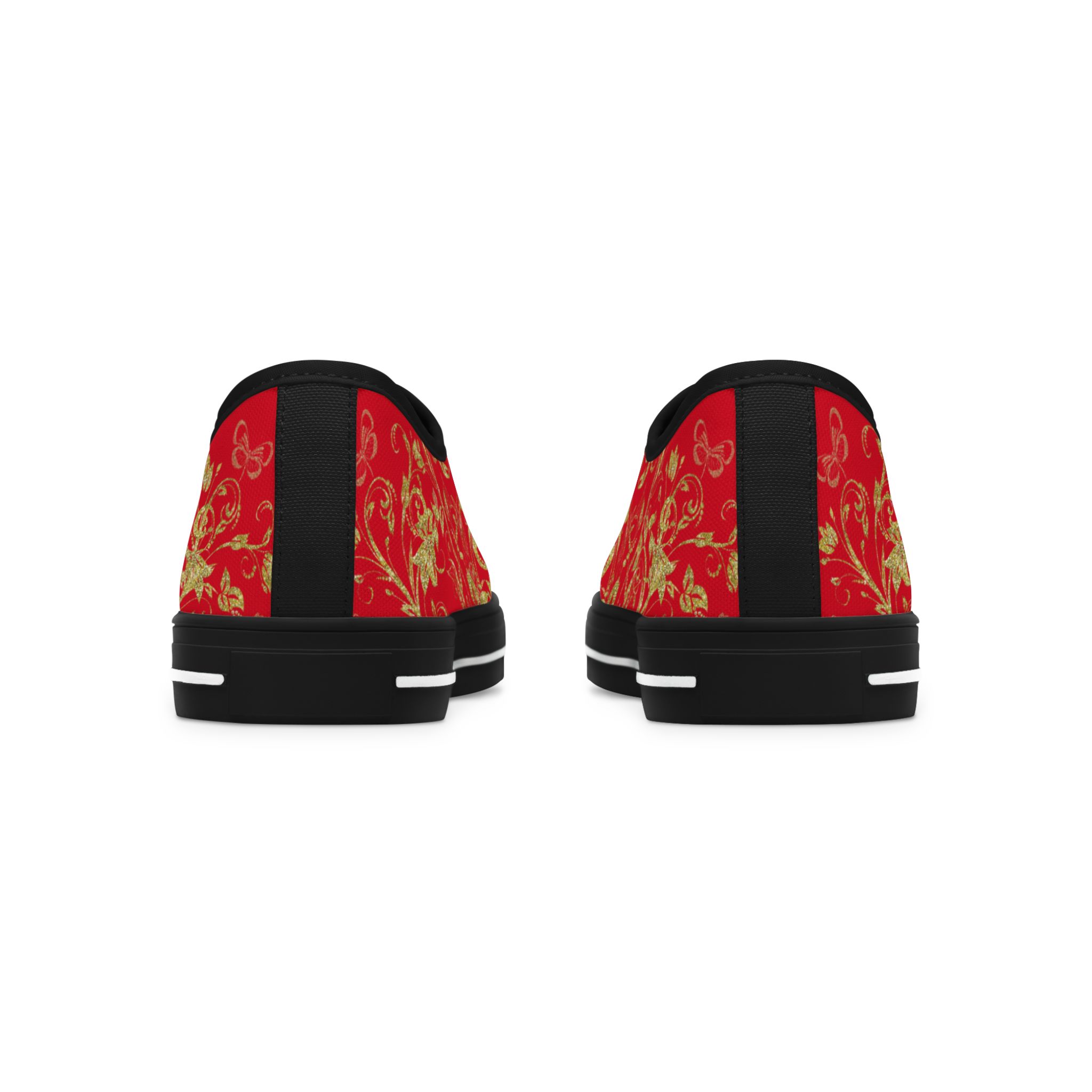 Boho Lowtop Sneakers X blend deep red canvas and golden Butterfly Heart detailing with cushioned insoles and styling options—feminine sneakers made for bold, elegant expression.