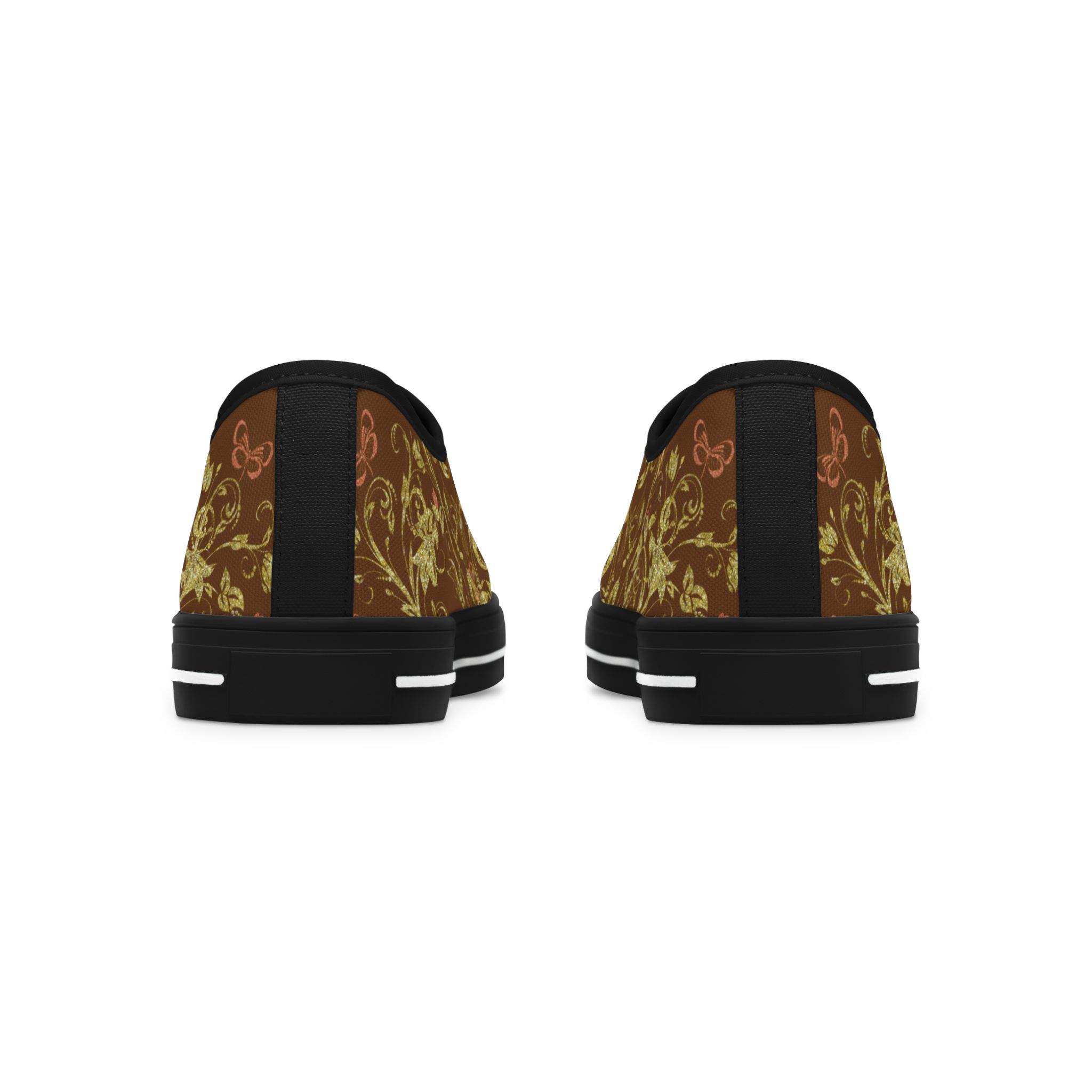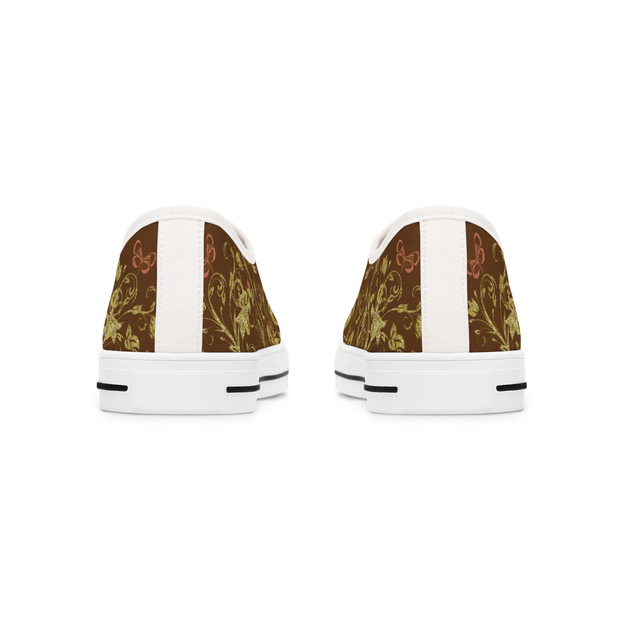 Boho Lowtop Sneakers XX feature warm brown canvas, Butterfly Heart artwork, cushioned insoles, and sole options—earthy sneakers designed for comfort and natural expression.