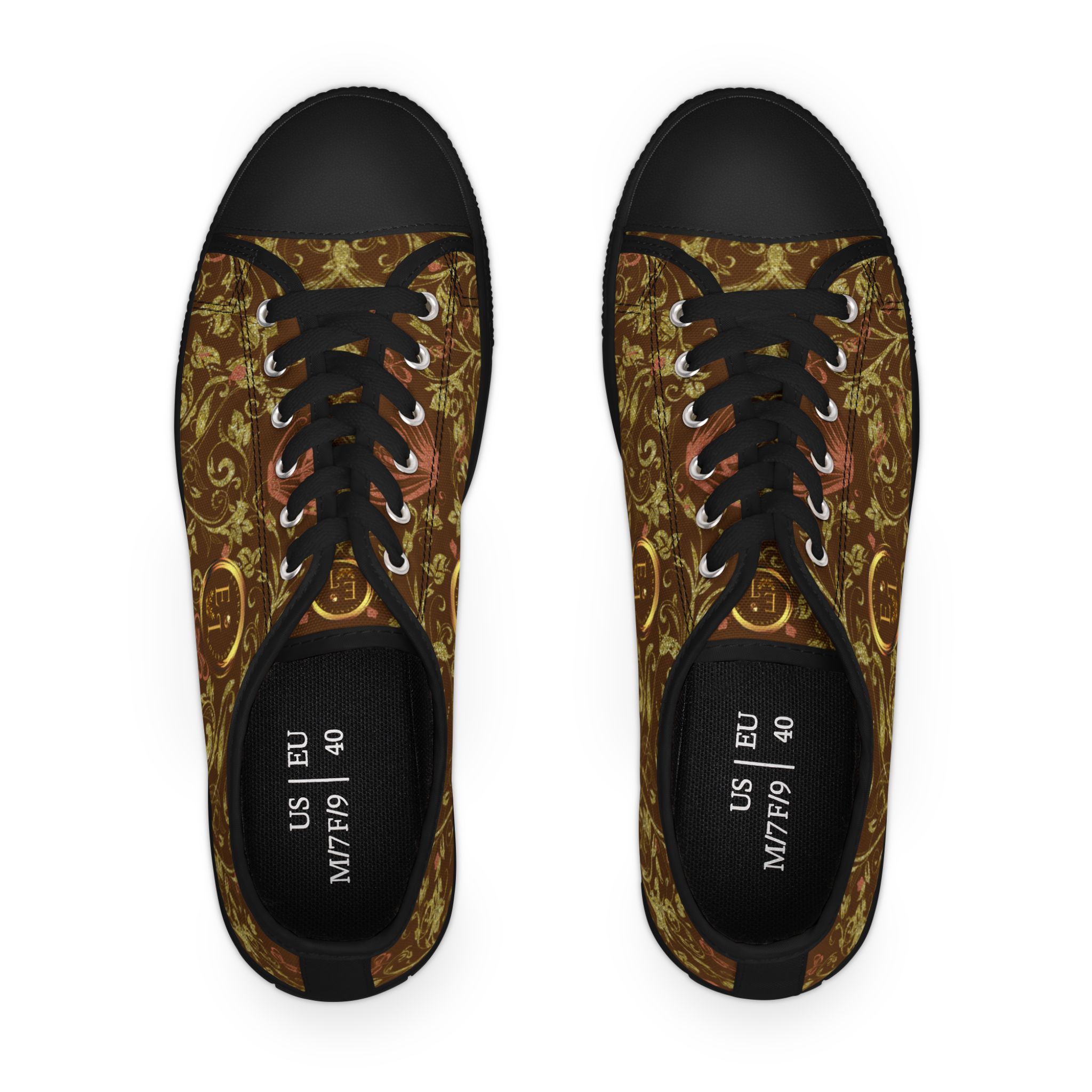 The Boho Lowtop Sneakers XX | Butterfly Heart | Brown embody calm strength, quiet confidence, and earthy connection. Wrapped in a rich brown canvas, this final colorway in the Butterfly Heart series draws on the warmth and dependability of natural tones. The signature Butterfly Heart motif — in flowing gold and green vine-like accents — overlays the upper like nature’s own script, bringing a sense of story and stillness to your step.