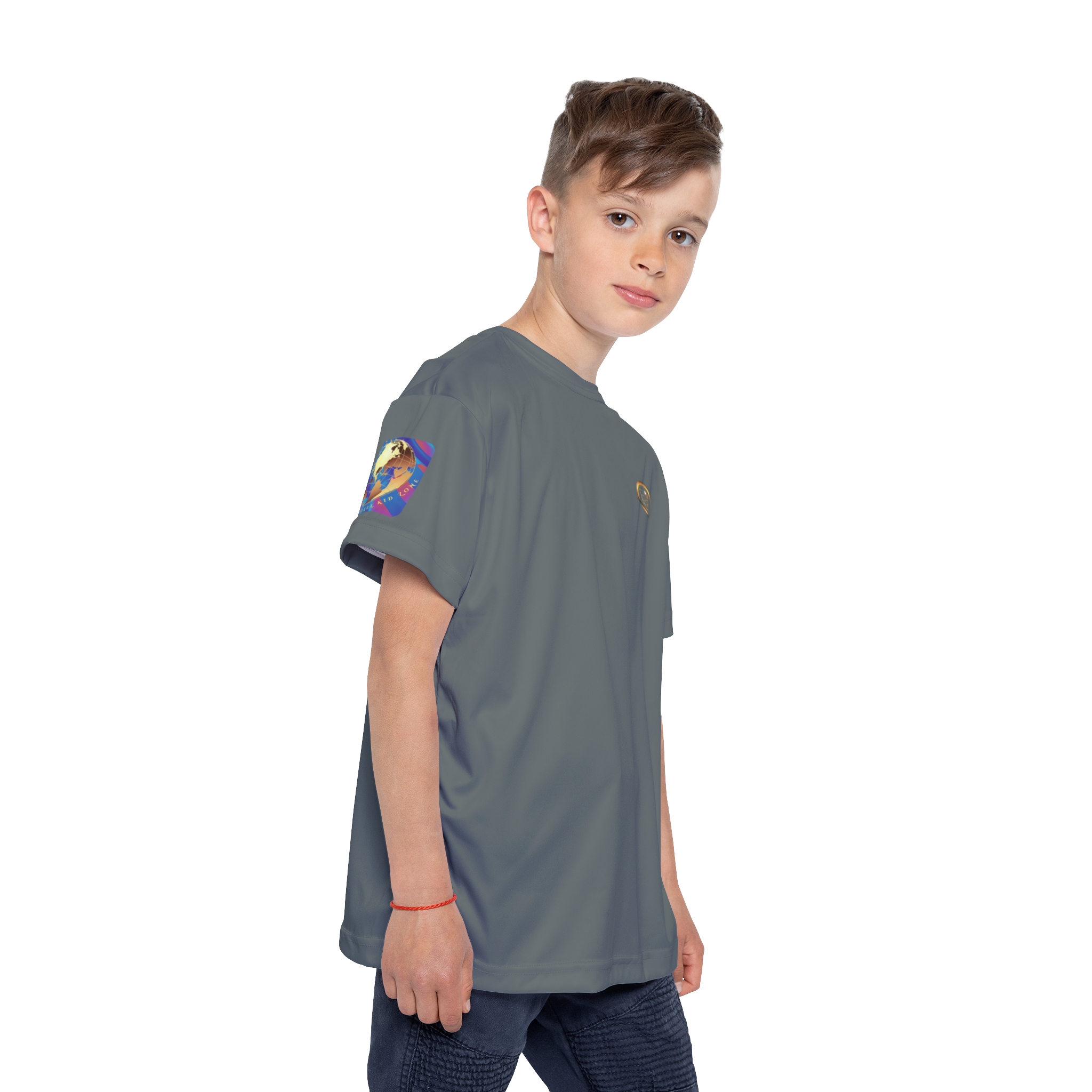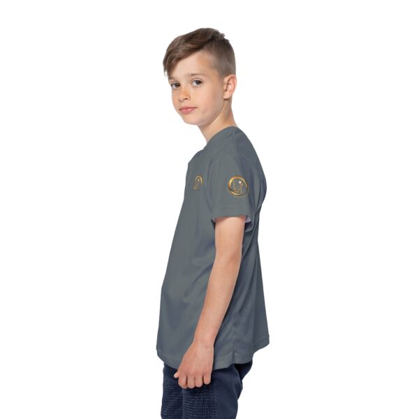 Crafted from 100% moisture-wicking polyester, this ultra-light jersey (4.13 oz/yd²) keeps him cool and dry—even on high-energy days. The dark grey colorway offers a modern, grounded tone that pairs well with team gear or solo looks, making it a go-to layer for school, sports, and beyond.