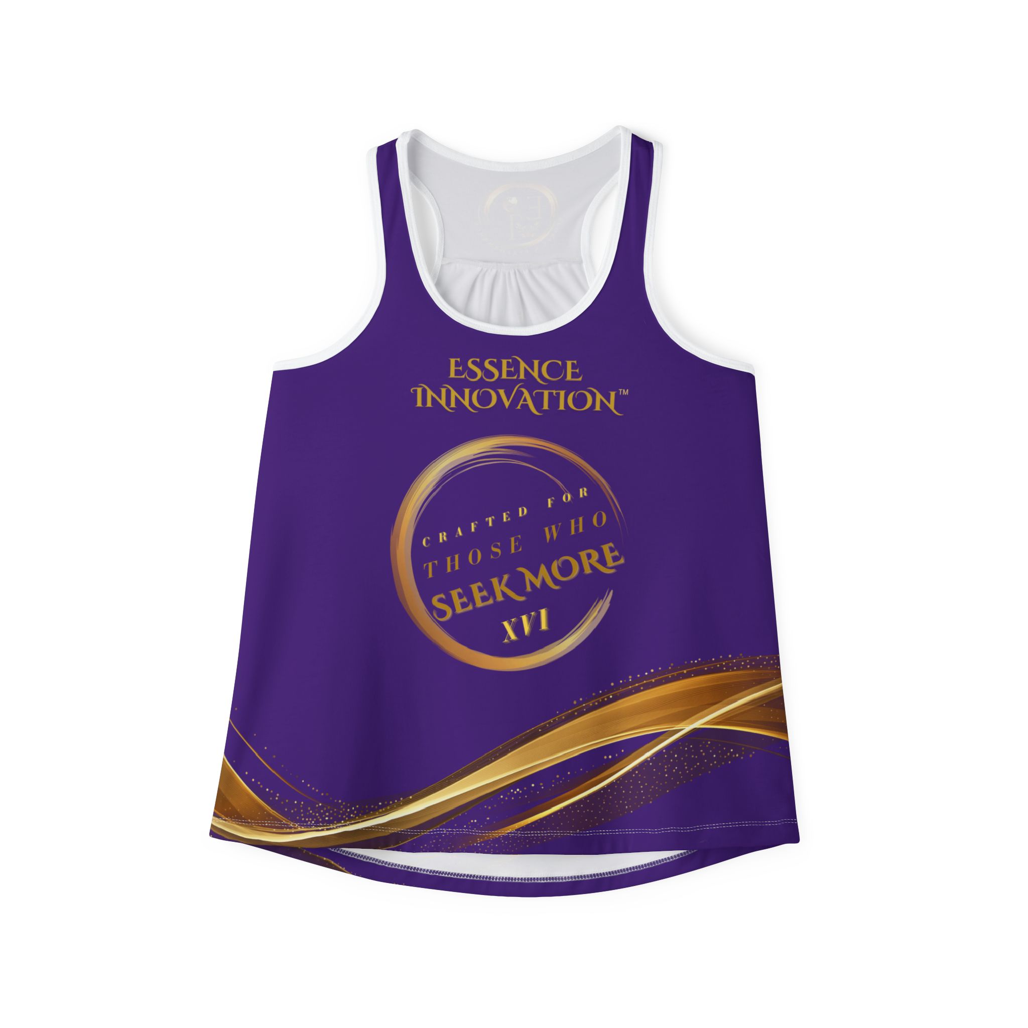 Vibrant creativity meets timeless strength in the Essence Luxe Flow XVI Racerback Tank Top. Designed for women who embrace movement with confidence, this tank delivers performance and elegance in a bold purple colorway.