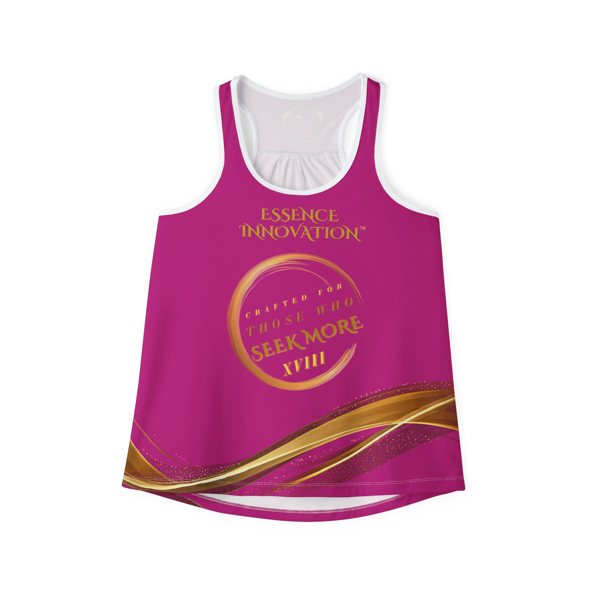 Essence Luxe Flow XVIII racerback tank top in bold pink — vibrant, confident, and empowering. Roman Numeral XVIII design reflects vitality and feminine strength.