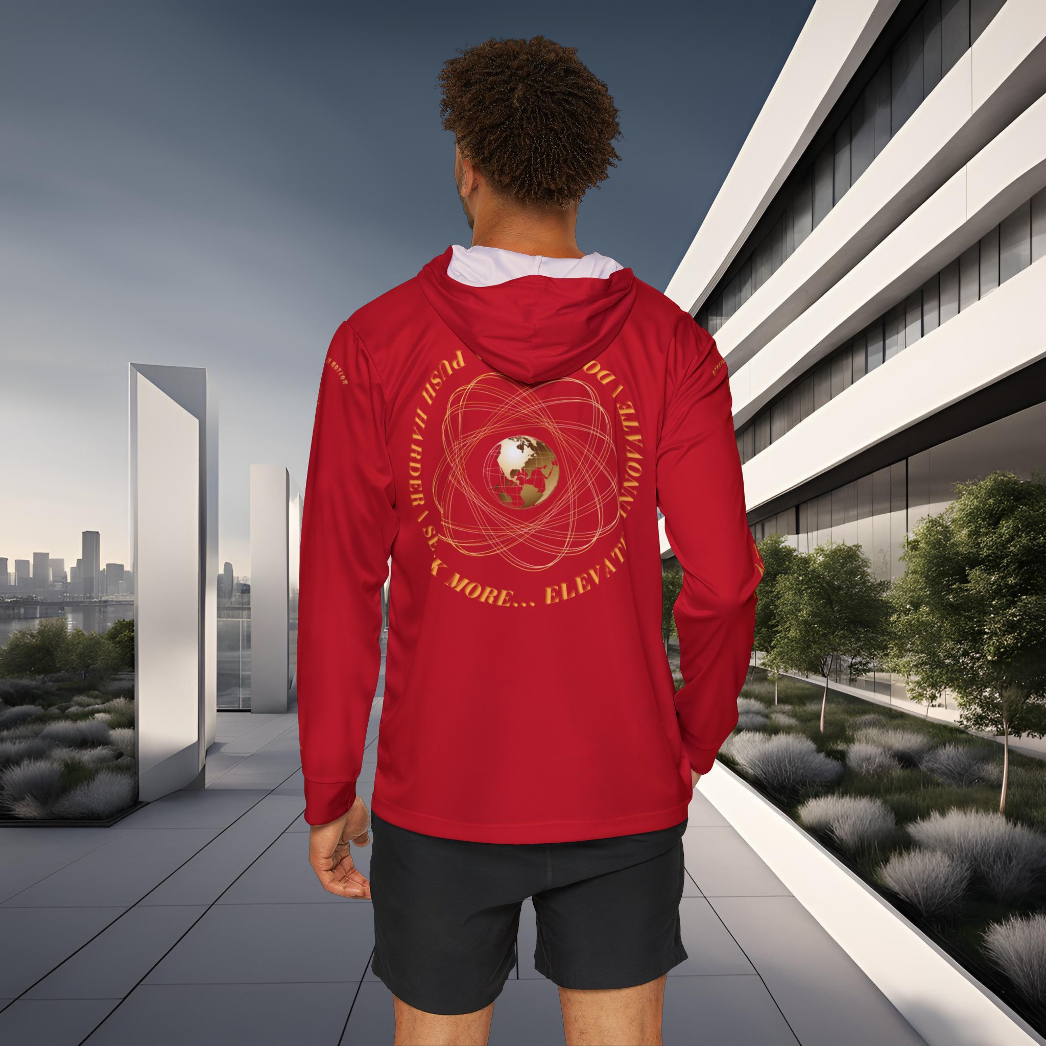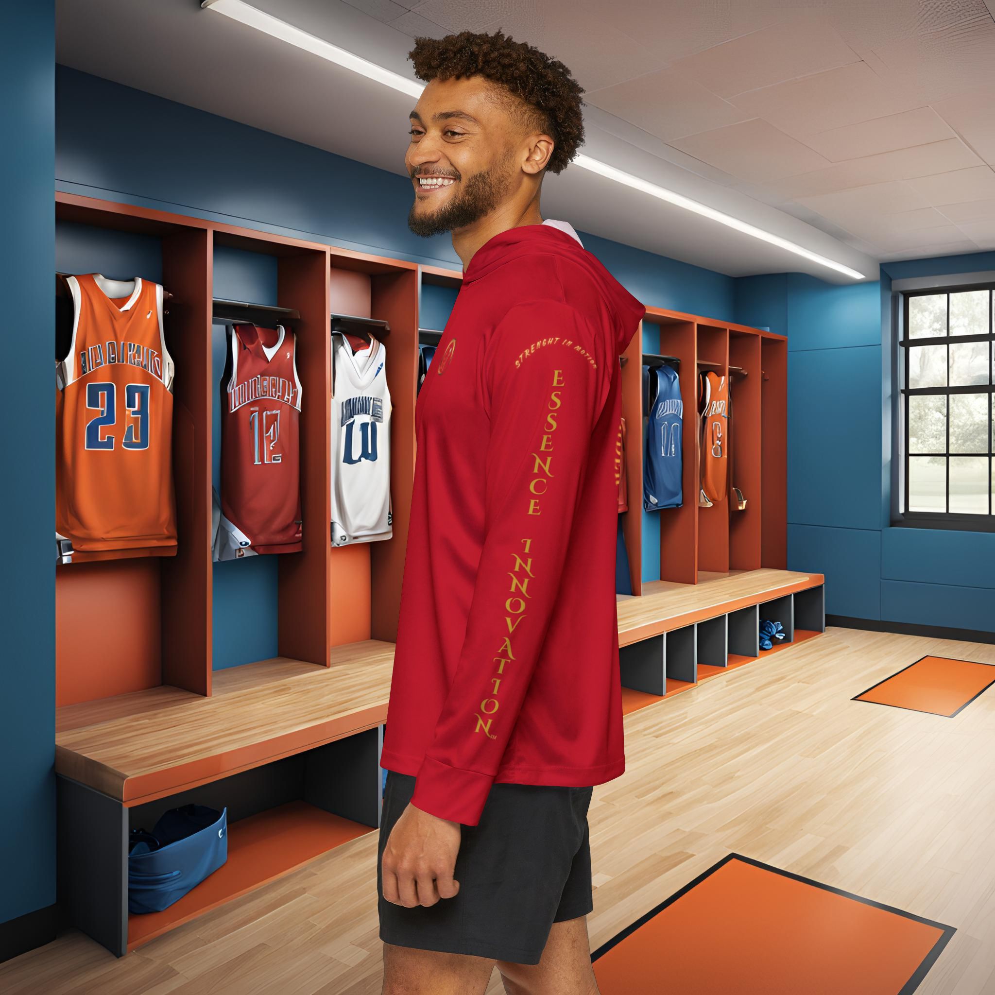 Essence Momentum X in dark red delivers breathable comfort, UPF 50+ protection, and sleek style. A Roman Numeral hoodie symbolizing endurance, passion, and modern strength.