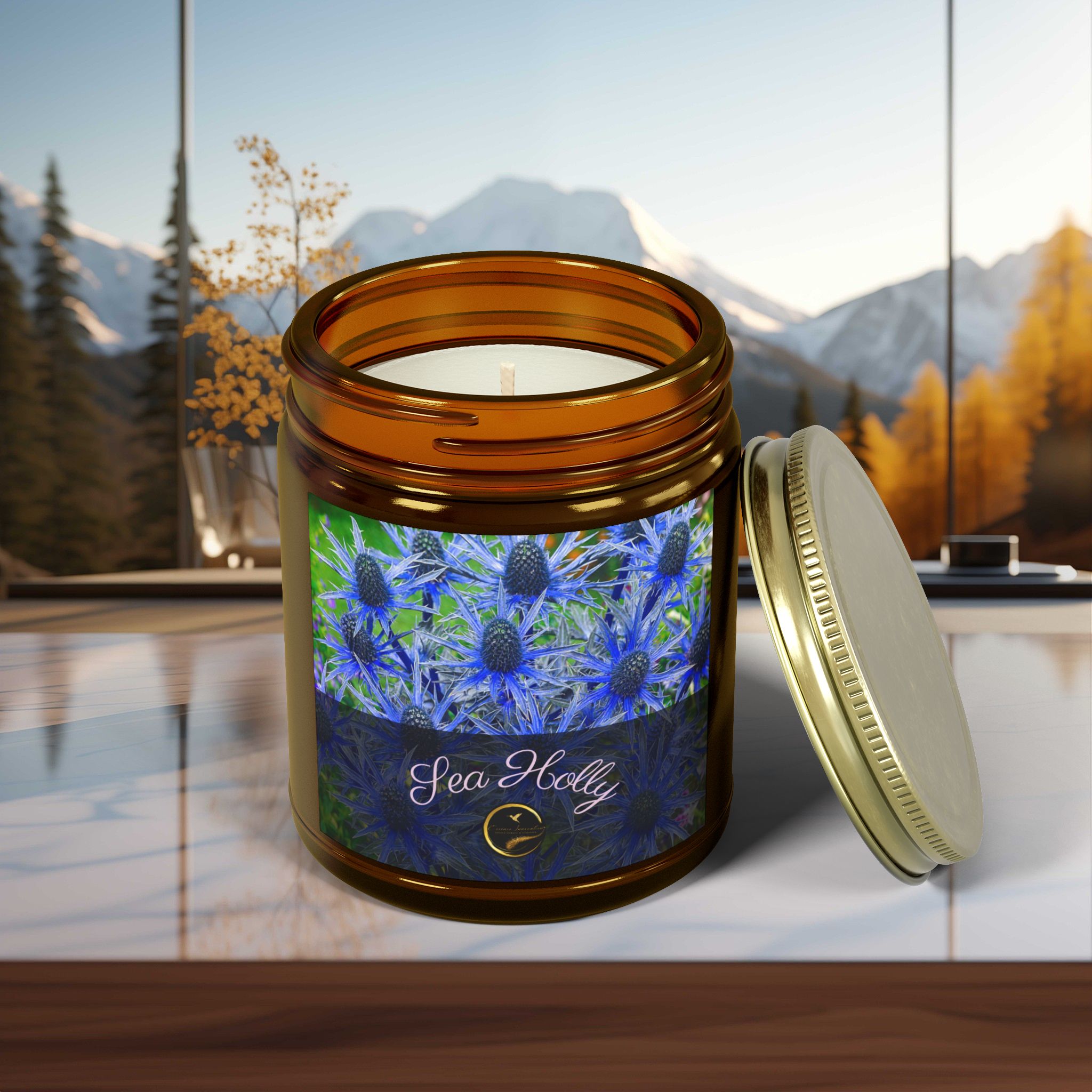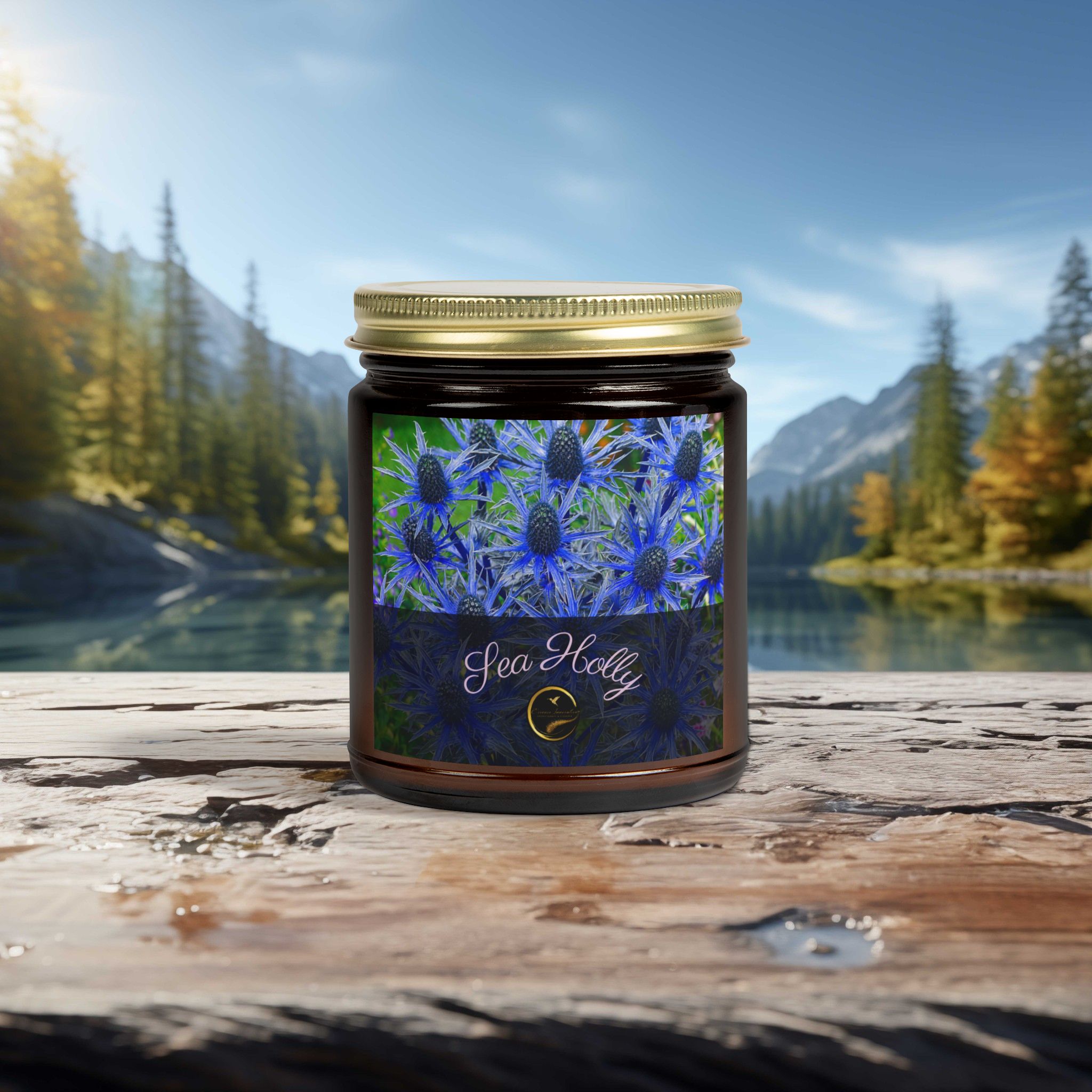 Immerse in coastal calm with the Sea Holly candle. Notes of sea salt, sage, and driftwood offer a refreshing escape in 4oz or 9oz amber or clear jars.