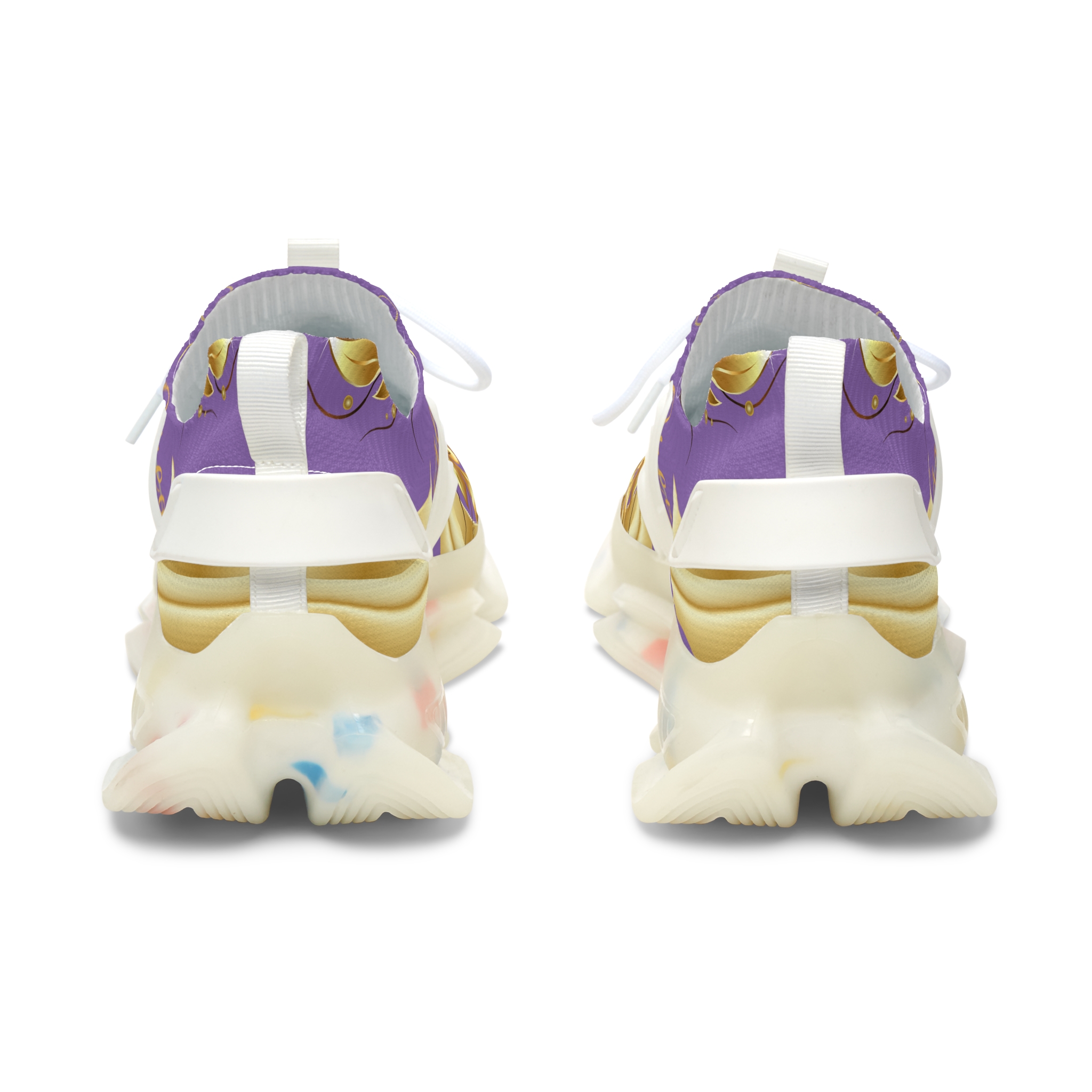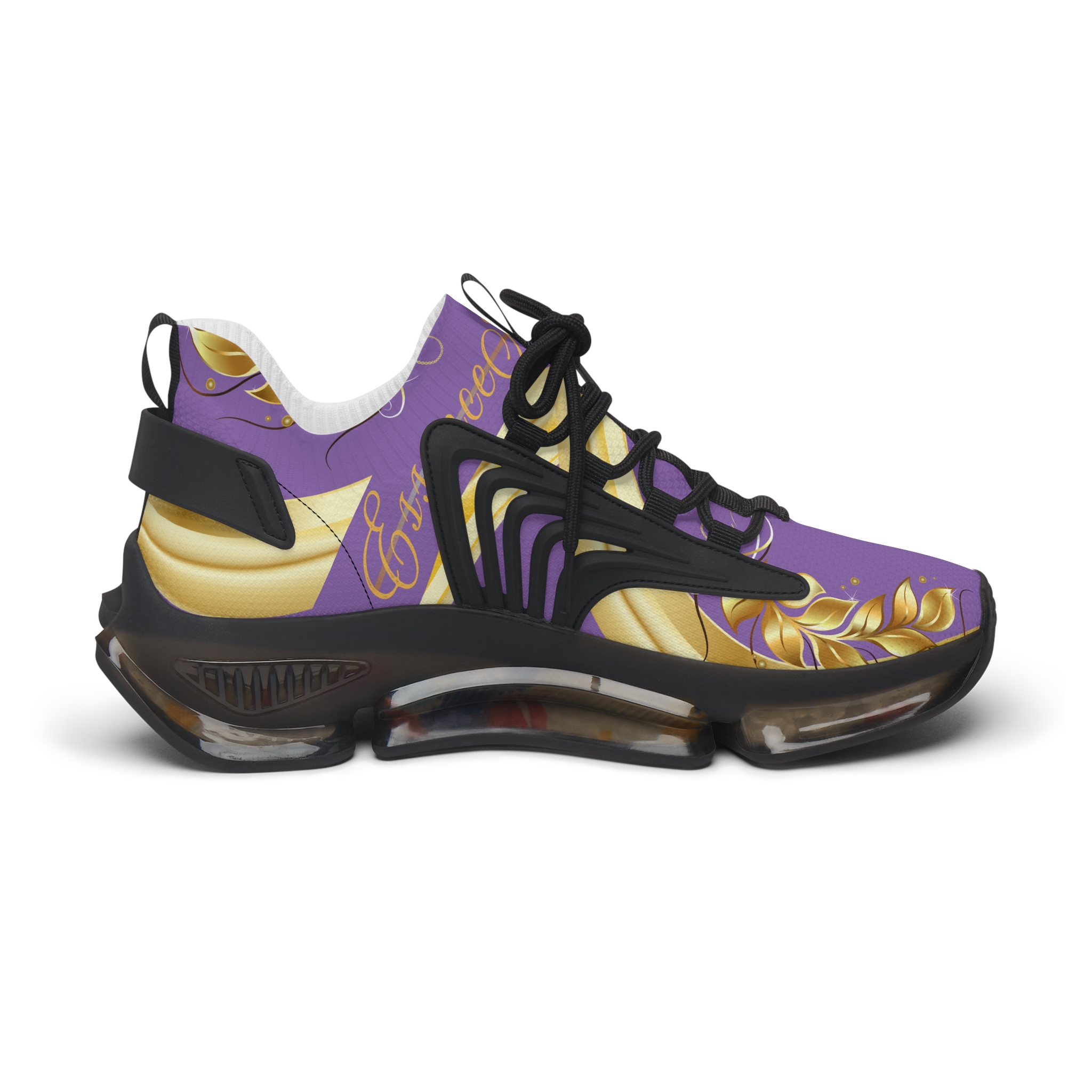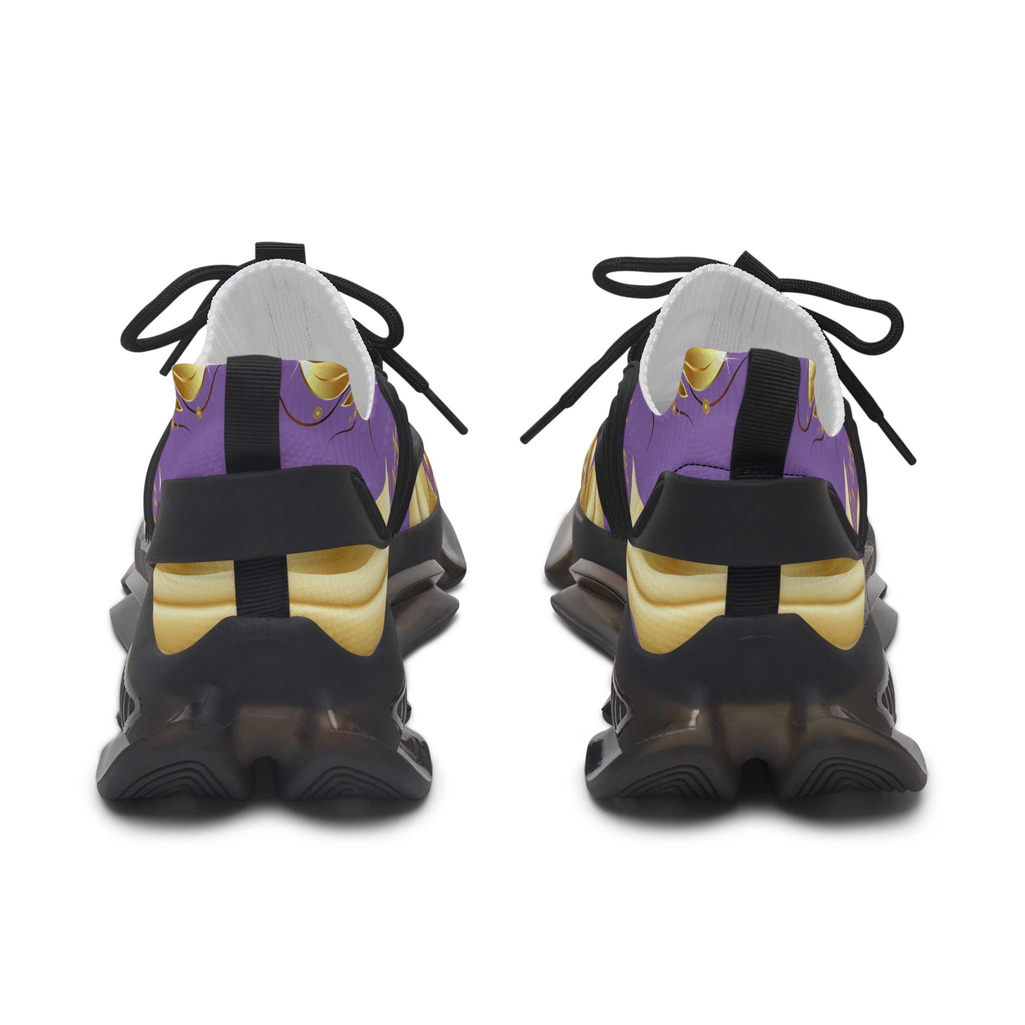 The Gold Leaf Sneakers Purple XIX are built to balance performance with design. EVA and TPU soles absorb impact while remaining lightweight and flexible, reducing fatigue through long days. Black or white sole options, stitched to match, allow you to personalize the look while ensuring durability. The rich purple base paired with golden leaf accents turns these sneakers into a statement piece that supports movement while elevating everyday style.