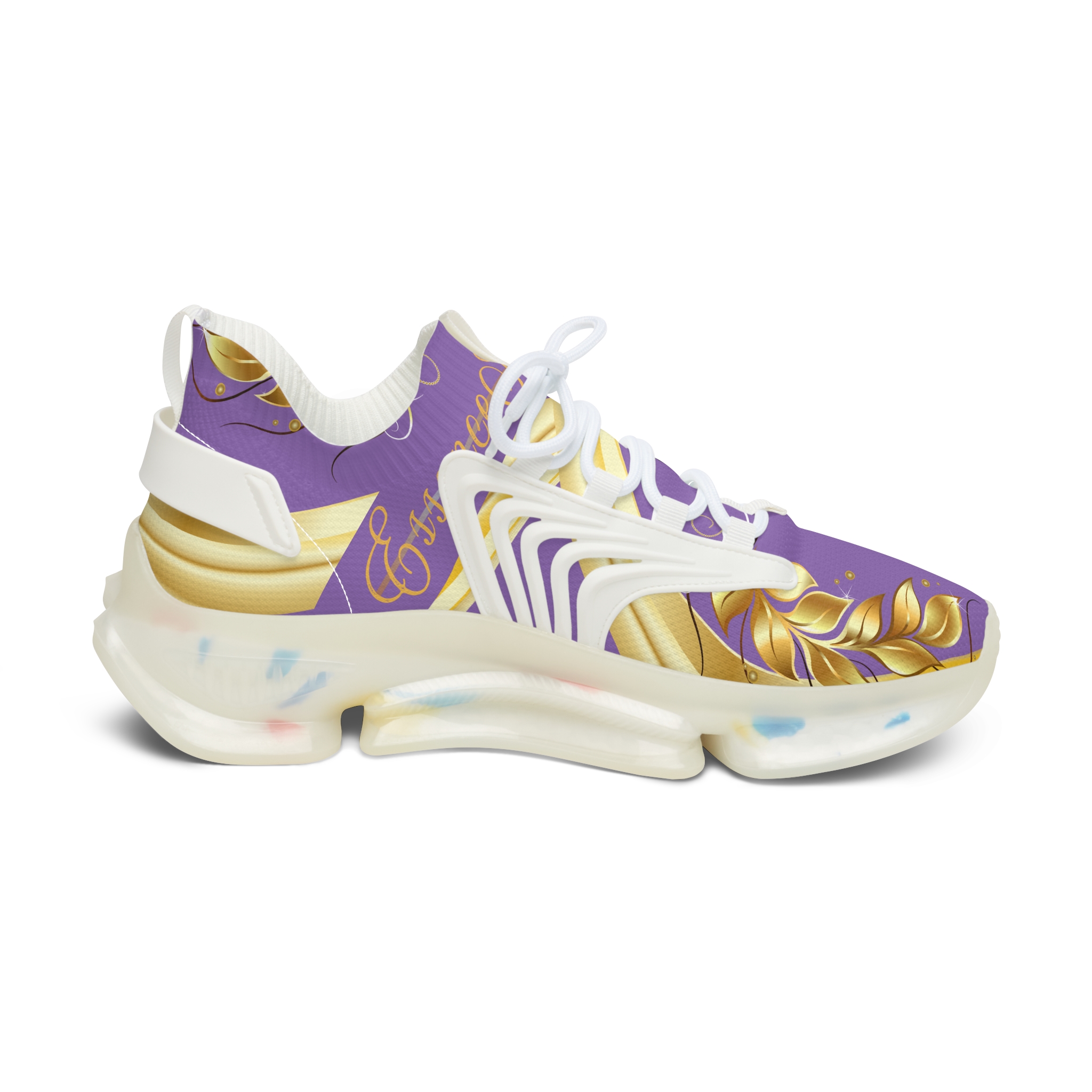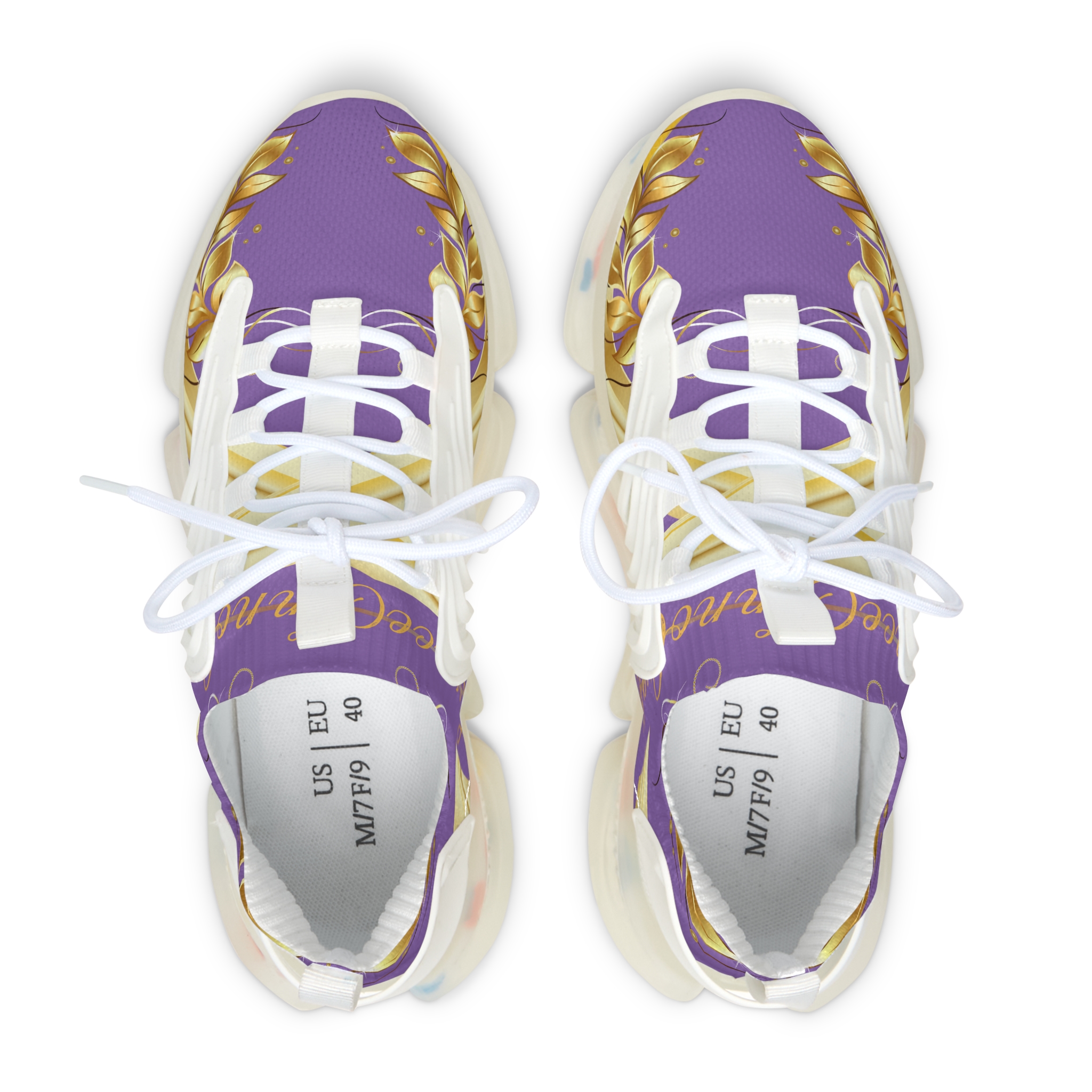 Gold Leaf Sneakers Purple XIX feature breathable mesh, cushioned memory foam, and refined golden leaf accents. Women’s sneakers designed for style and comfort.