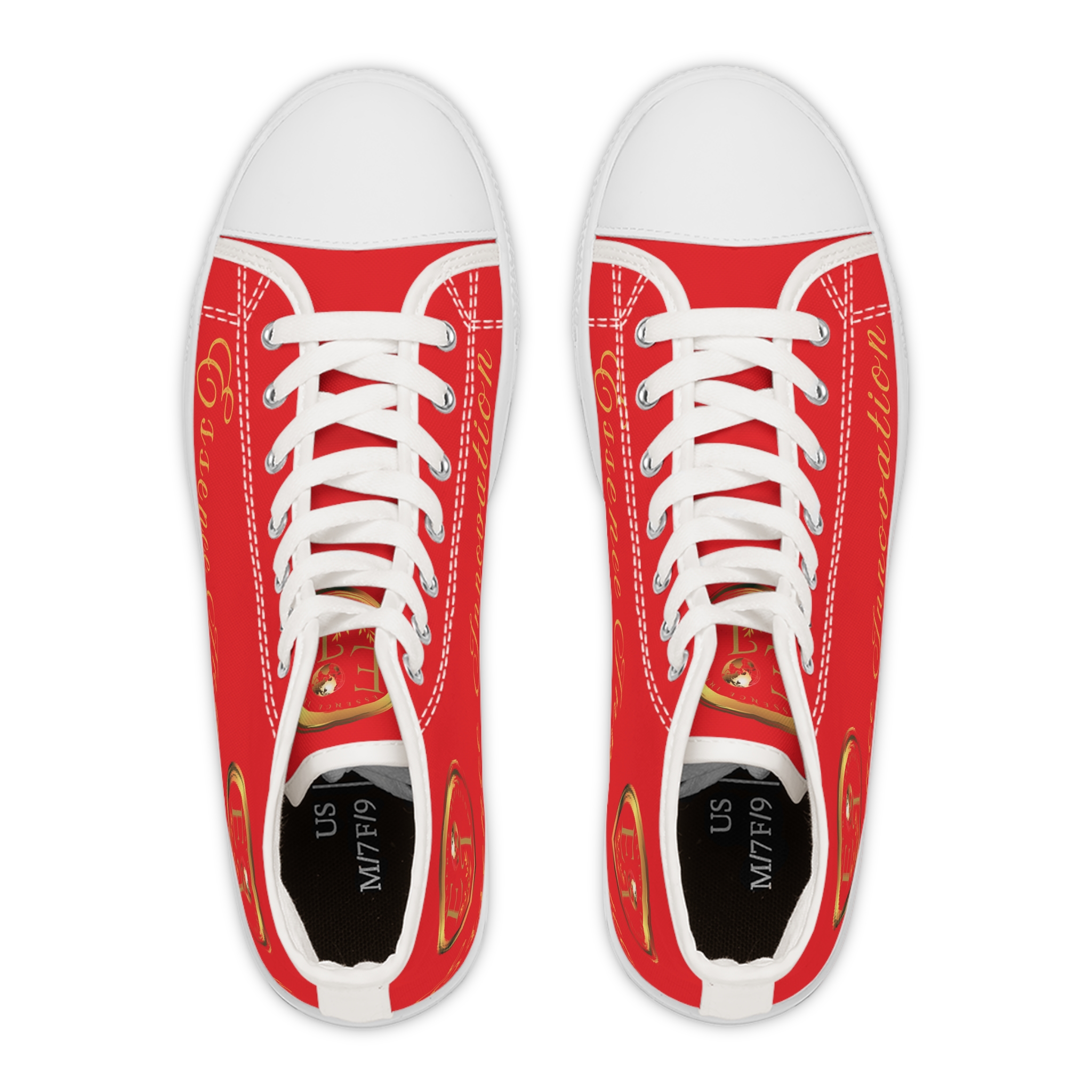 Ladies Essence Classic IX in Red blend bold canvas texture, cushioned comfort, and classic hightop form with clean white soles for women’s sneakers that energize any streetwear look.