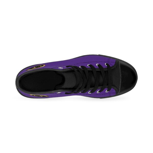 The Mens Classic HighTops XVI are crafted for performance and longevity. Their sturdy rubber outsole ensures grip and stability, while the pleather-covered round toe provides reinforcement against scuffs and wear. At 5″ calf height, they preserve the classic hightop silhouette celebrated in sneaker and streetwear culture. The vivid purple canvas combined with black soles, stitching, and lining creates a bold sneaker that balances durability with fashion-forward design.