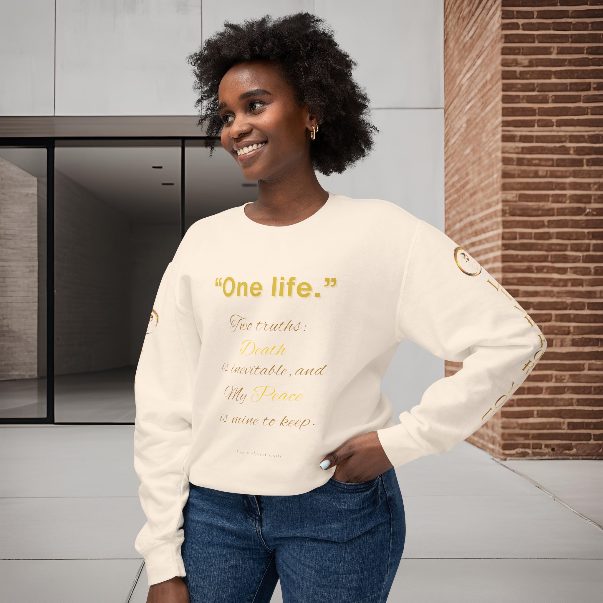 The One Life, Two Truths Crewneck Sweatshirt from Essence Innovation blends unmatched comfort with sustainable craftsmanship. Designed for everyday wear, this premium piece offers exceptional softness, durability, and timeless style.
