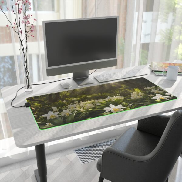 Orchid Grove LED Gaming Mouse Pad – The Mouse Pad brings natural grace to your setup with luminous orchid artwork framed in soft light. Orchid Grove combining refined design with high-performance features, it elevates both play and work. With RGB edge lighting, a precision cloth surface, and a stable non-slip base, this mouse pad delivers artistry and accuracy in equal measure.