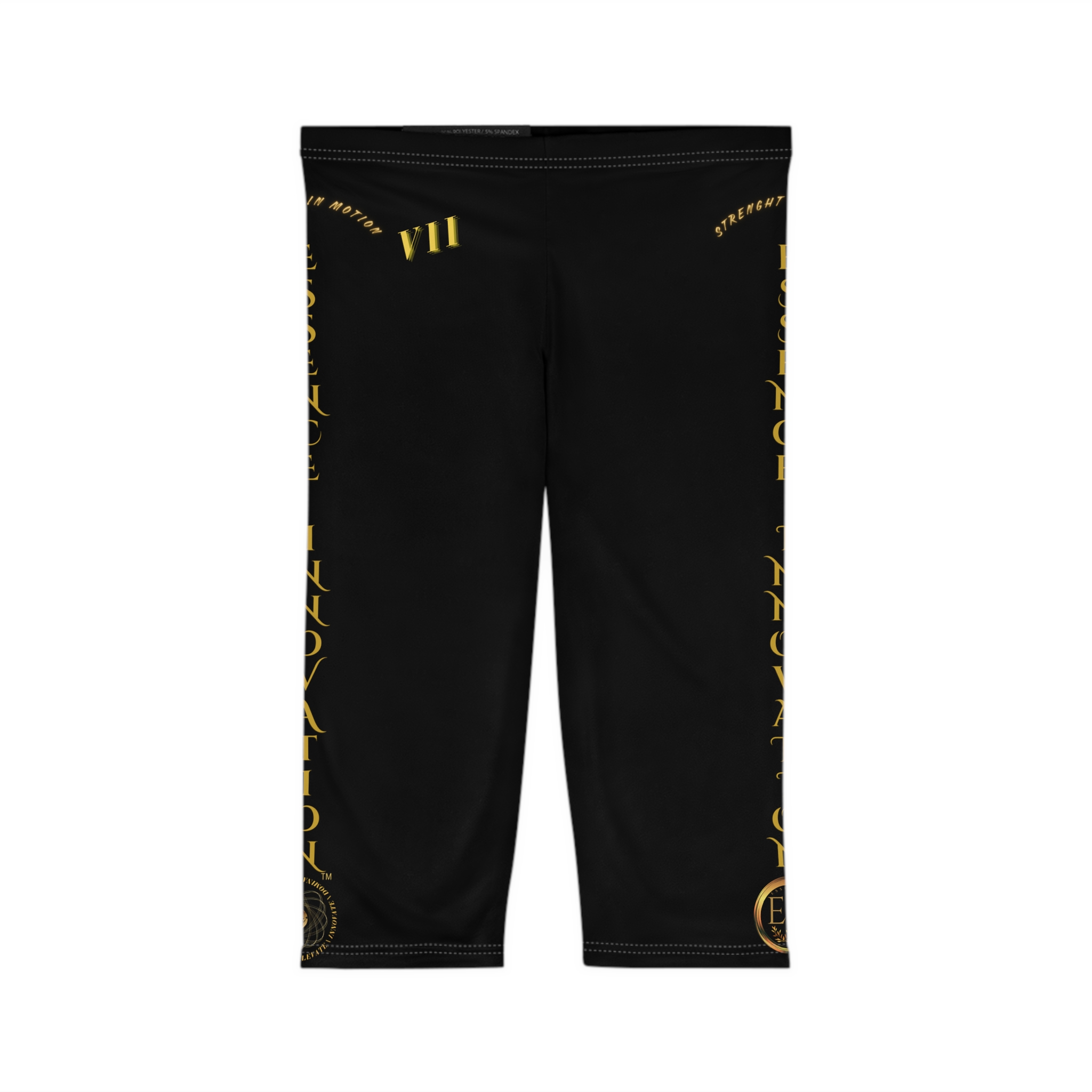 Seek More CL VII in black blends skinny fit, breathable fabric, and modern edge. A Roman Numeral ladies capri legging symbolizing resilience, balance, and timeless confidence.