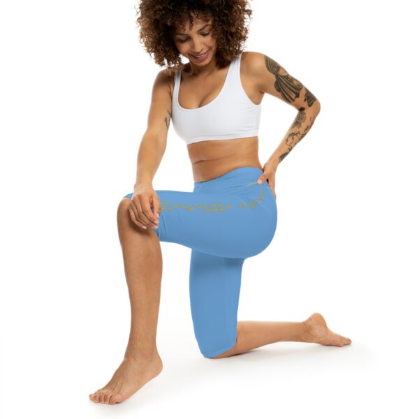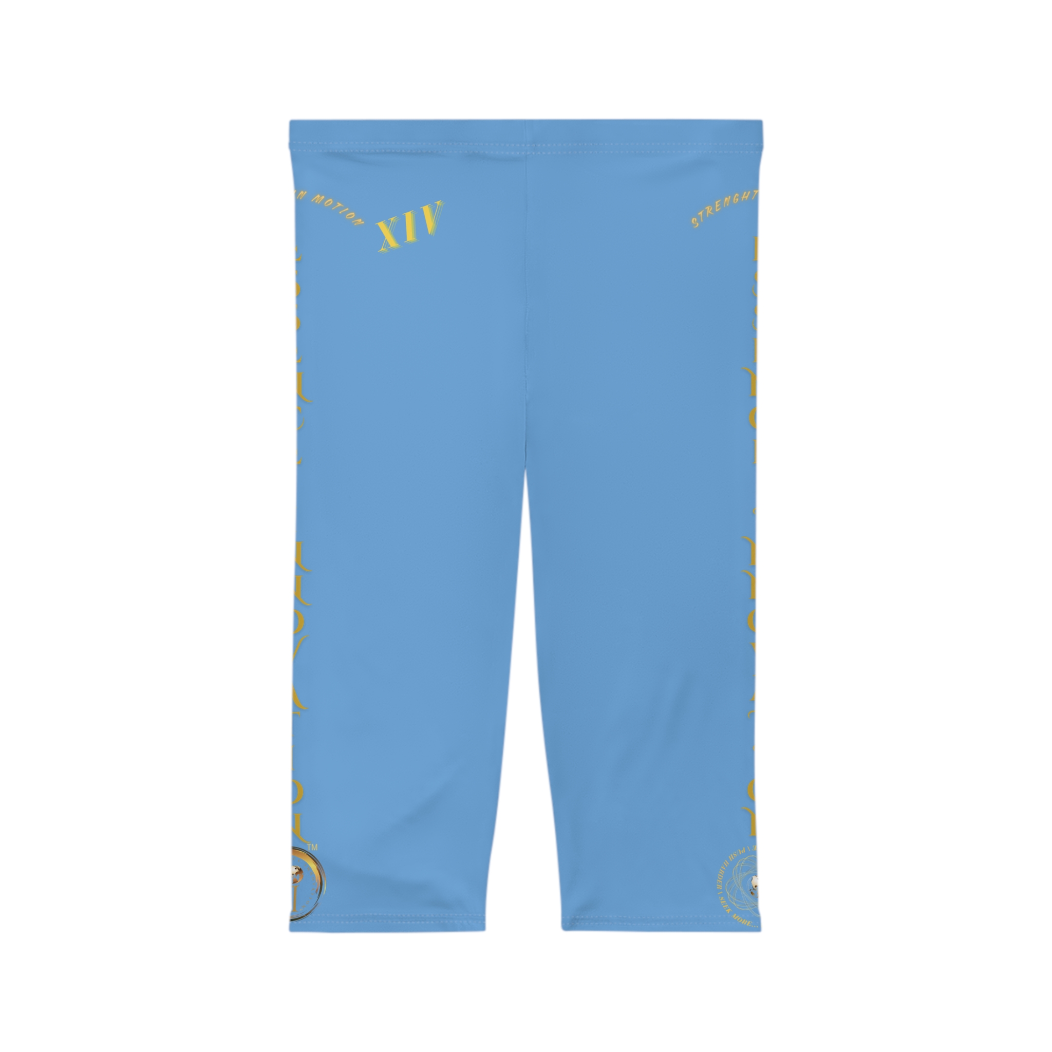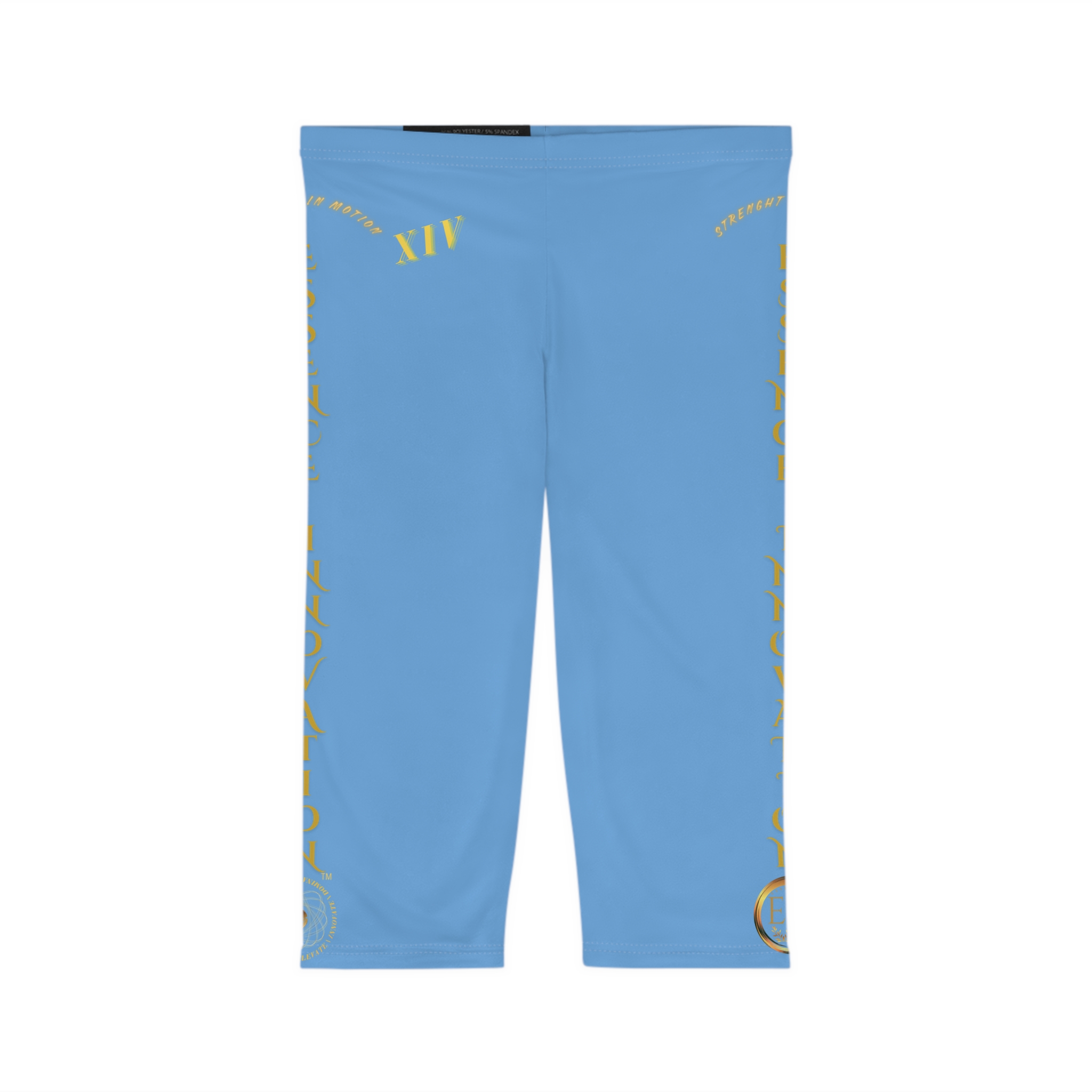 Seek More CL XIV in light blue offers skinny fit, breathable fabric, and fresh elegance. A Roman Numeral ladies capri legging symbolizing clarity, renewal, and balance in motion.