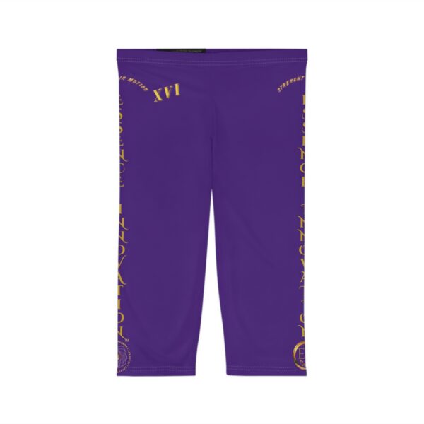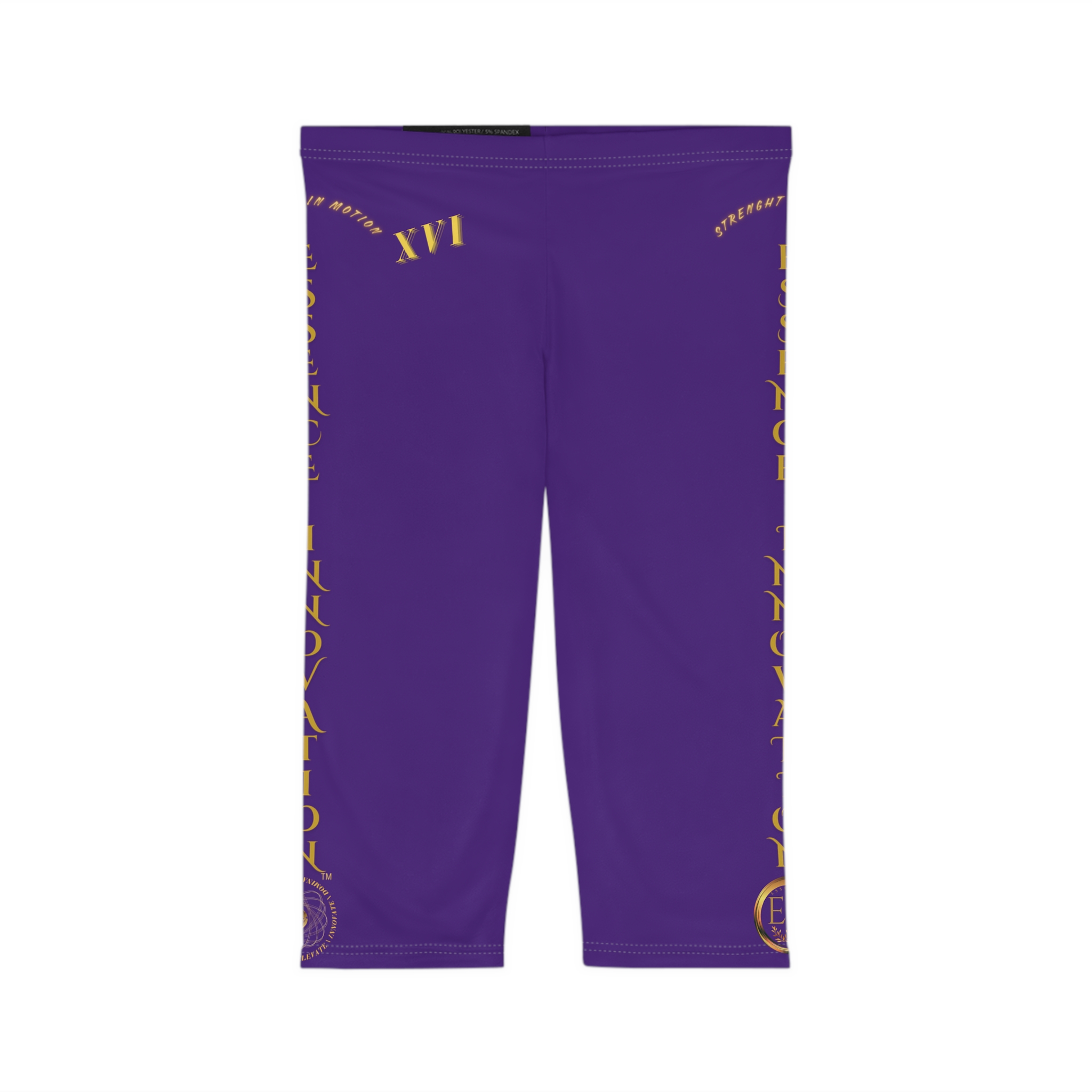 Seek More CL XVI in purple delivers skinny fit, breathable comfort, and refined elegance. A Roman Numeral ladies capri legging symbolizing creativity, balance, and resilience.