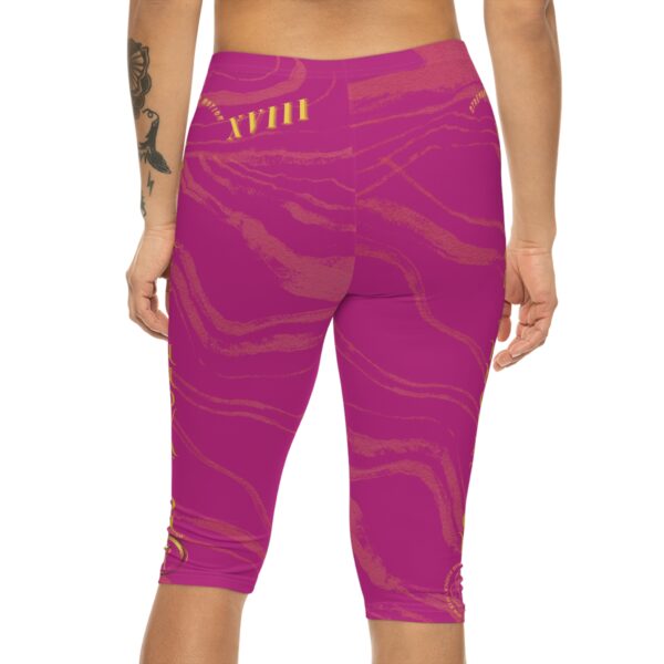 Vibrant elegance and balanced vitality define Seek More CLS XVIII, the pink edition of our striped Roman Numeral capri leggings collection. With its lively pink base accented by bold stripe detailing, this piece reflects rhythm, confidence, and joy in motion. Designed to perform in the gym while maintaining everyday versatility, these leggings embody strength with a touch of playful refinement.