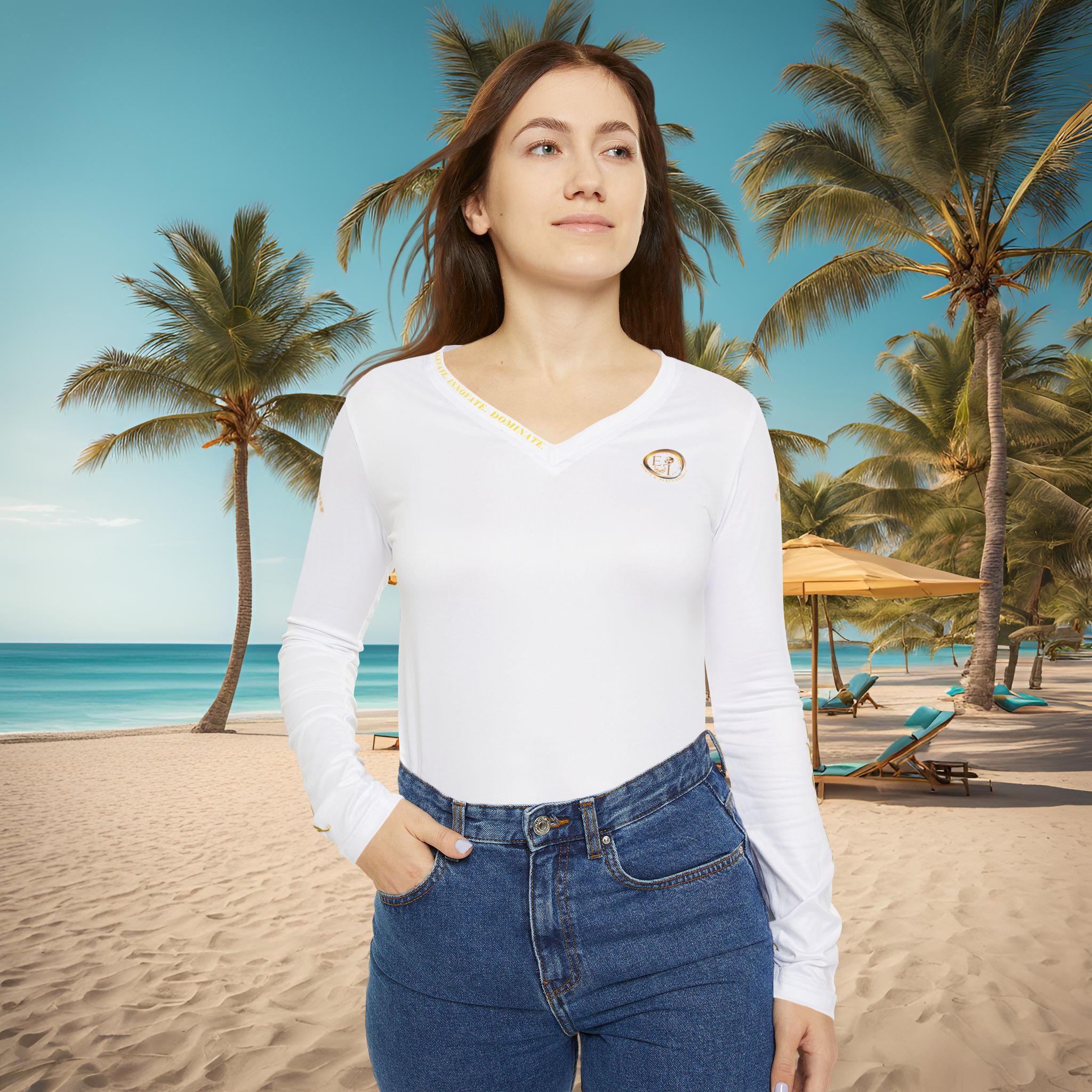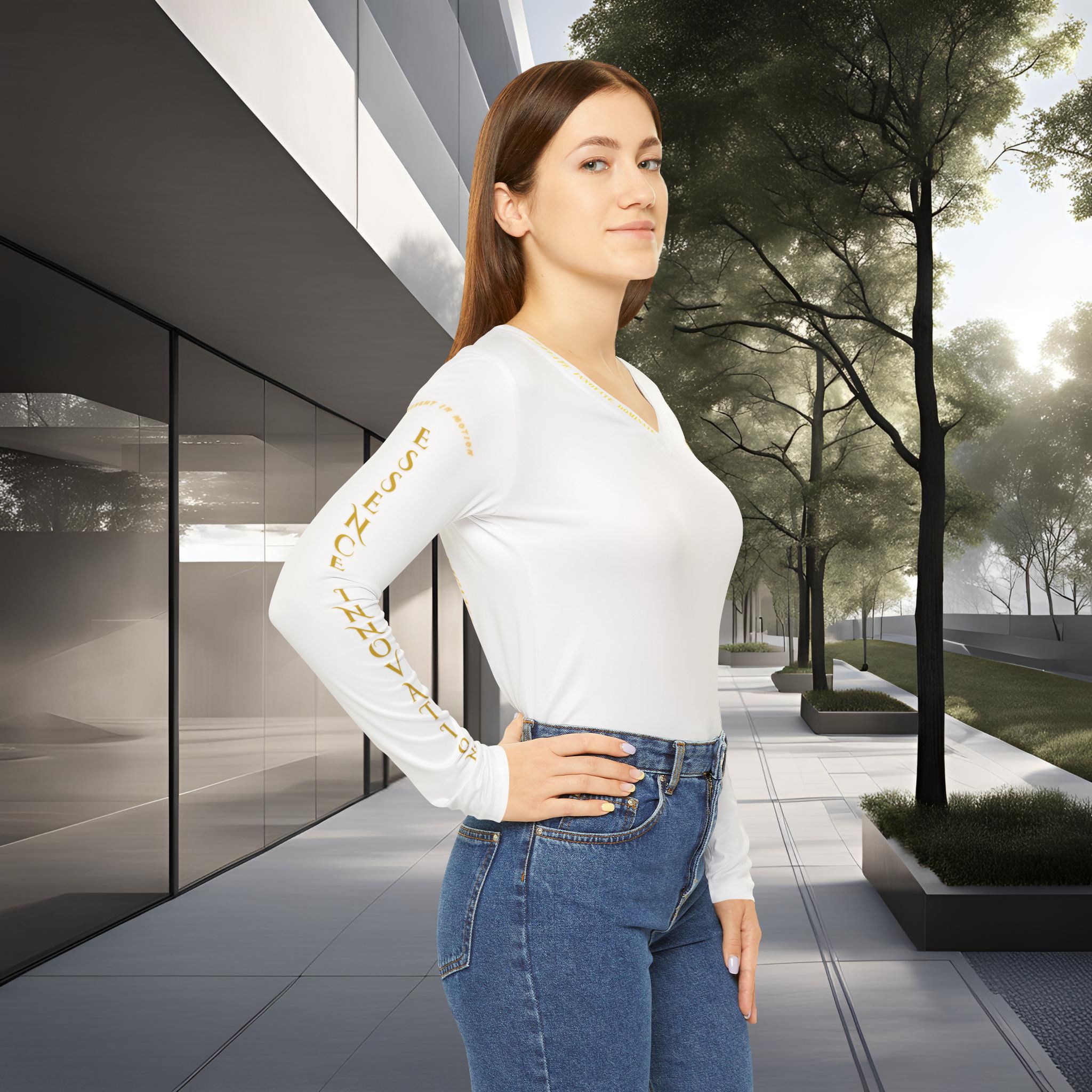 Minimalist design and versatile comfort define Seek More Performance VI, the white edition of our Roman Numeral women’s long sleeve v-neck collection. Crisp, refined, and endlessly adaptable, this piece reflects balance and renewal, making it the perfect companion for both active days and quiet moments.