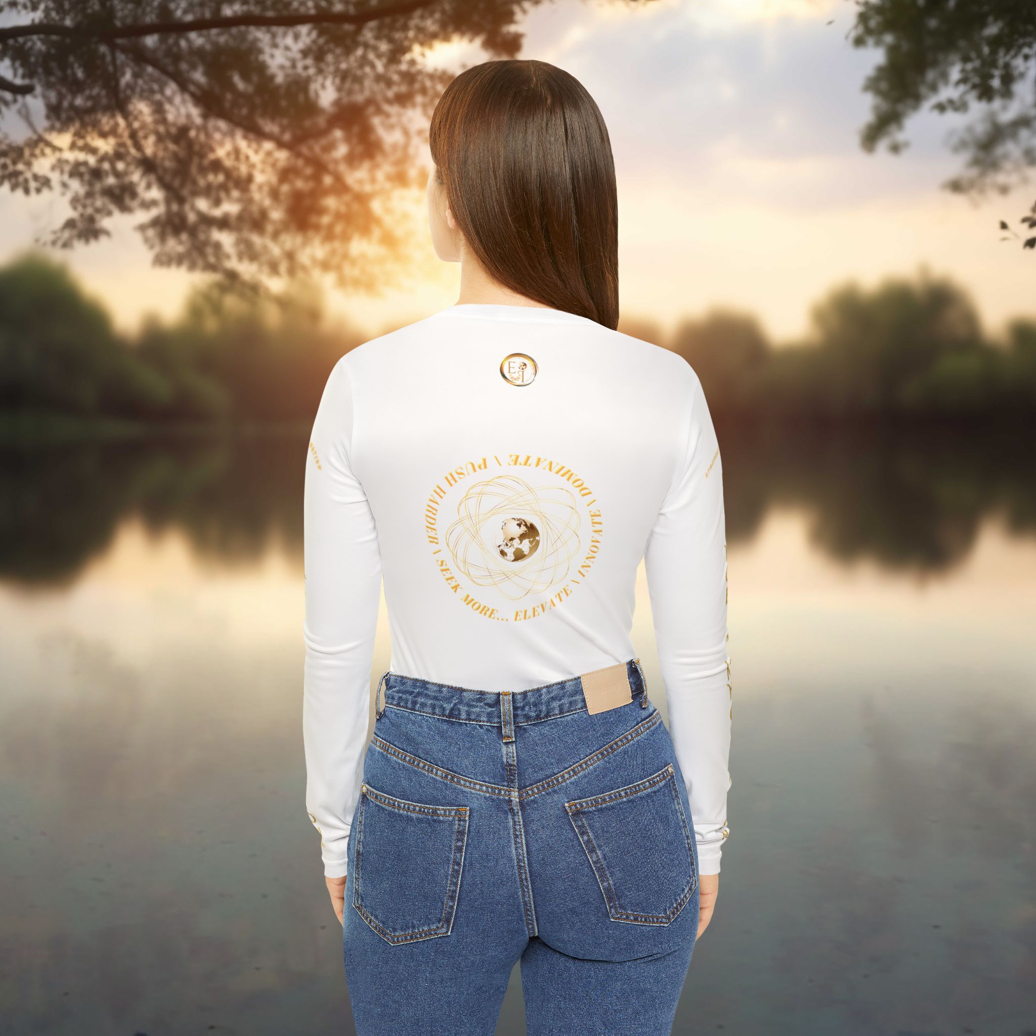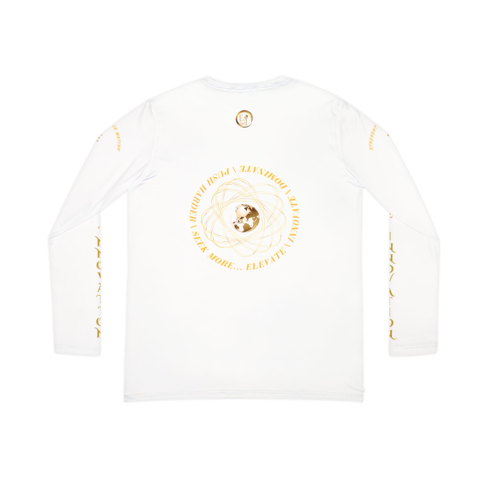 Seek More Performance VI in white offers lightweight stretch, breathable comfort, and versatile styling. A Roman Numeral long sleeve symbolizing balance, renewal, and refined motion.
