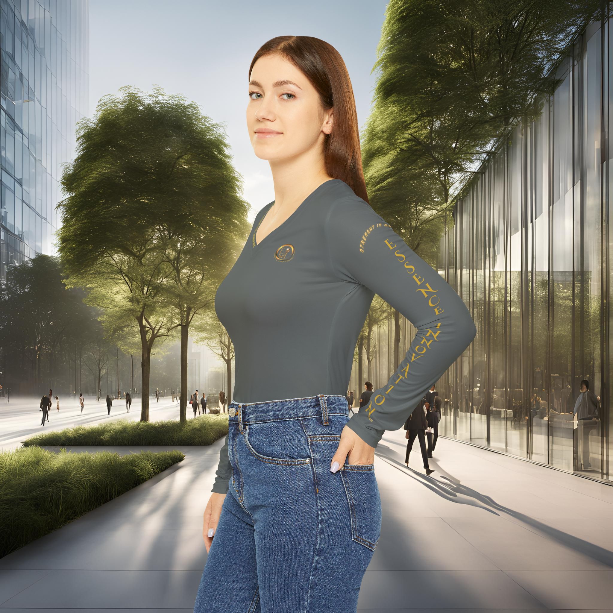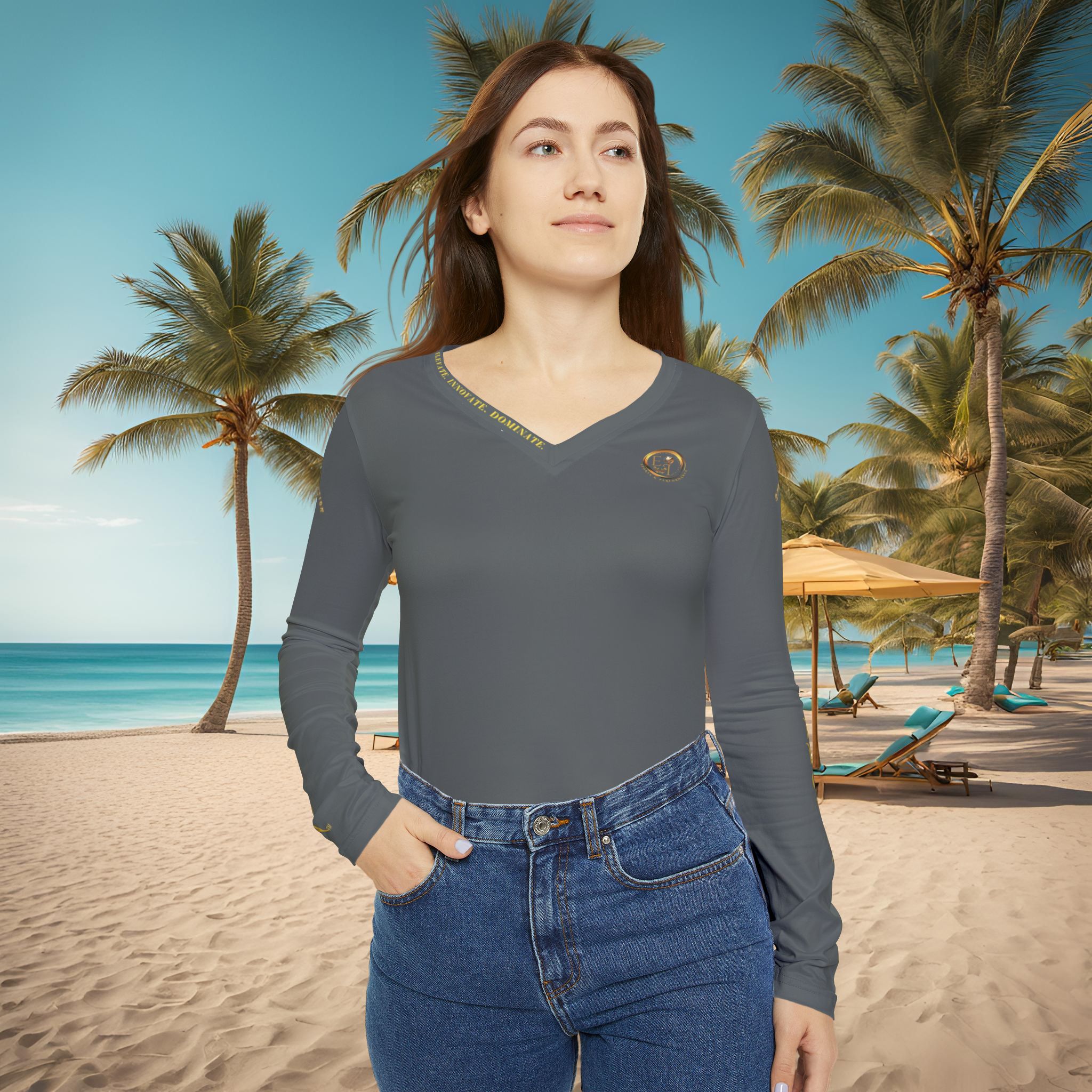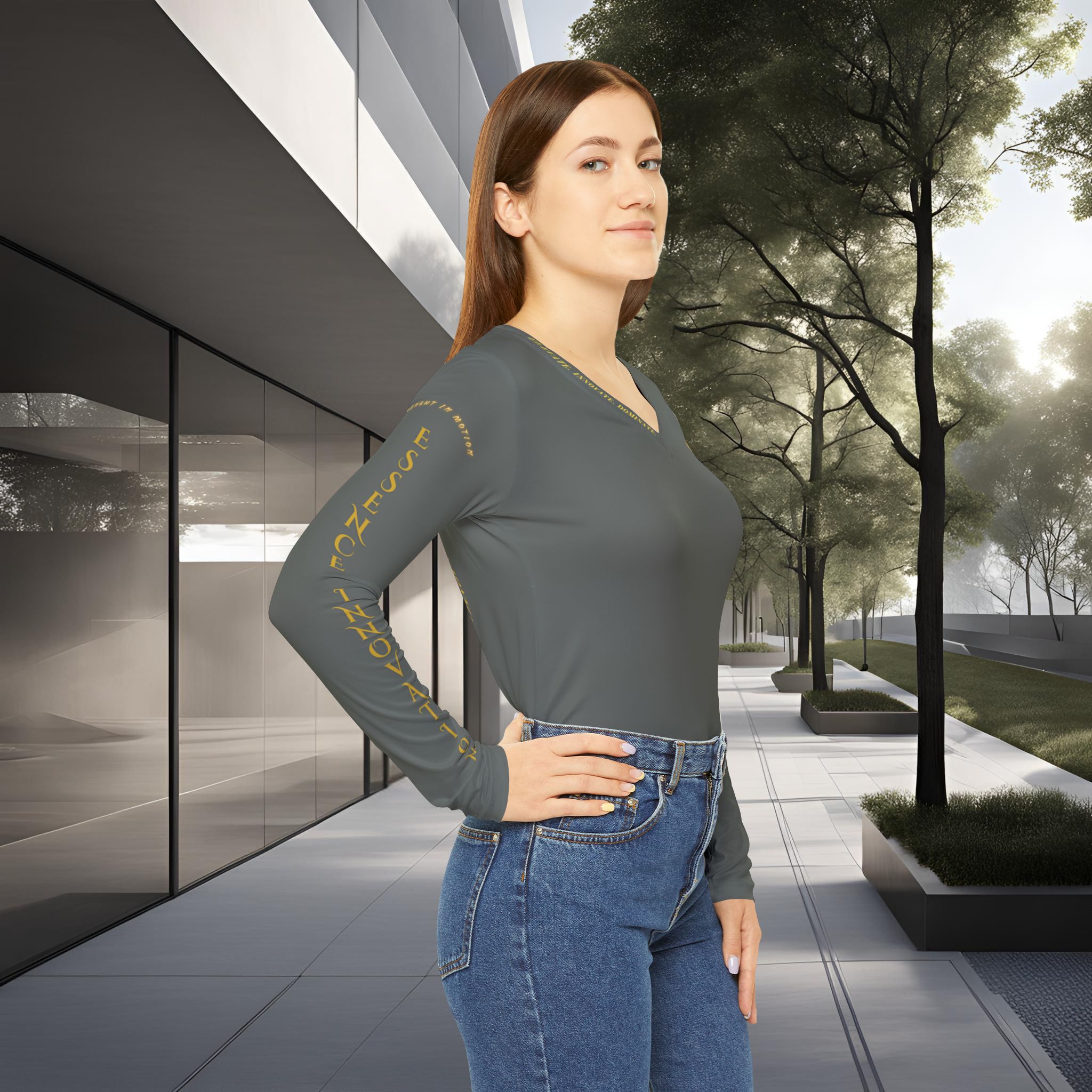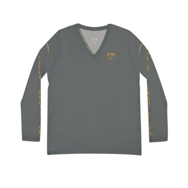 Dark grey is one of the most versatile tones, pairing easily with both brights and neutrals. It reflects balance between strength and calm, making this edition a foundation piece for modern wardrobes. This long sleeve v-neck can be dressed up for minimalist elegance or worn casually as a go-to daily layer.