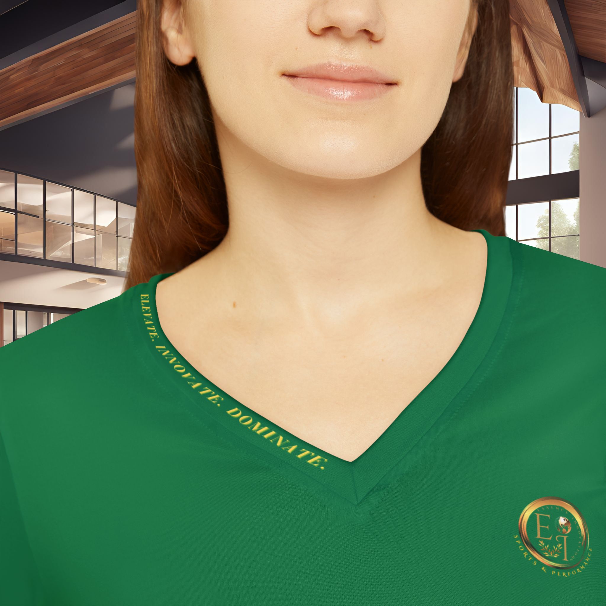 The classic v-neck cut enhances the neckline, while double-needle stitching along the sleeves, hem, and neck ensures lasting durability. Finished with a printed-in size and care label, it keeps the design irritation-free and minimal. Seek More Performance XII is styled for modern women who value elegance in motion.