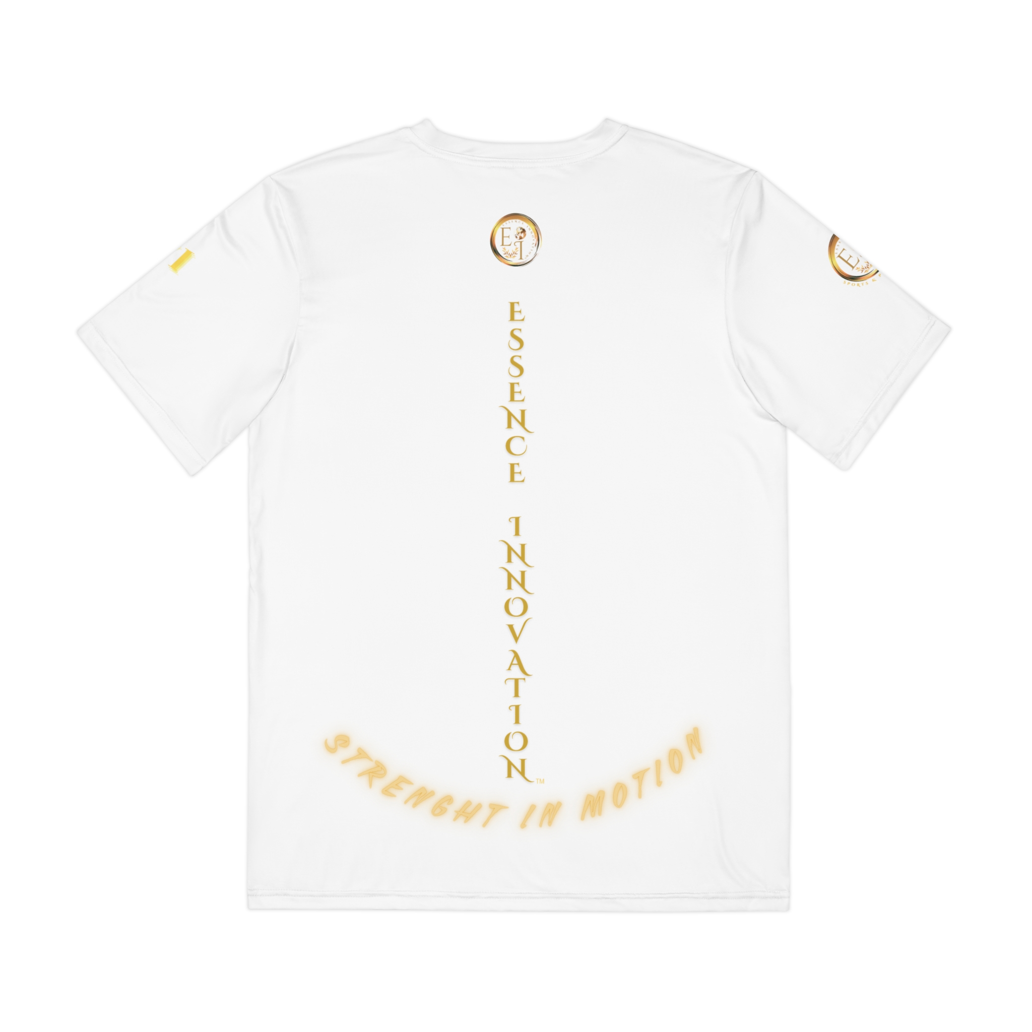 White performance tee with silky polyester comfort. Breathable, durable, and shrink-resistant with vibrant all-over print for versatile everyday style.