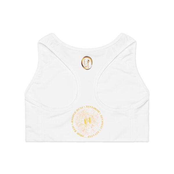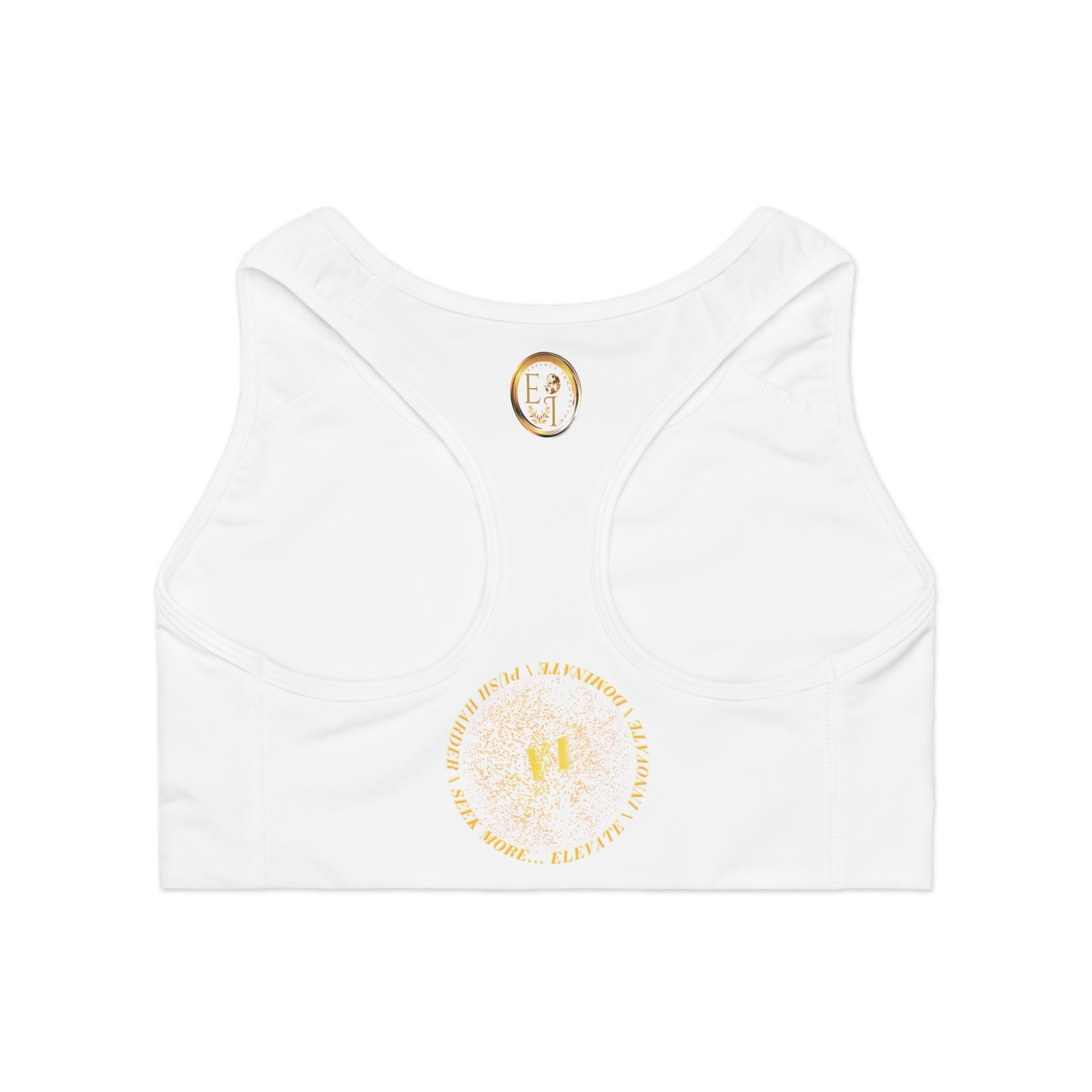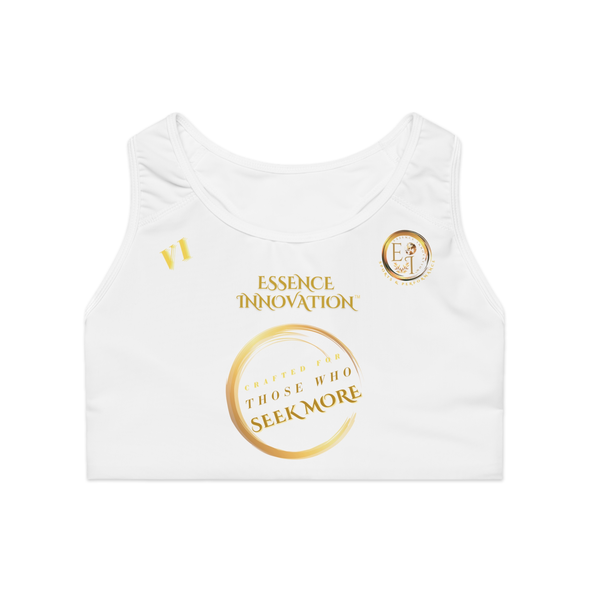 Seek More SB VI in white combines compression fit, moisture-wicking fabric, and elegant design. A Roman Numeral sports bra embodying balance, renewal, and effortless support.