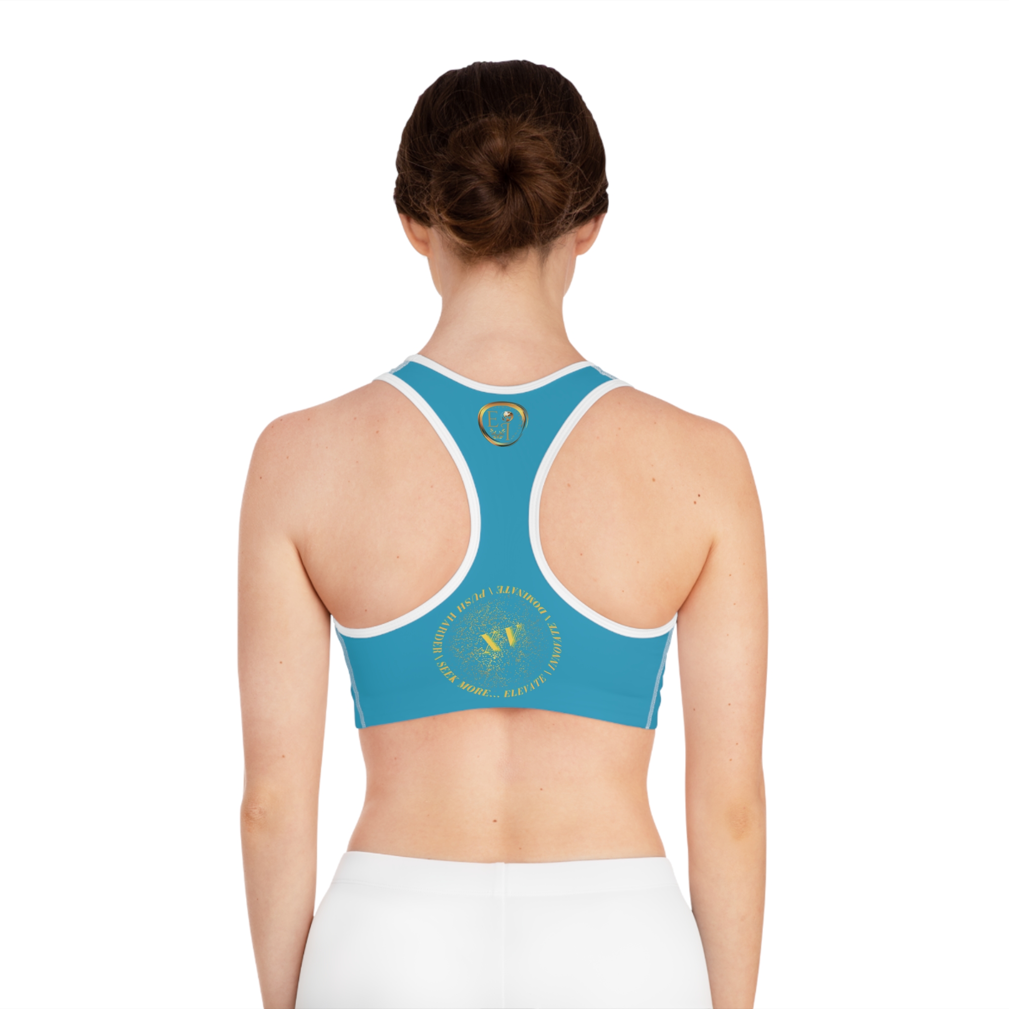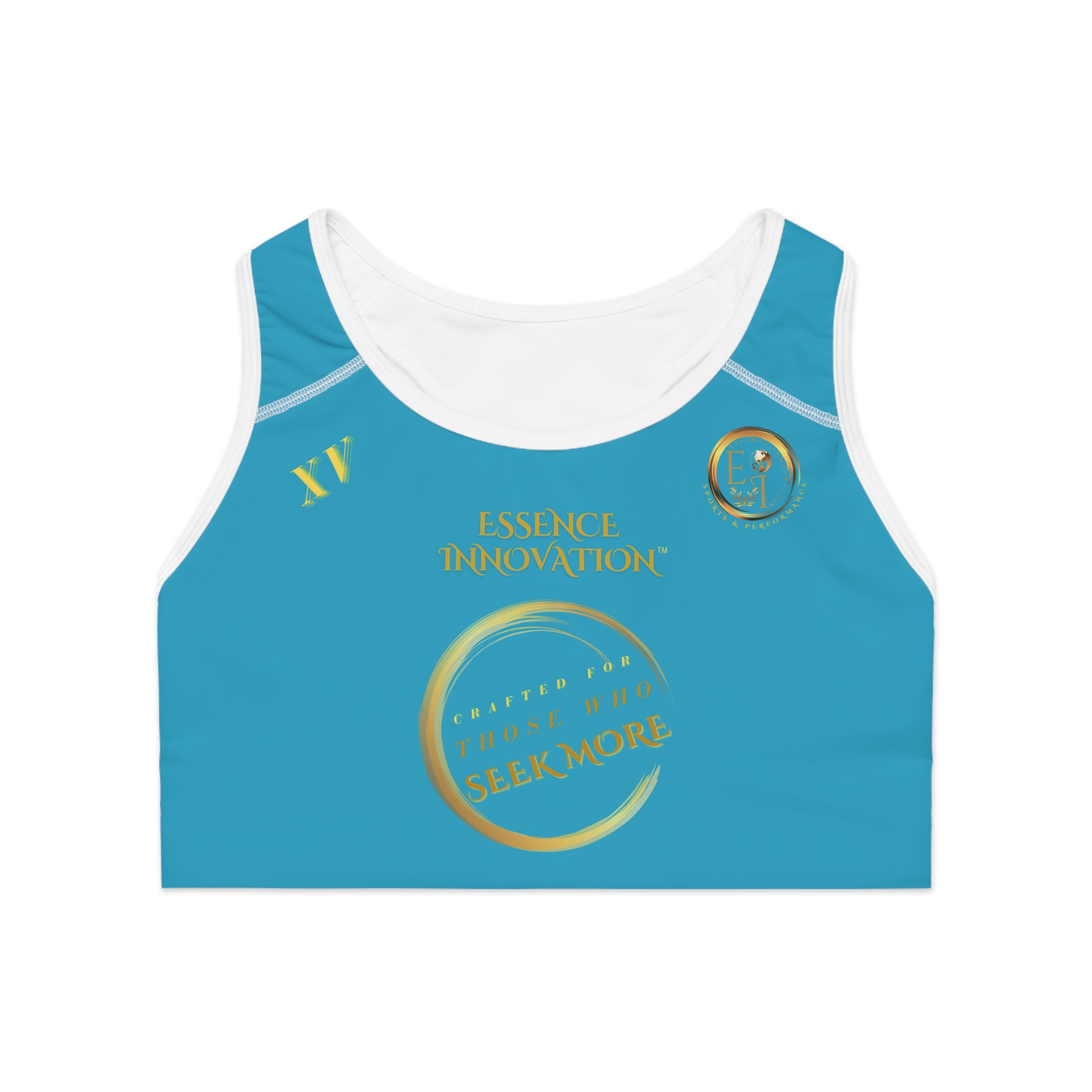 Fresh energy and inspired balance define Seek More SB XV, the turquoise edition of our Roman Numeral ladies sports bra collection. With its bright, refreshing tone, this piece combines dependable athletic support with creative expression. Designed for versatility, it transitions seamlessly from training and yoga to lifestyle styling, offering both confidence and elegance.