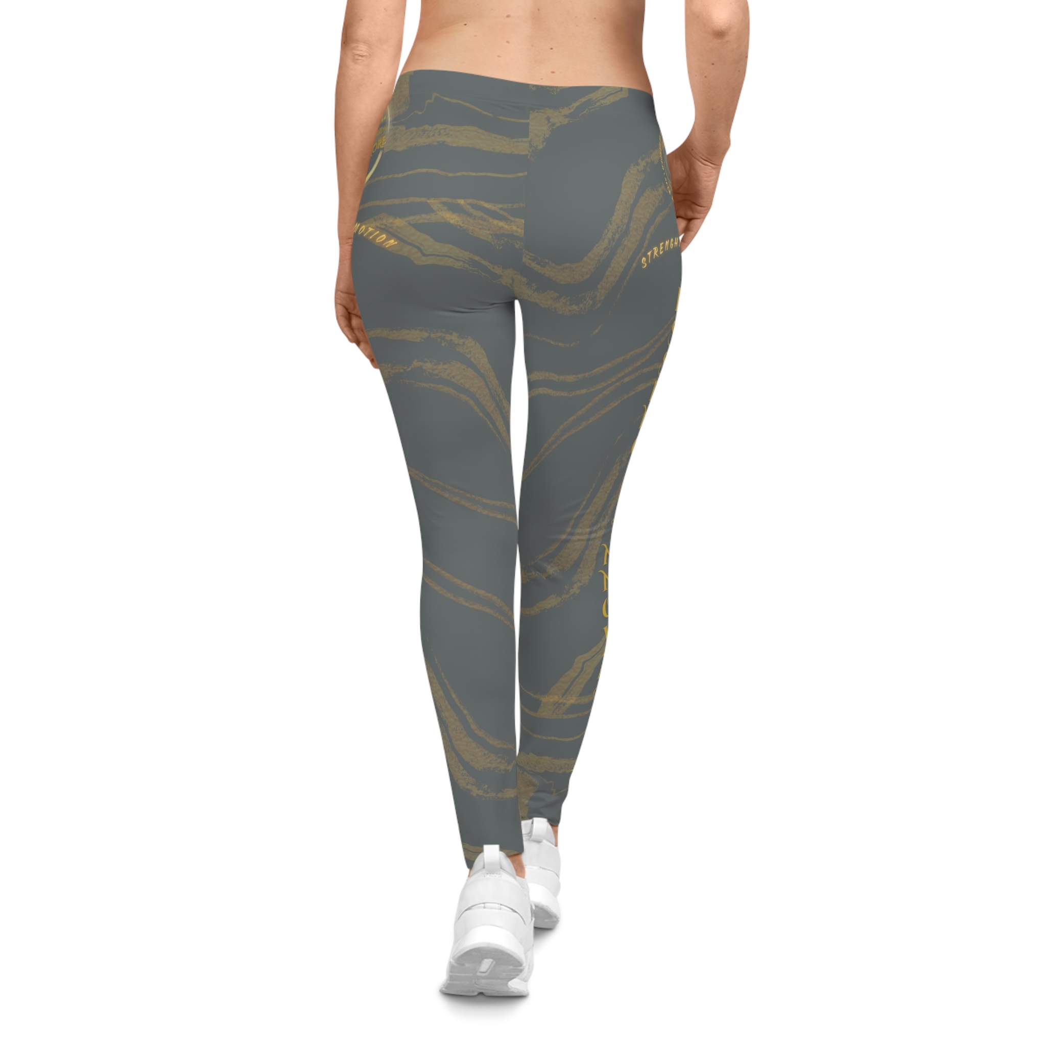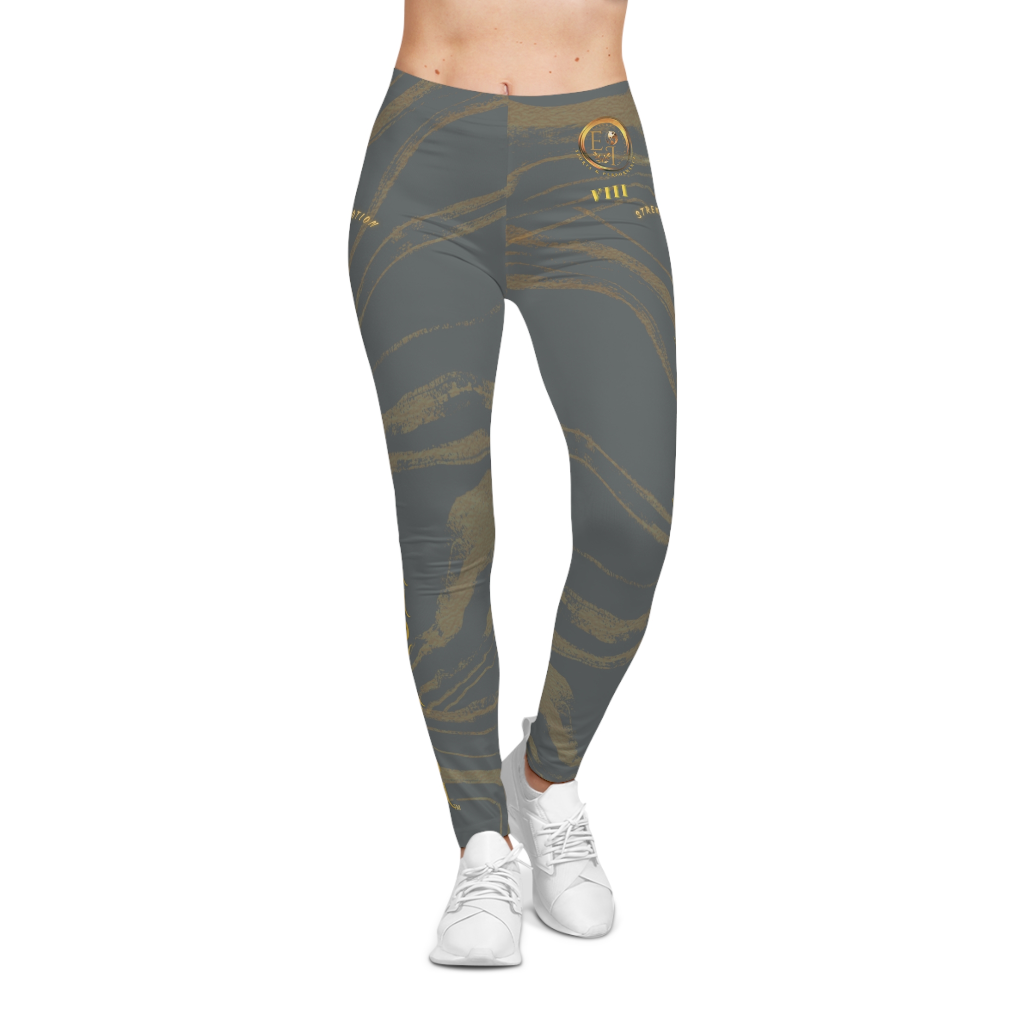 Seek More Striped VIII Women’s Casual Leggings in dark grey — silky, sleek, and versatile. Roman Numeral VIII design reflects balance, calm, and quiet strength.