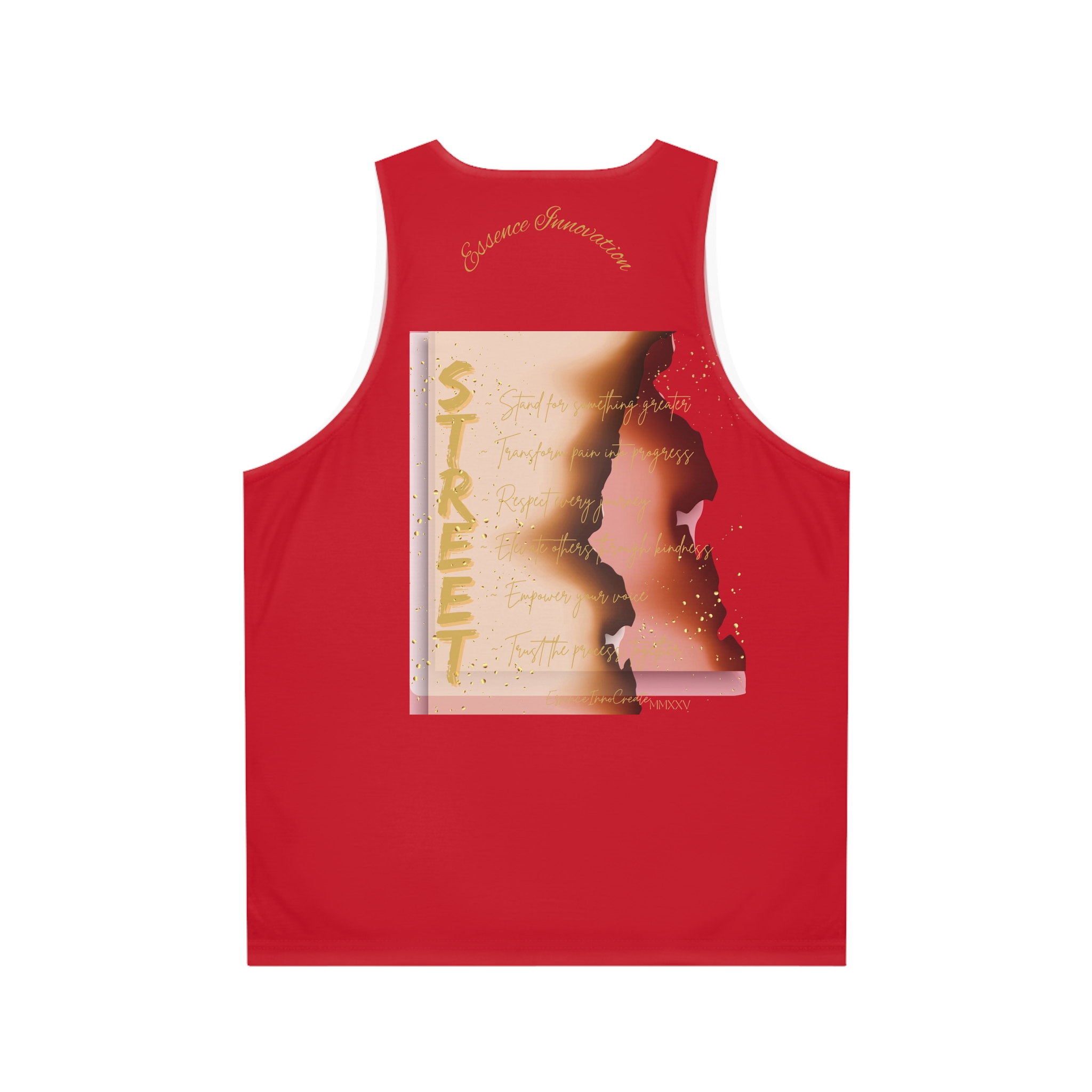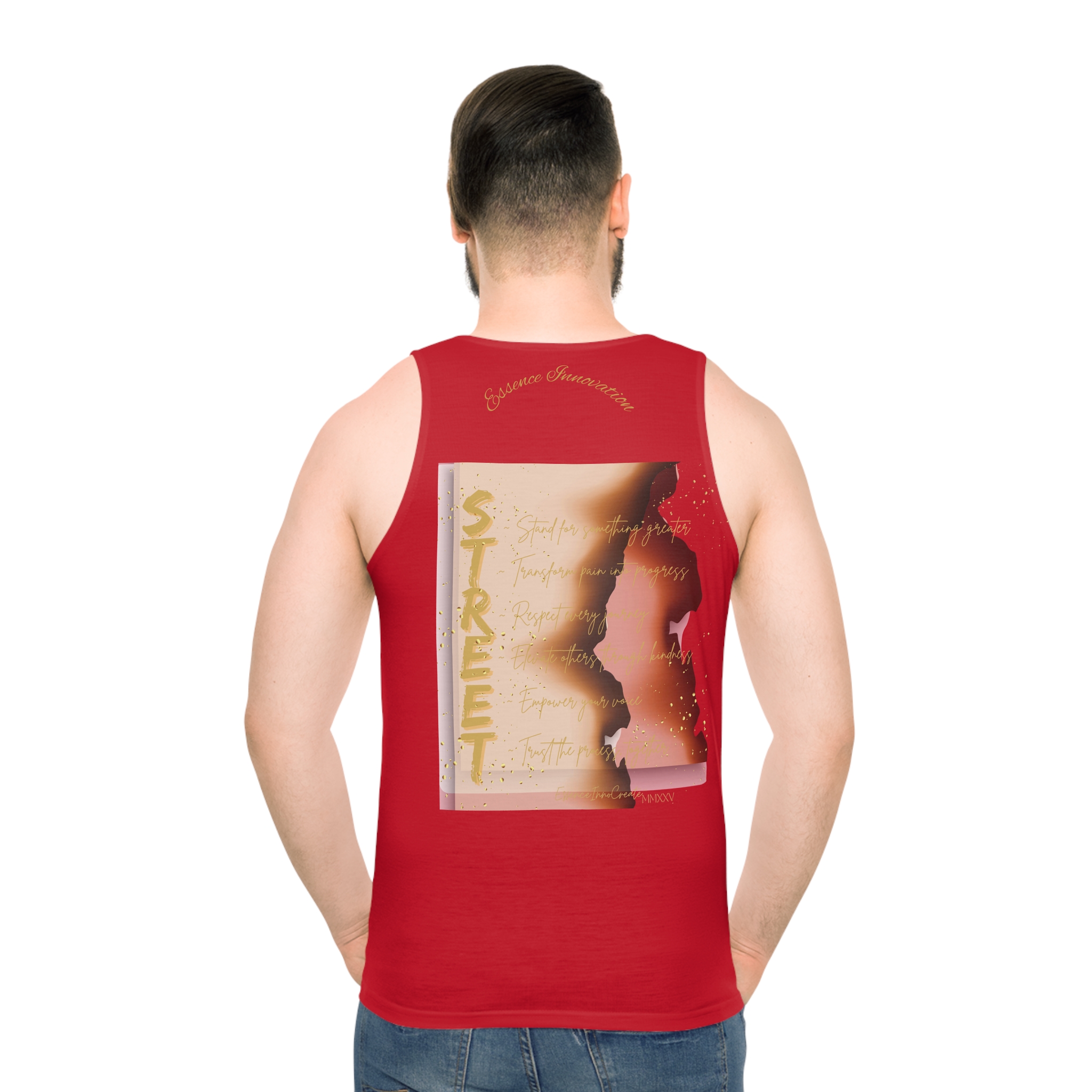 At Essence Innovation, apparel goes beyond fabric—it becomes voice, story, and reminder. The STREET Gold Graffiti X Dark Red Tank represents resilience and legacy, crafted sustainably in the USA with globally sourced parts. Each wear honors both the values at its core and the communities who continue to carry them forward.