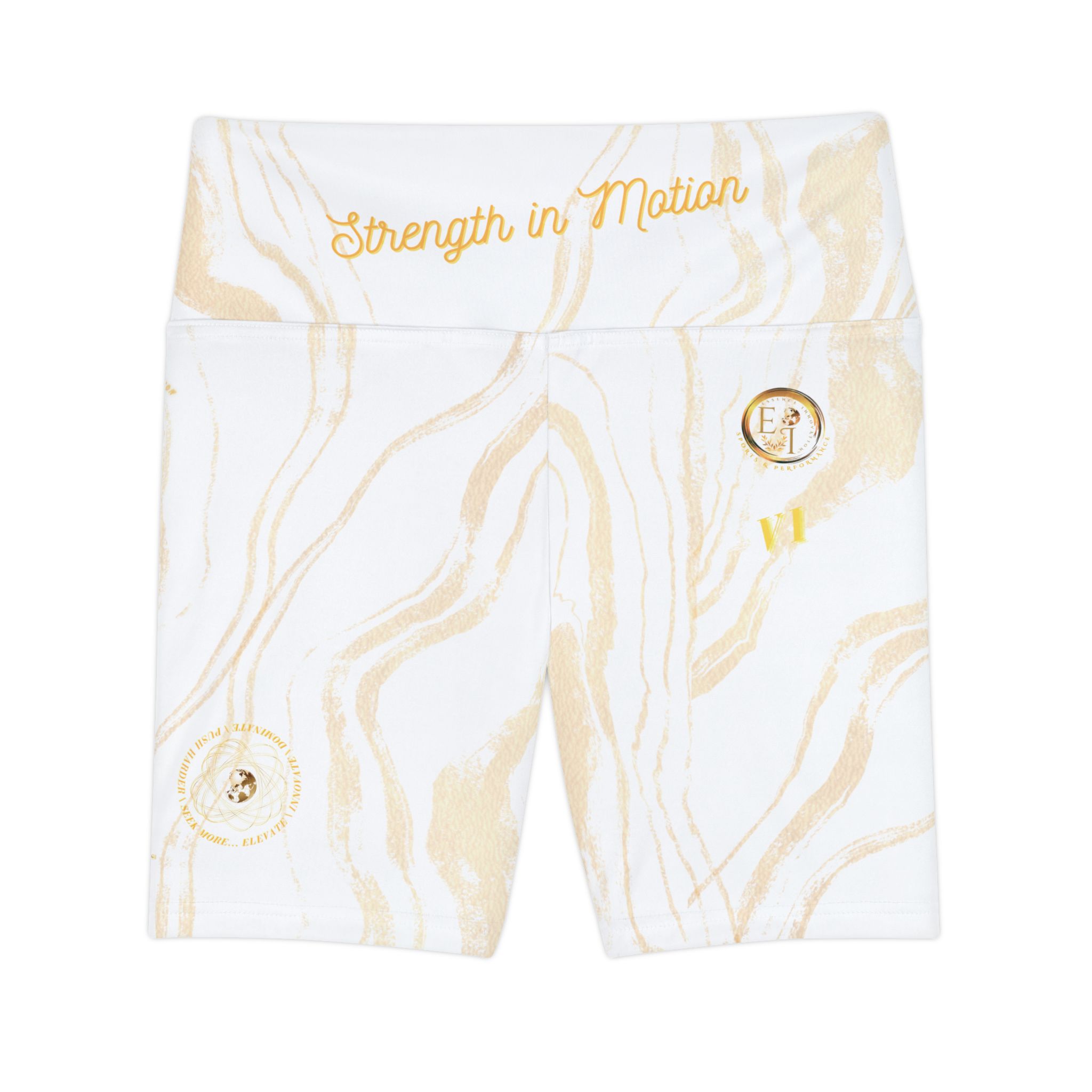 The Stripes In Motion VI | Ladies Workout Shorts | White reimagine performance wear with a sport-inspired twist. Featuring sleek stripes along the design, these shorts bring a dynamic aesthetic to your activewear collection. The crisp white base reflects clarity and strength, while the bold lines symbolize motion, resilience, and focus.