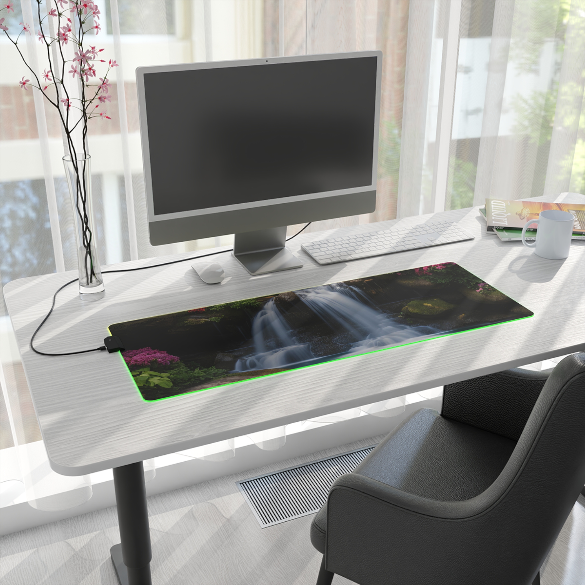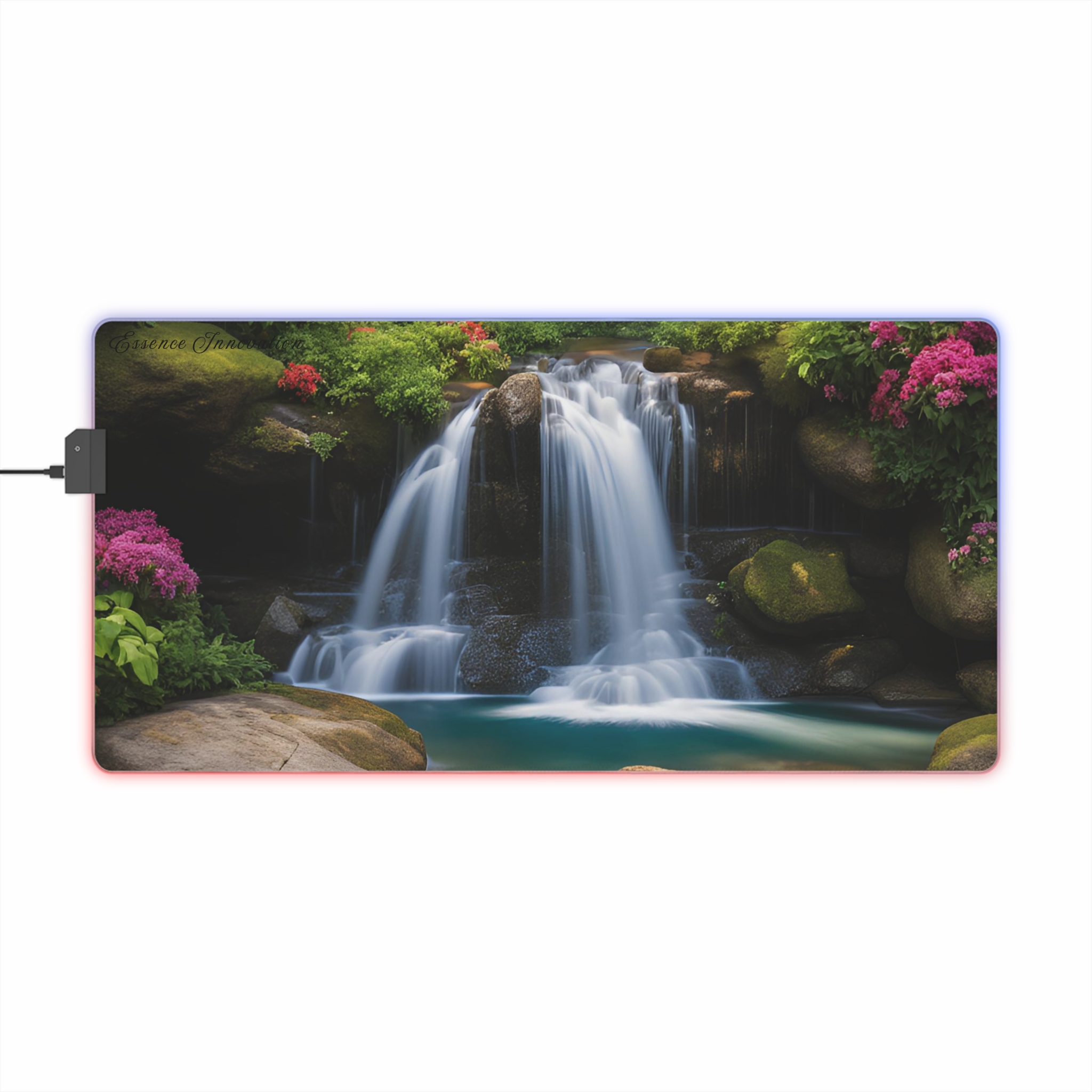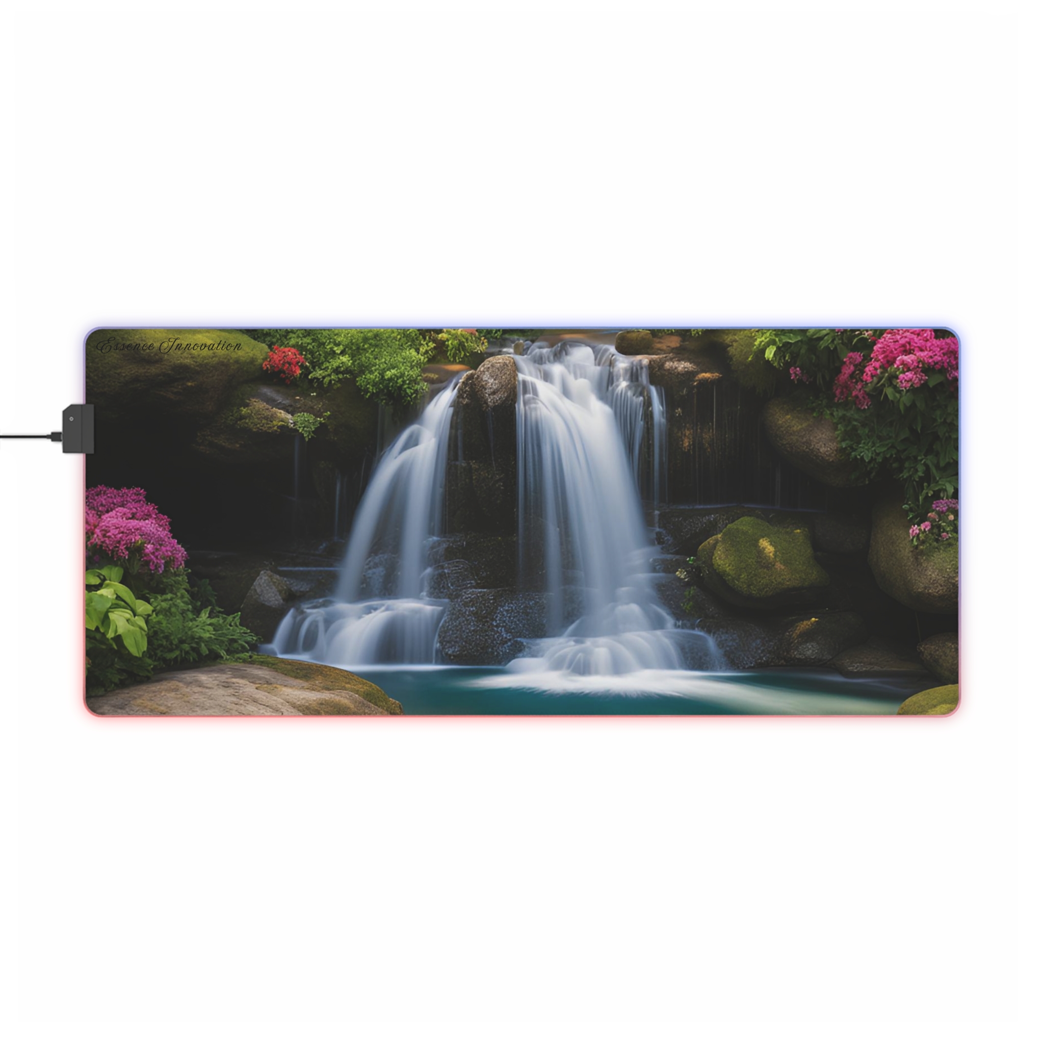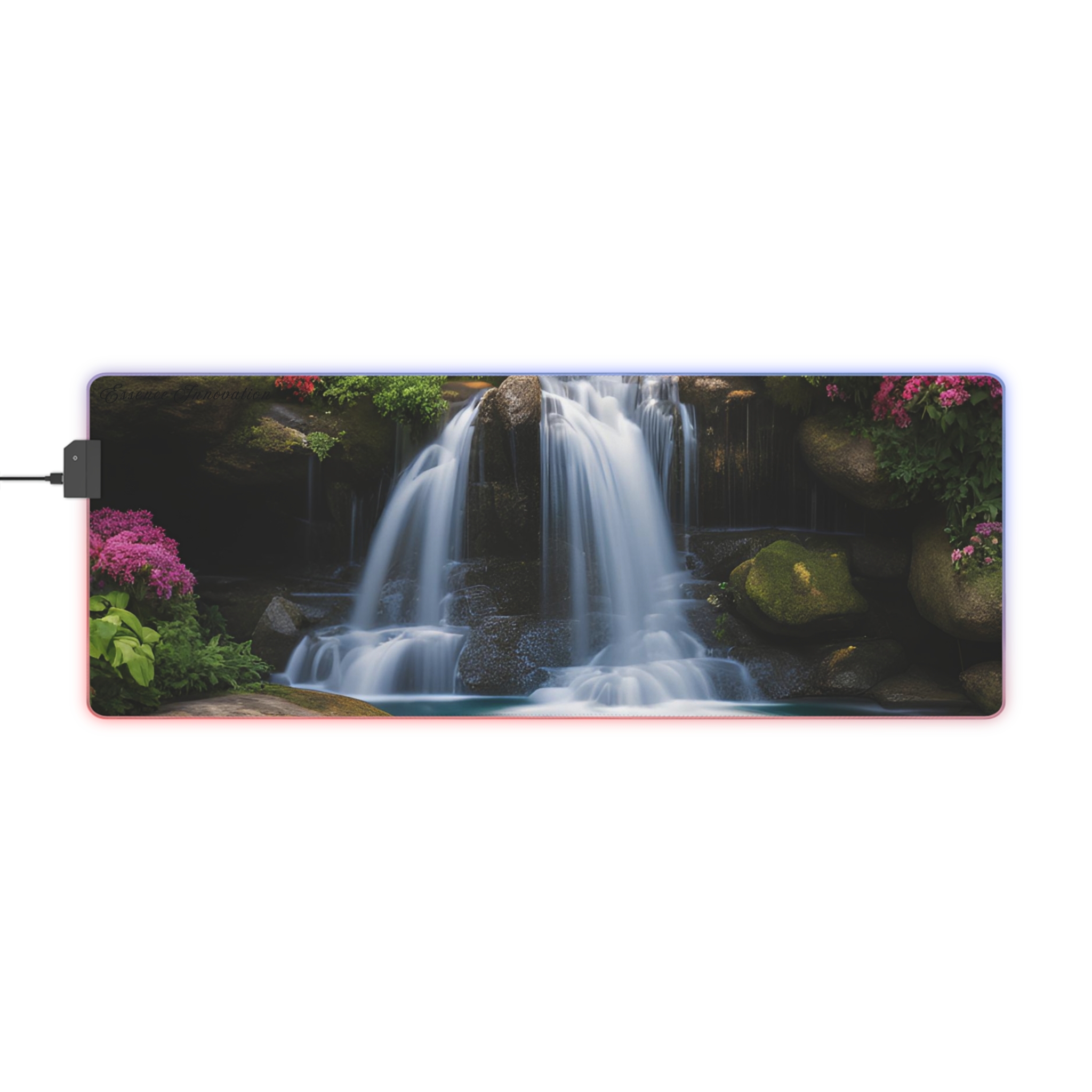 The Tranquil Falls LED gaming mouse pad features a serene waterfall design, RGB edge lighting, and a smooth precision surface in 4 sizes.