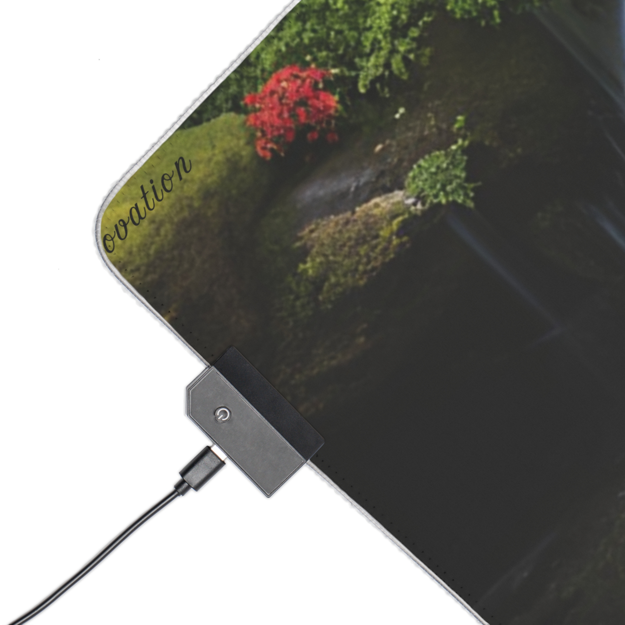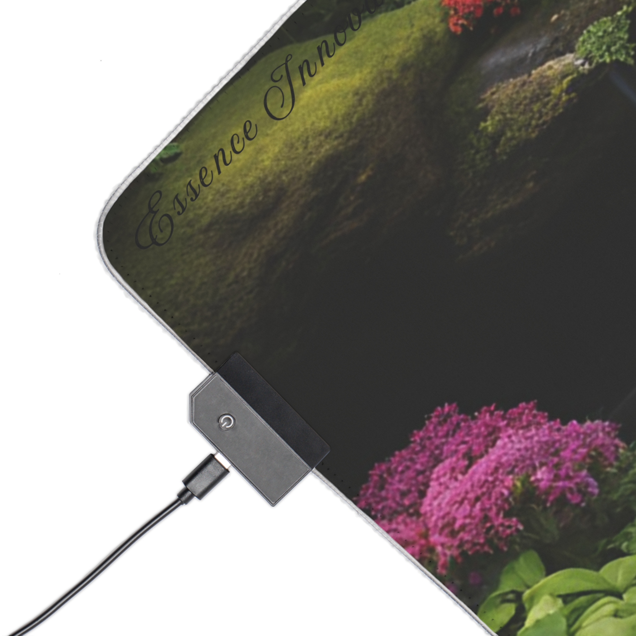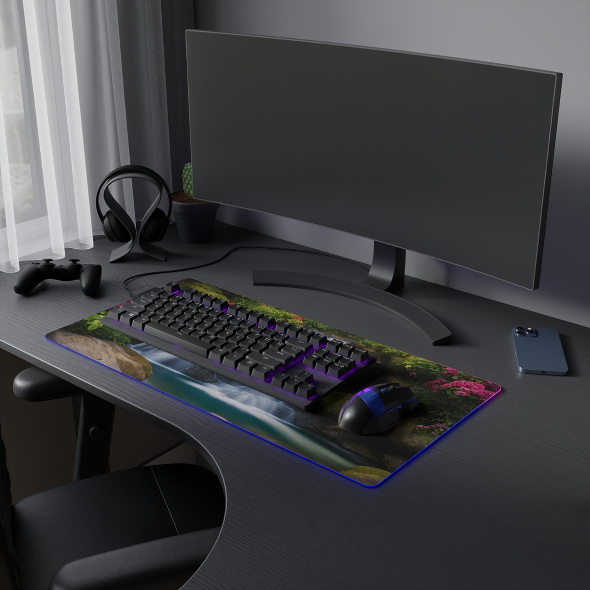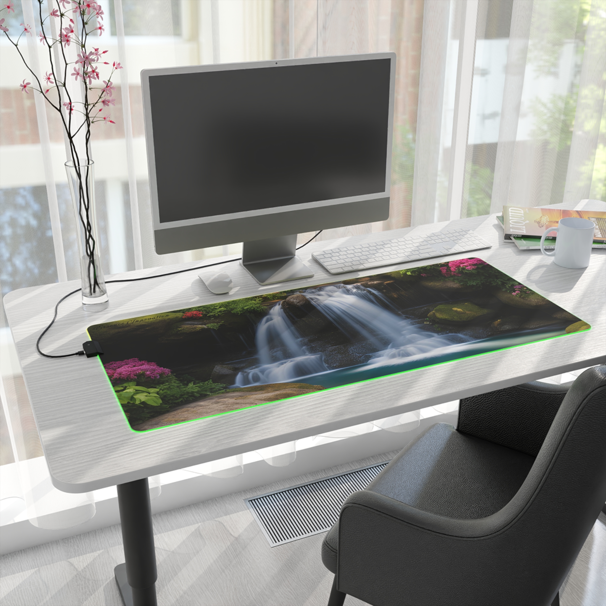 The Tranquil Falls LED gaming mouse pad features a serene waterfall design, RGB edge lighting, and a smooth precision surface in 4 sizes.