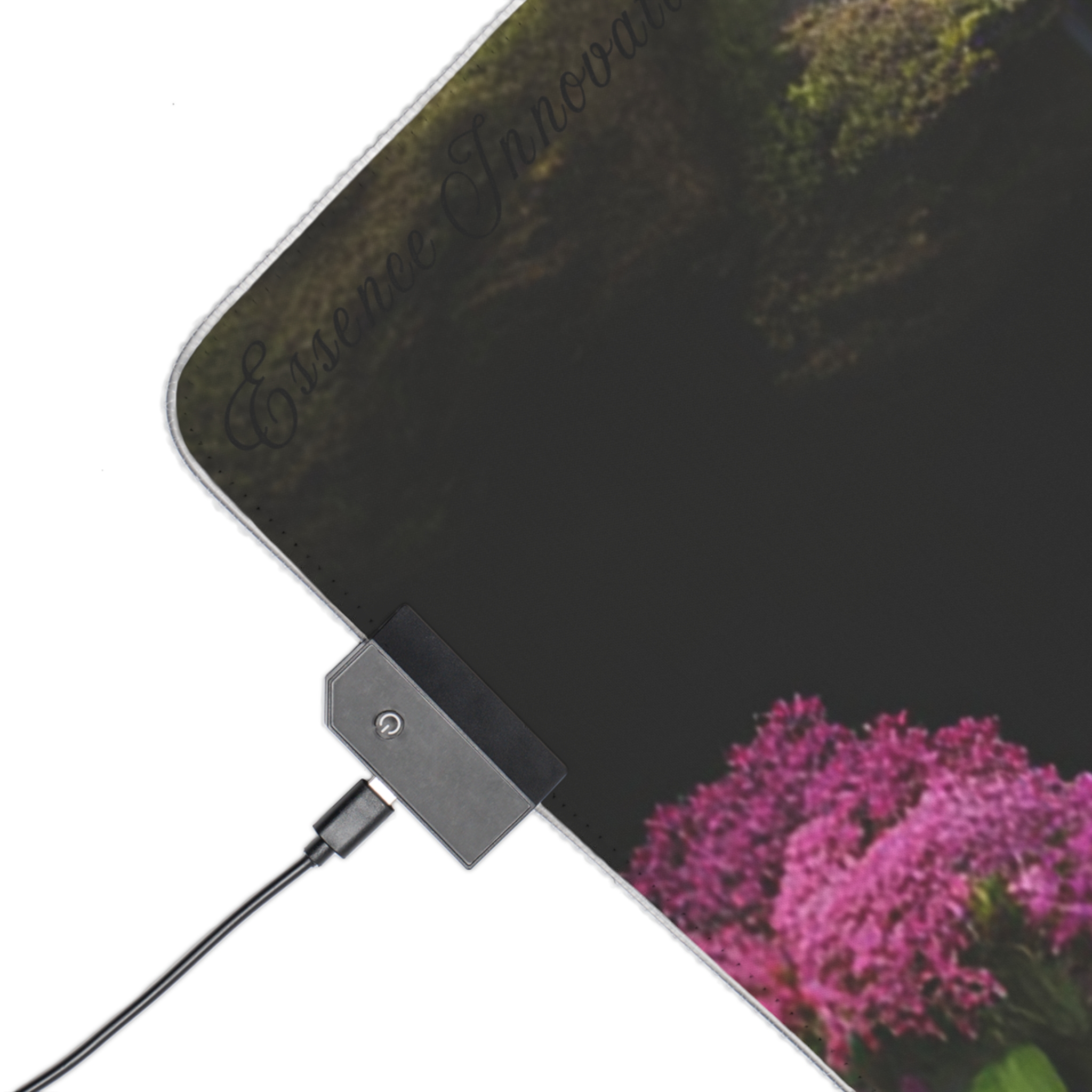 The Tranquil Falls LED Gaming Mouse Pad transforms your desk into a calm oasis of focus. Featuring a breathtaking waterfall surrounded by lush greenery, this pad balances artistry with performance. With its RGB edge lighting, precision cloth surface, and non-slip backing, it creates both visual tranquility and reliable control.