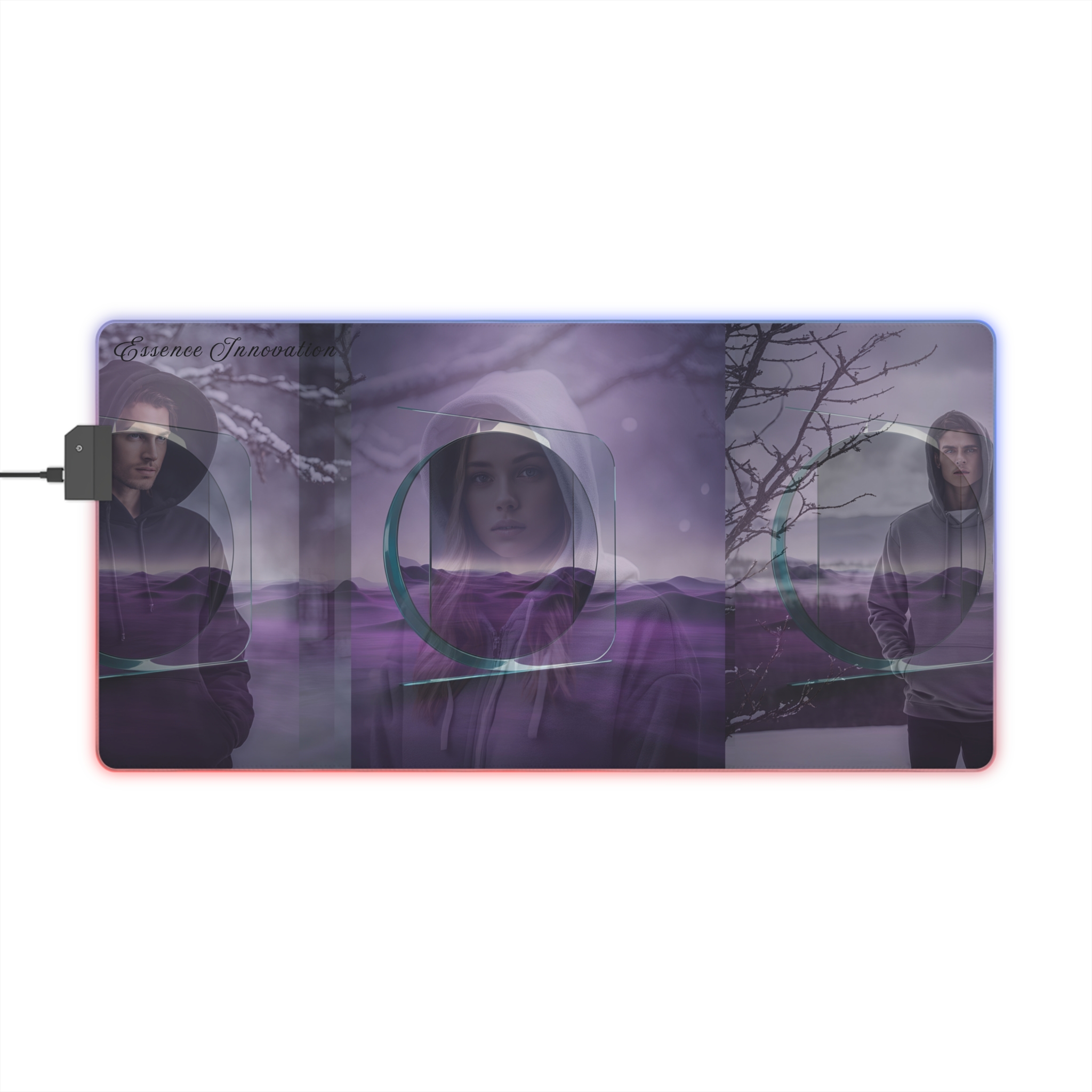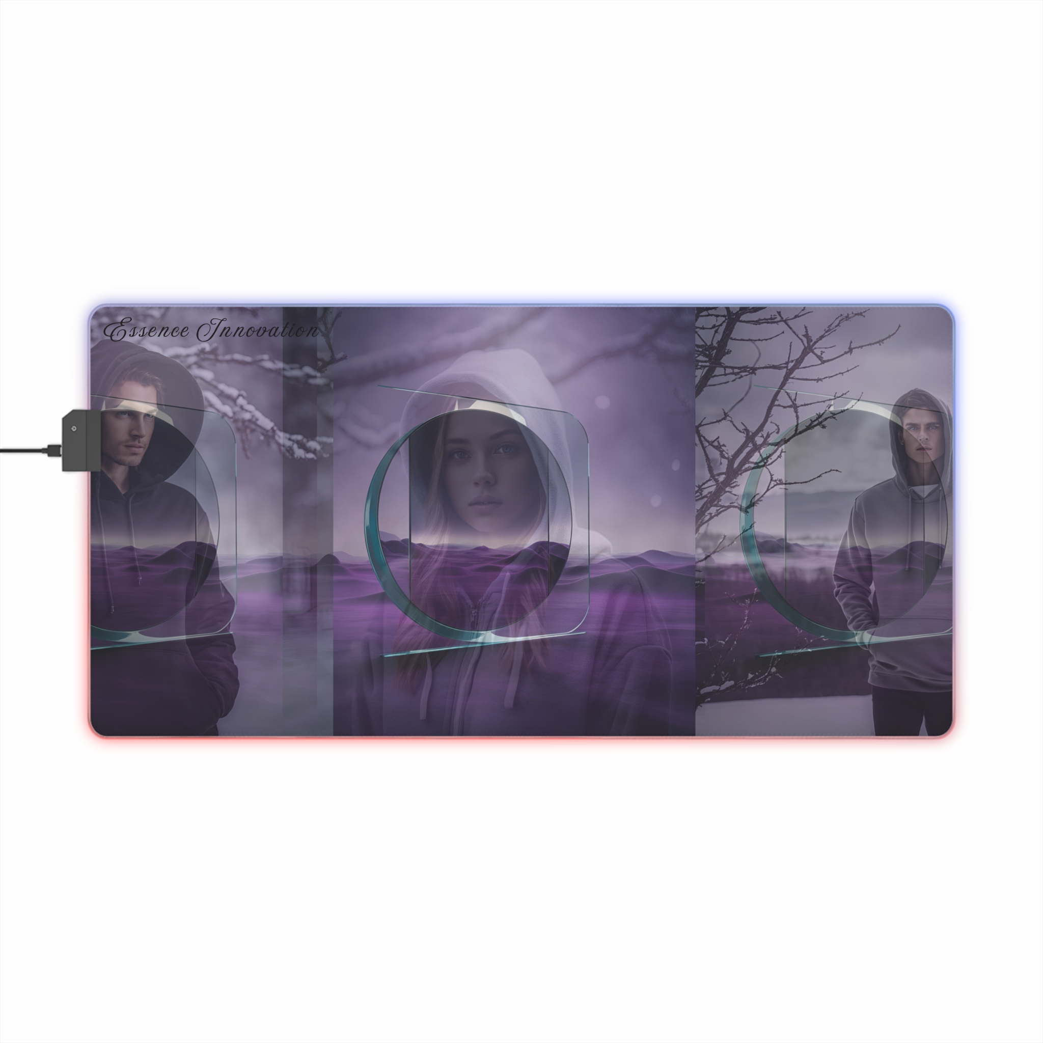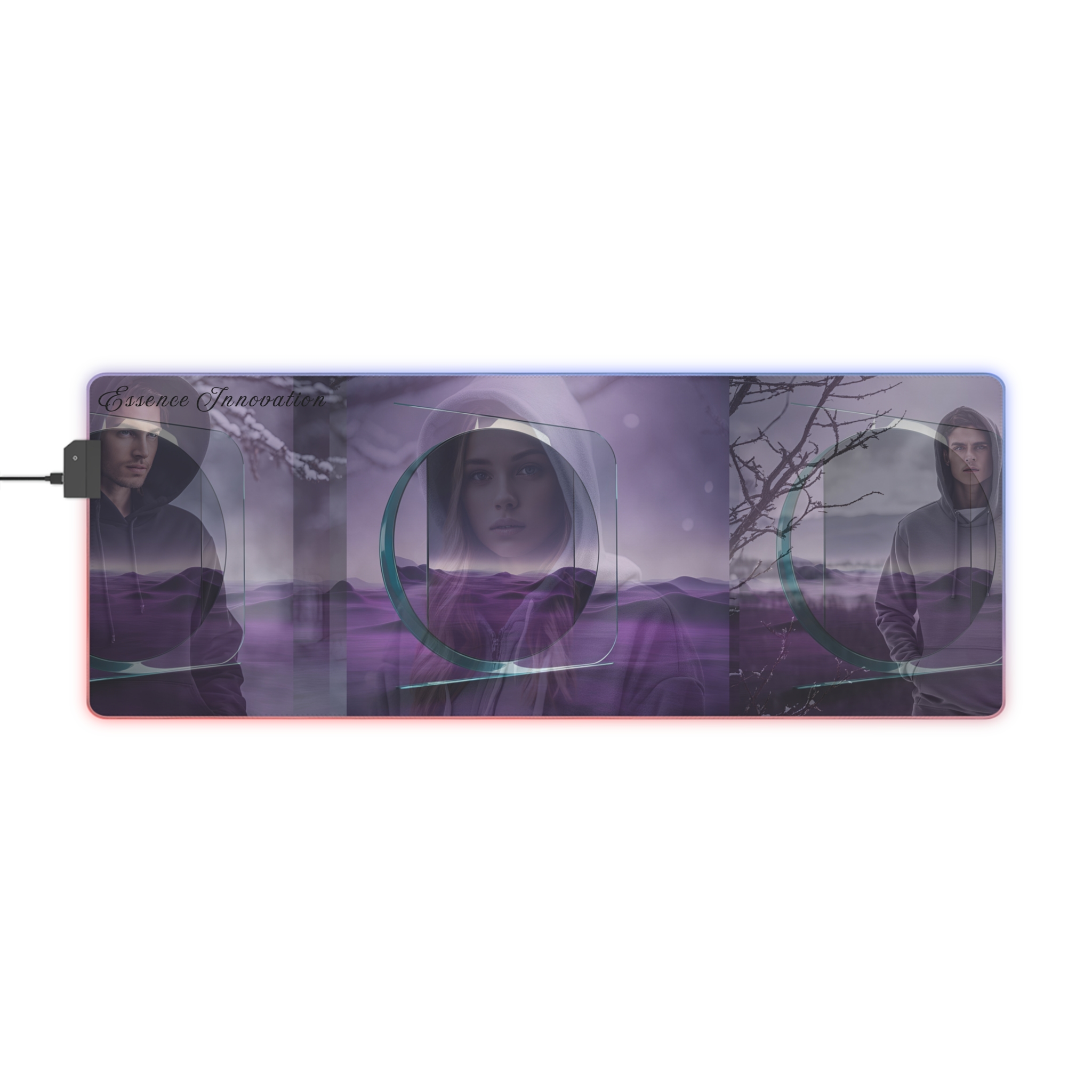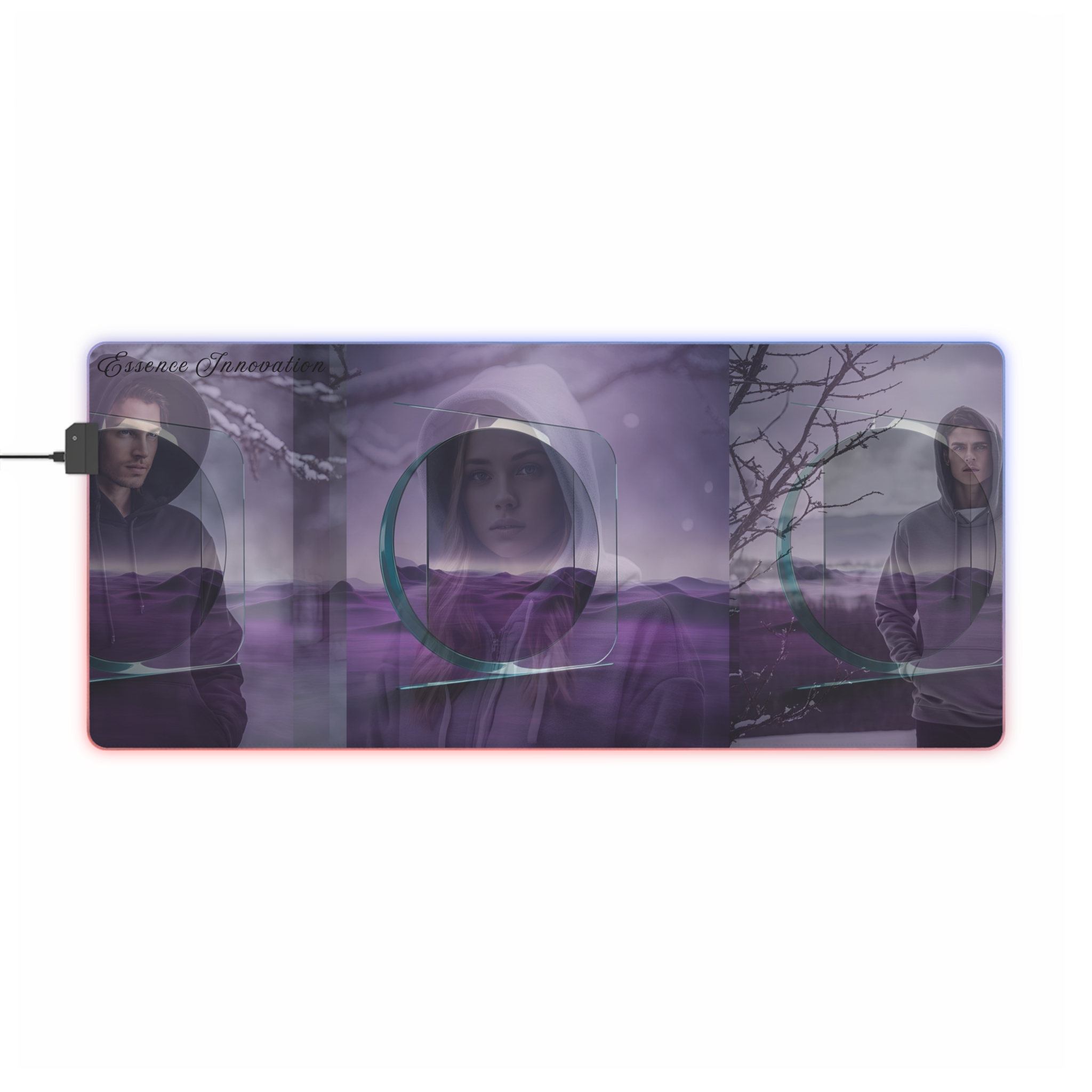 The Winter Veil LED Gaming Mouse Pad captures the quiet intensity of a snowy landscape wrapped in mystery. Its layered artwork with deep purples, icy textures, and hooded figures sets the tone for focus and creativity. With RGB edge lighting, a smooth cloth surface, and non-slip rubber backing, it combines atmosphere with performance.