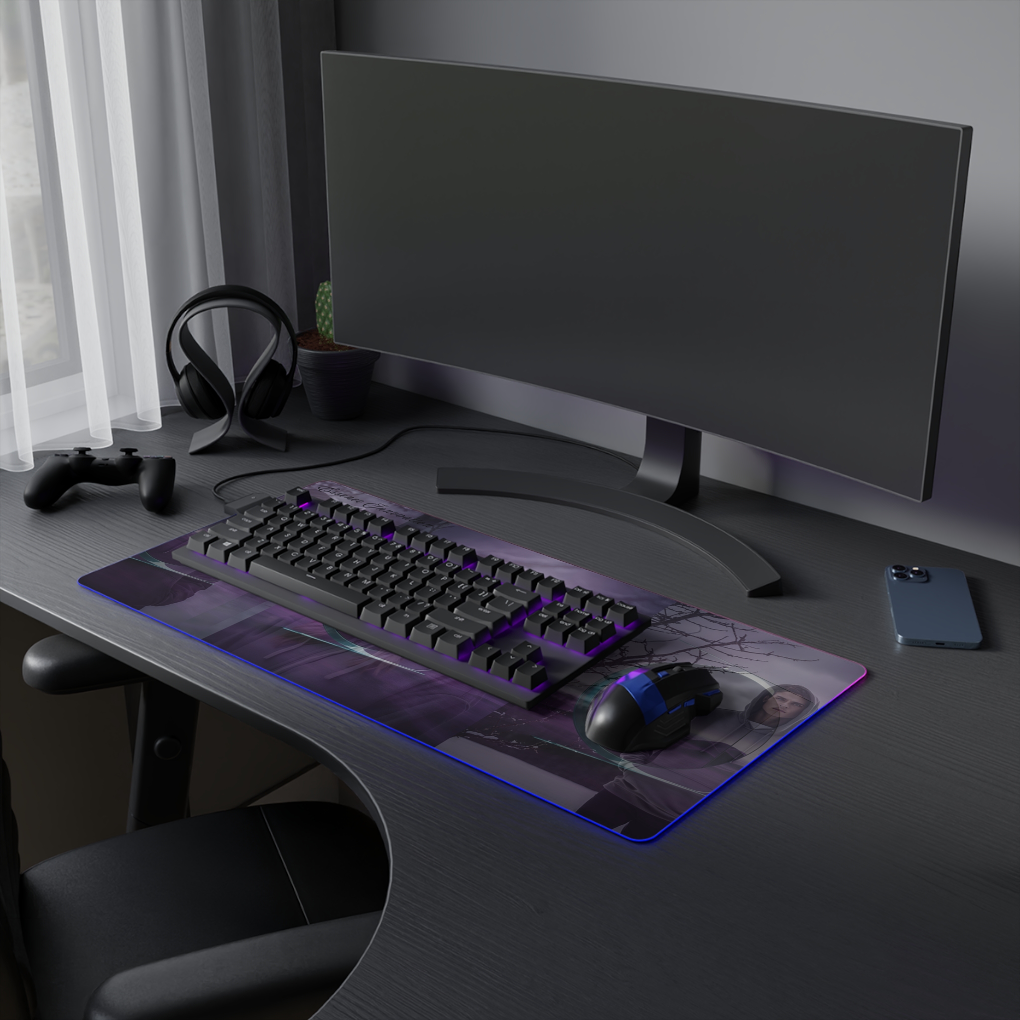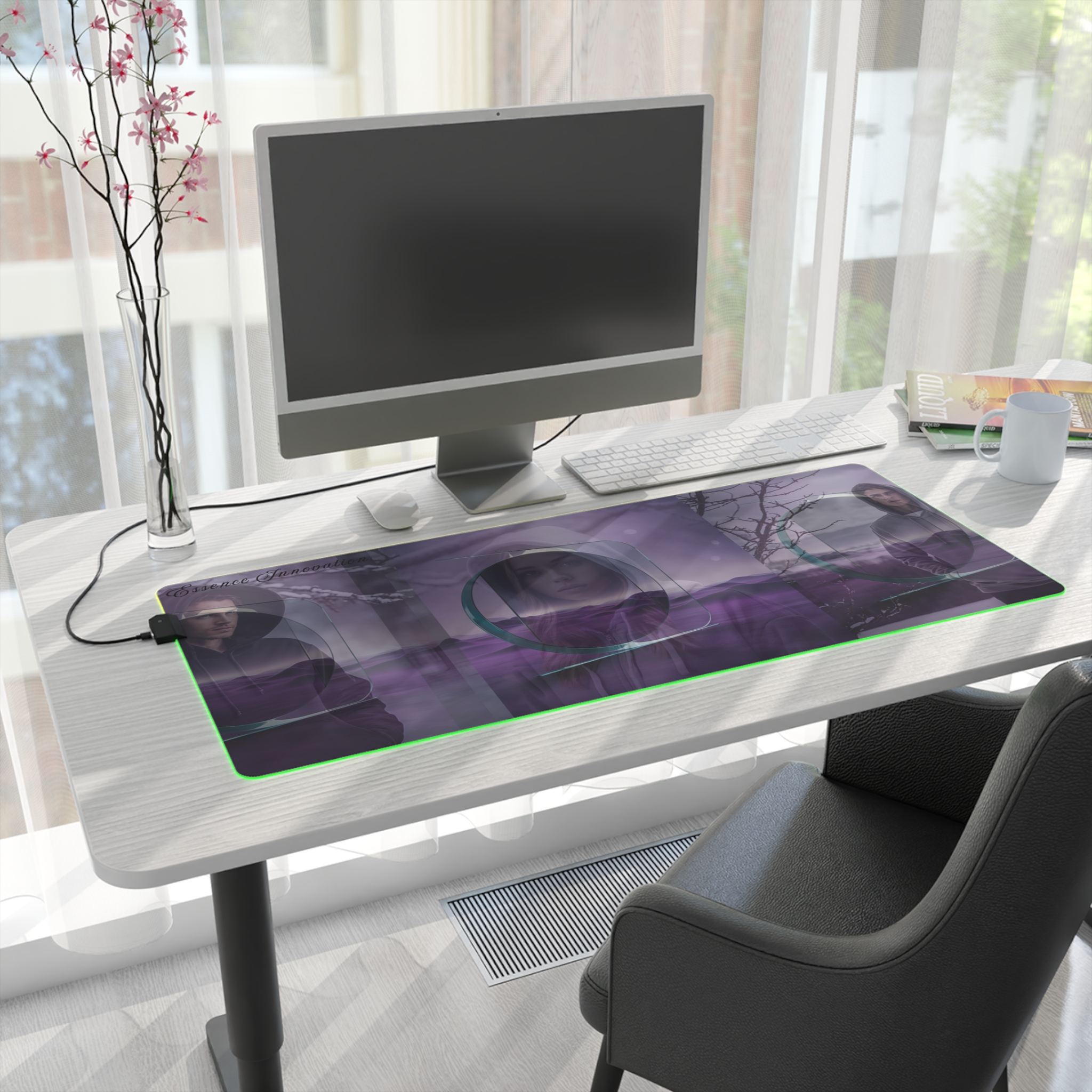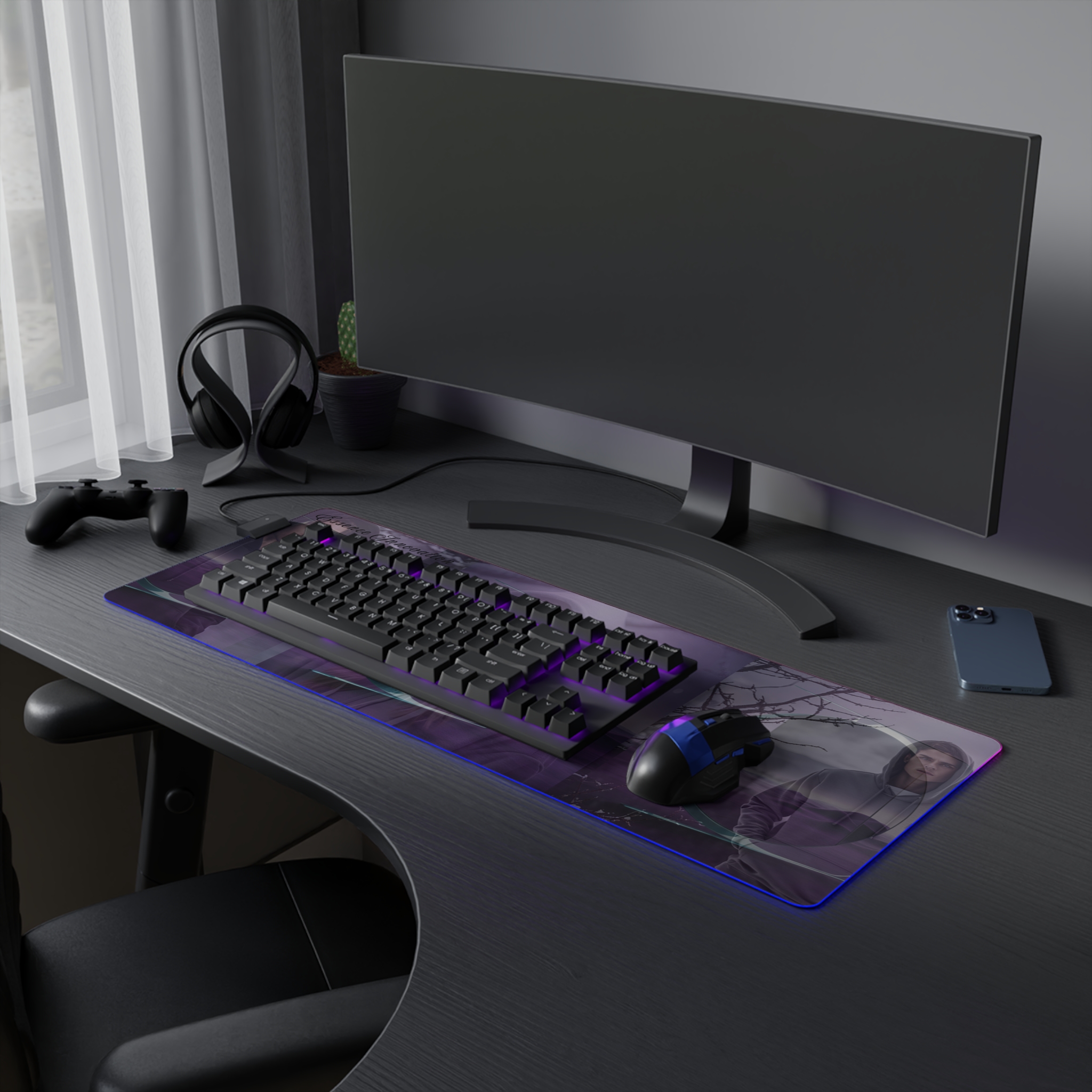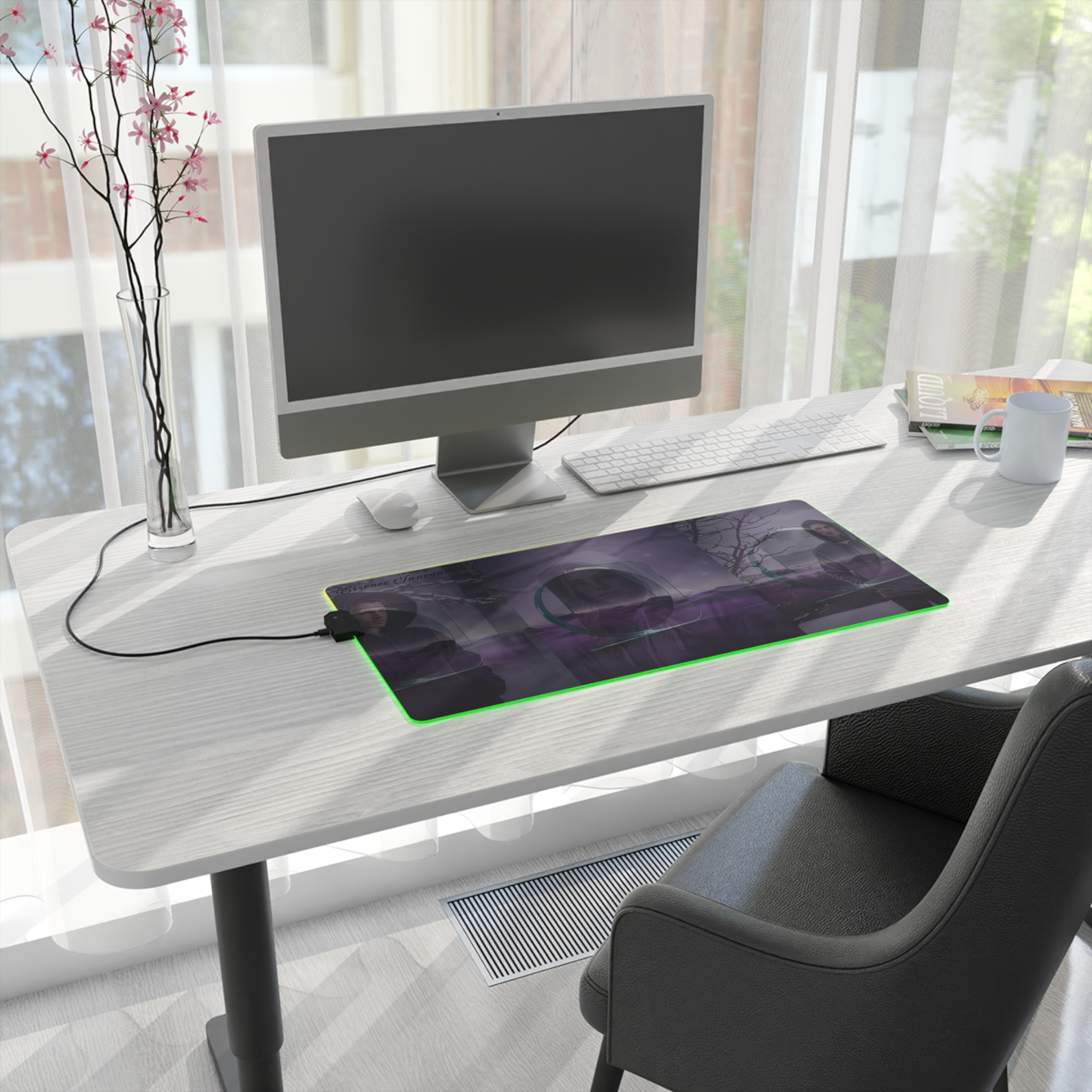The Winter Veil LED Gaming Mouse Pad captures the quiet intensity of a snowy landscape wrapped in mystery. Its layered artwork with deep purples, icy textures, and hooded figures sets the tone for focus and creativity. With RGB edge lighting, a smooth cloth surface, and non-slip rubber backing, it combines atmosphere with performance.