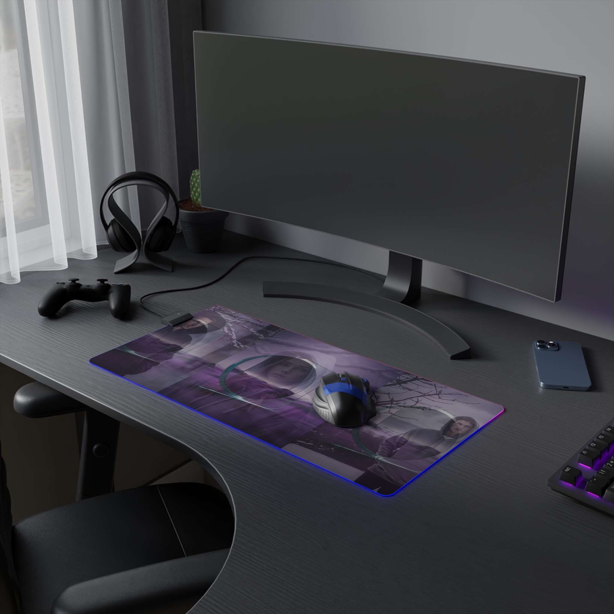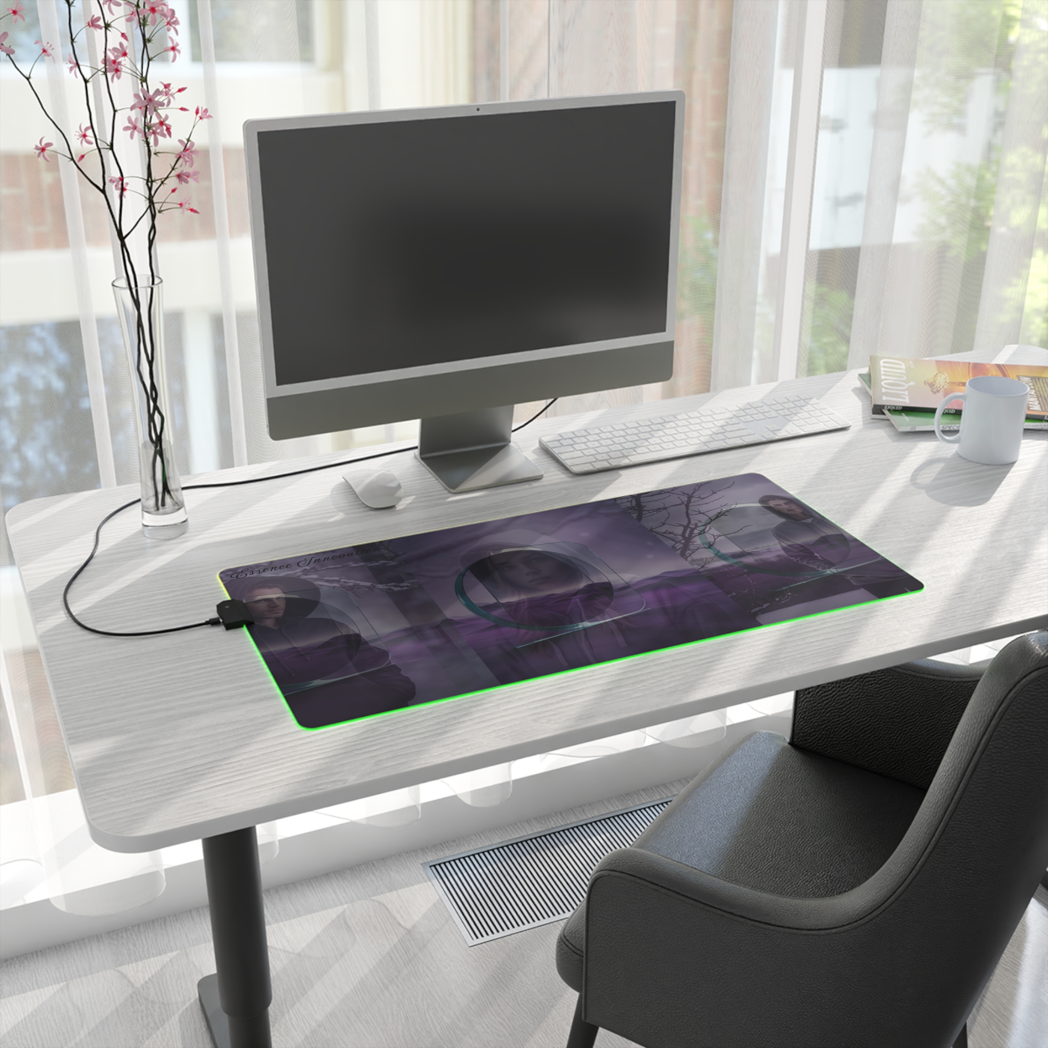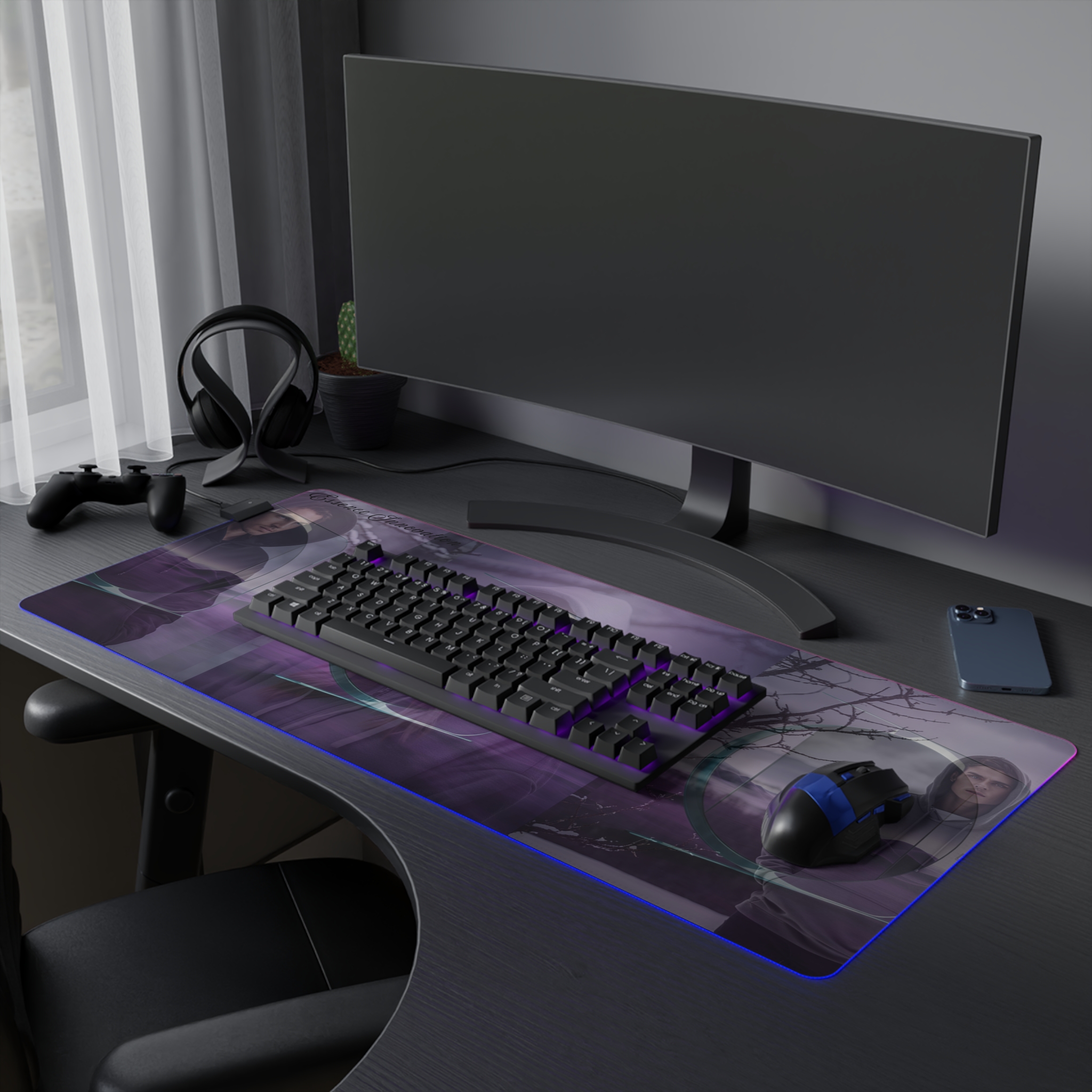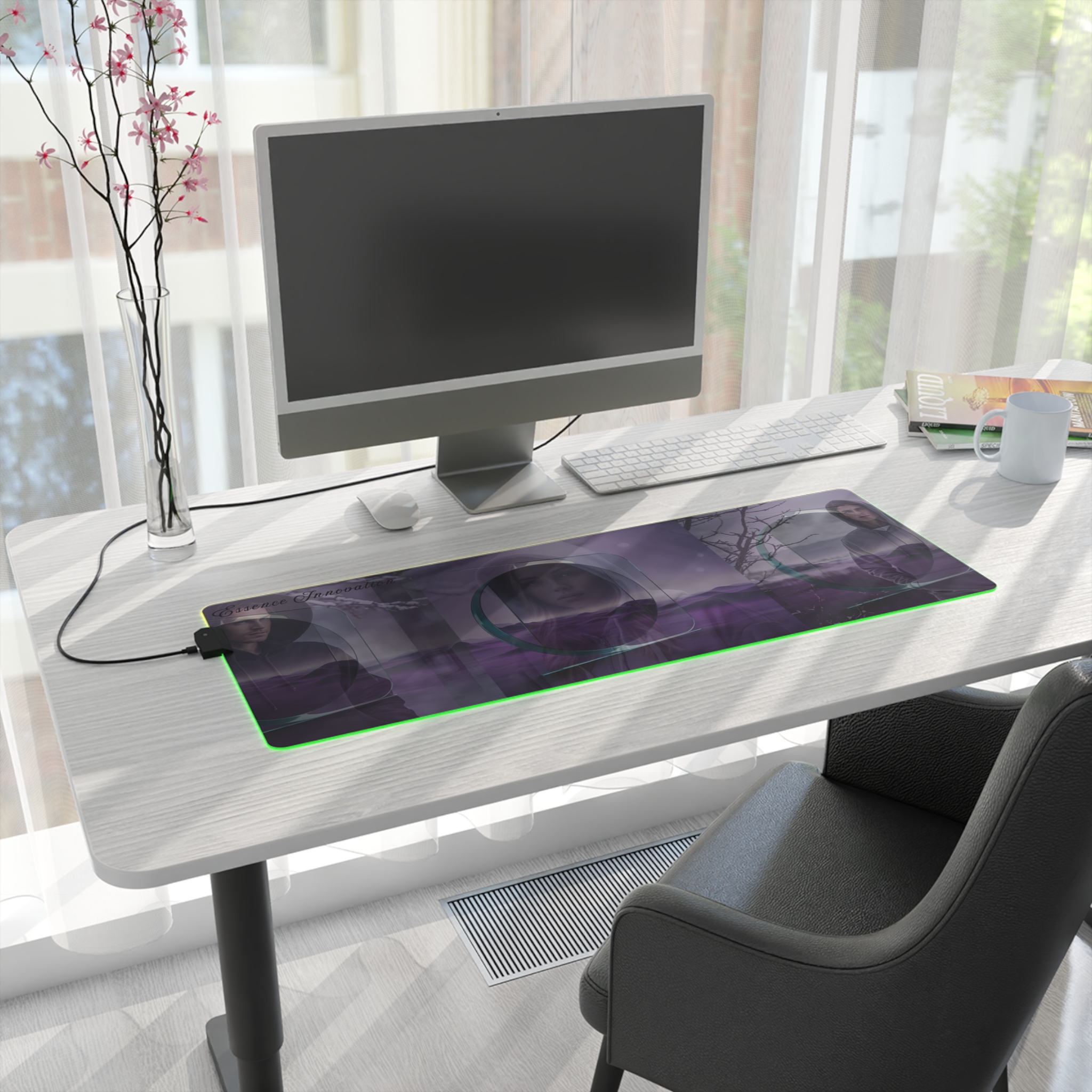 The Winter Veil LED Gaming Mouse Pad captures the quiet intensity of a snowy landscape wrapped in mystery. Its layered artwork with deep purples, icy textures, and hooded figures sets the tone for focus and creativity. With RGB edge lighting, a smooth cloth surface, and non-slip rubber backing, it combines atmosphere with performance.